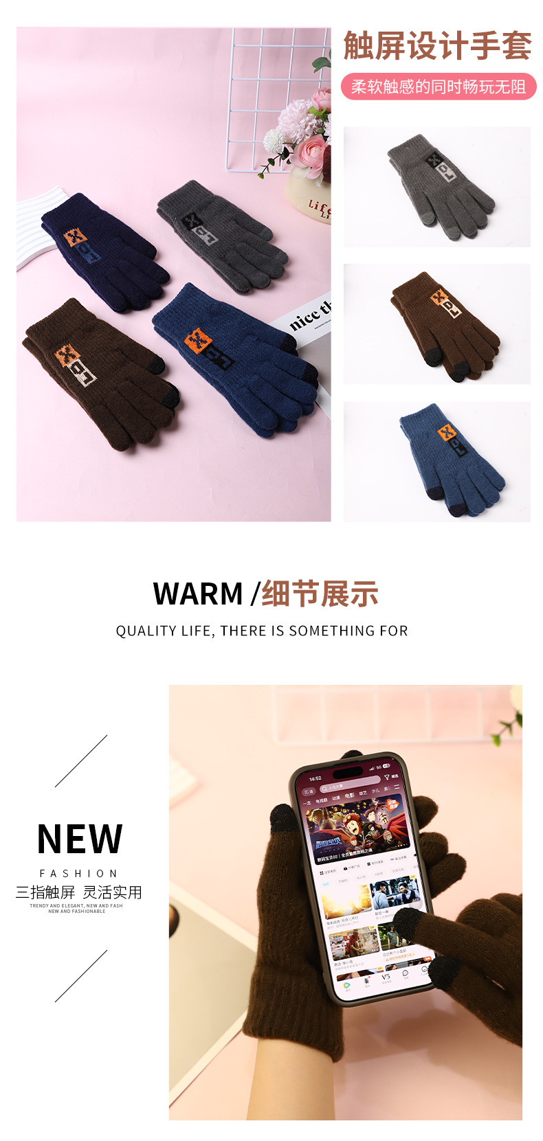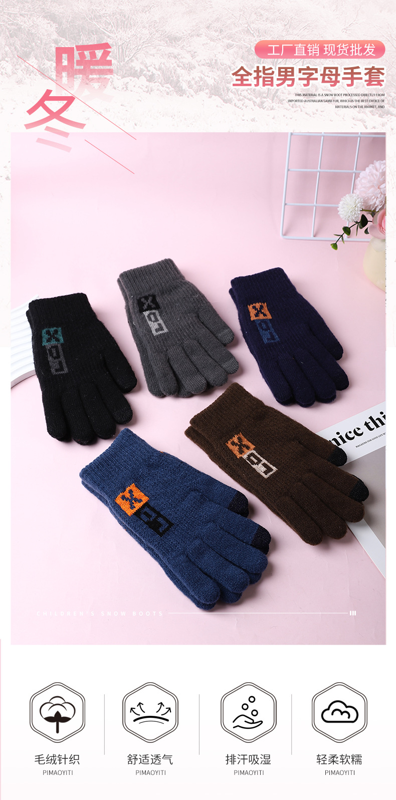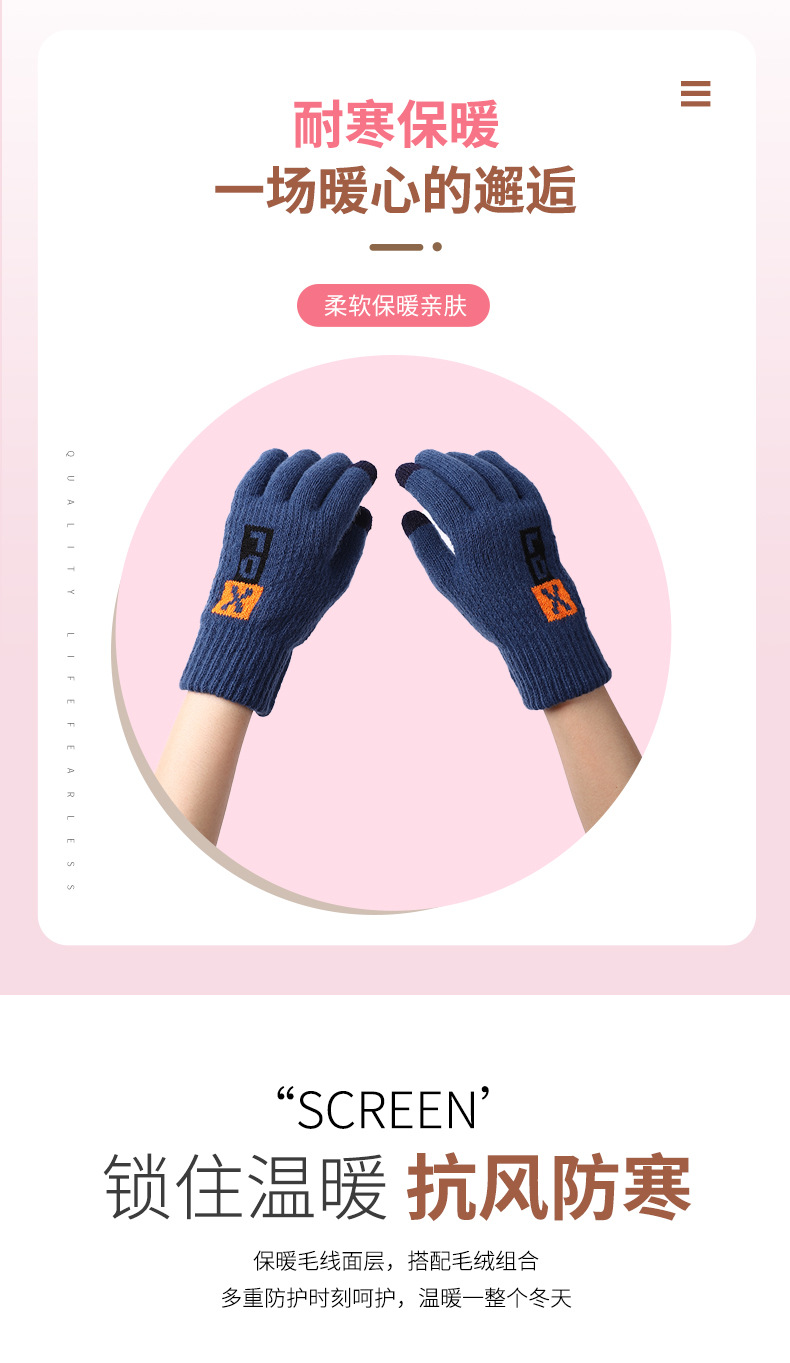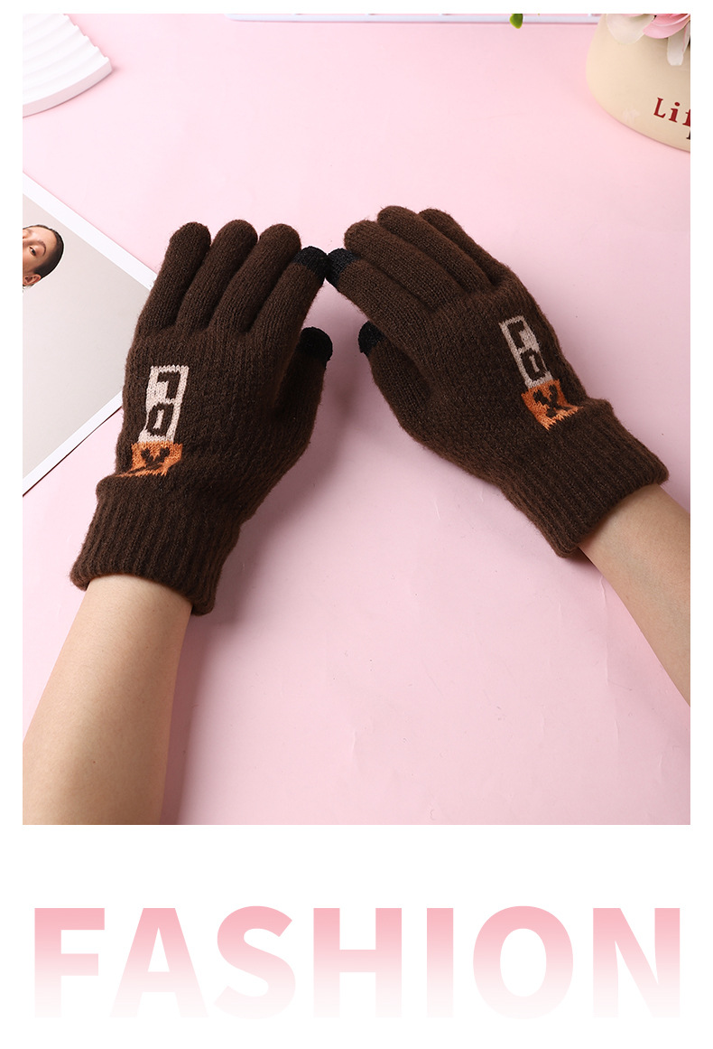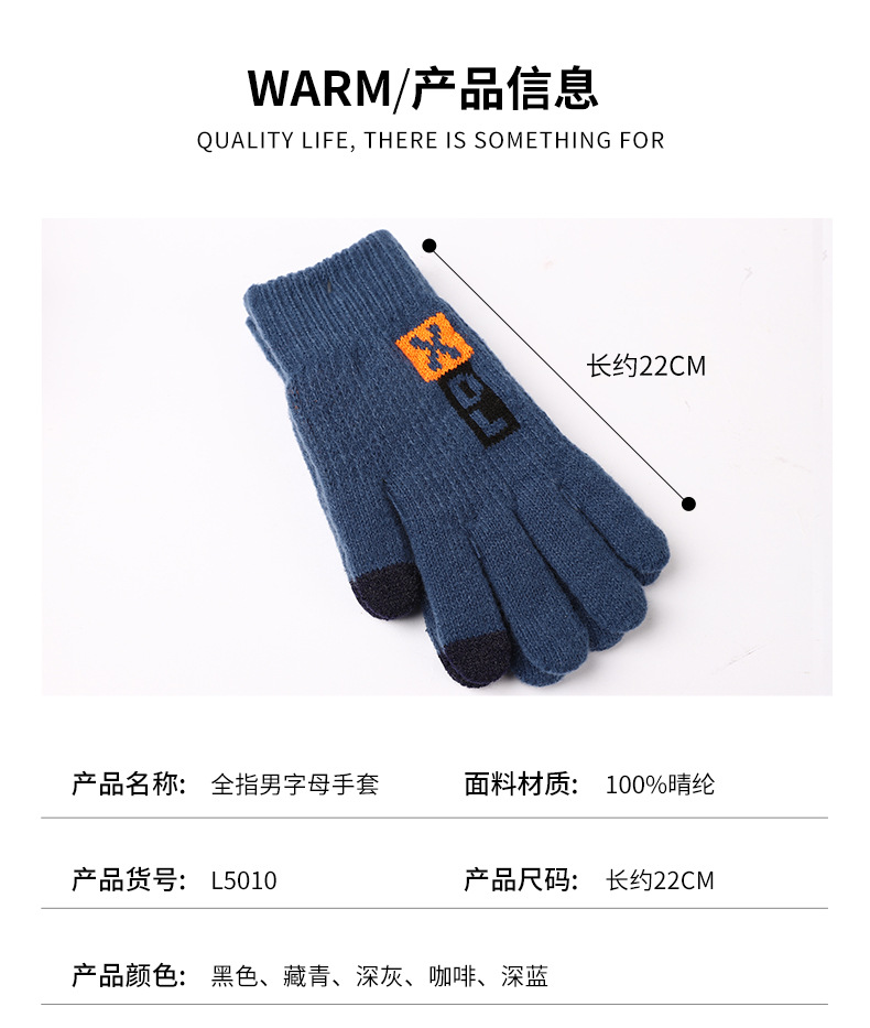풀 핑거 남성 편지 장갑 핑거 씰 스타일 두꺼운 장갑 공장 직접 공급 따뜻한 감기 방지 야외 여행 니트 스타일스토어 가기