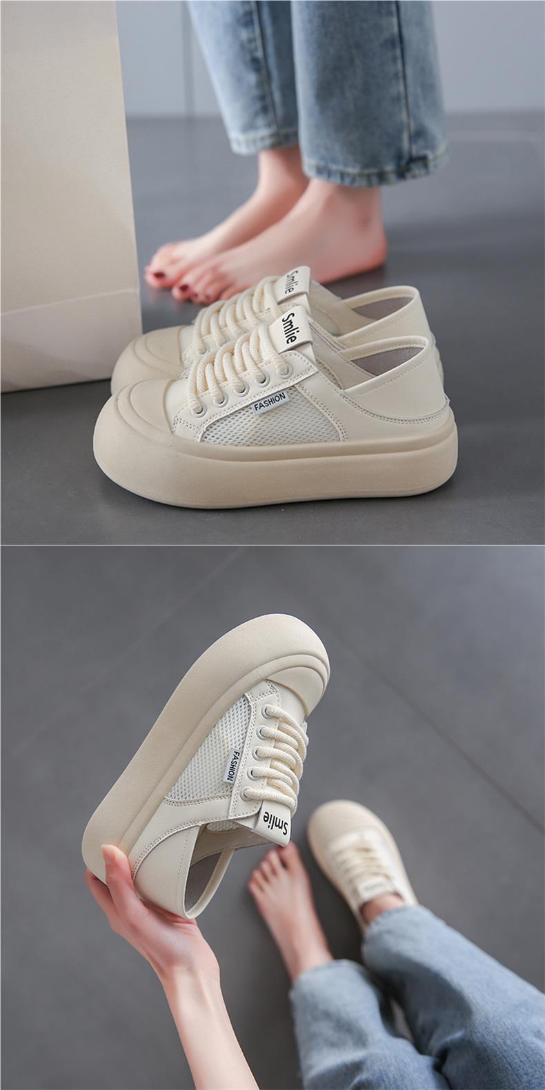 2025년 여름 신상 여성용 빅 헤드 빵 신발, 여성용 투웨어 하프 슬립 두꺼운 밑창 흰색 신발, 여성용 메쉬 통기성 운동화스토어 가기