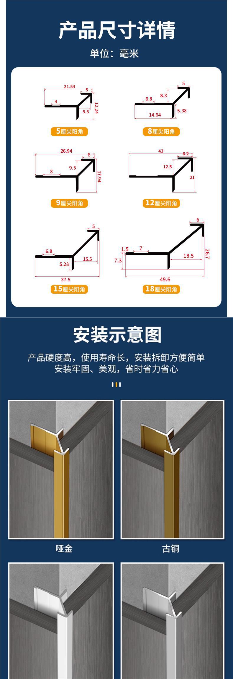 알루미늄 합금 뾰족한 코너 폐쇄 스트립 목재 베니어 통합 벽판 금속 테두리 스트립 Chamfer 테두리 매우 좁은 코너스토어 가기
