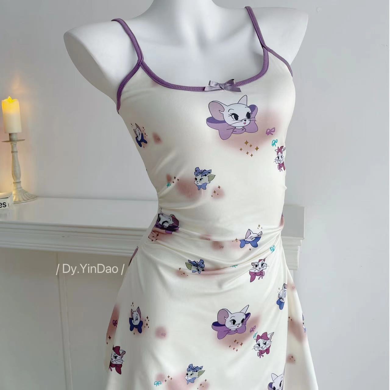 인쇄 된 슬링 나이트 드레스 가슴 패드 여성의 여름 민소매 타이트 스커트 순수한 욕망 스파이스 소녀 섹시한 타이트 허리 엉덩이 스커트