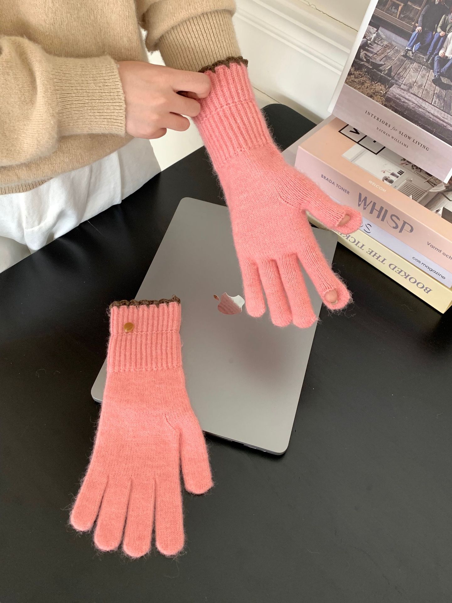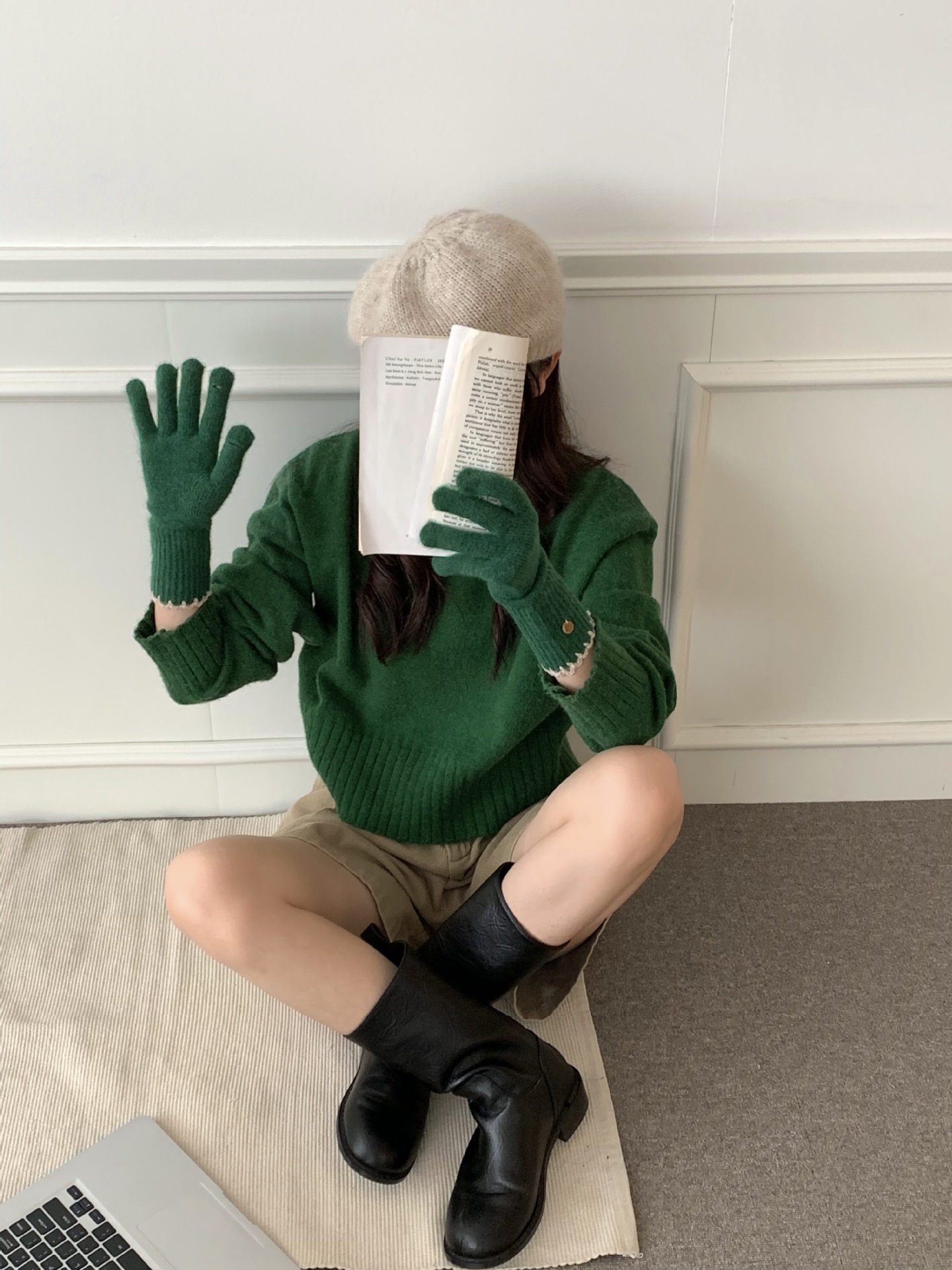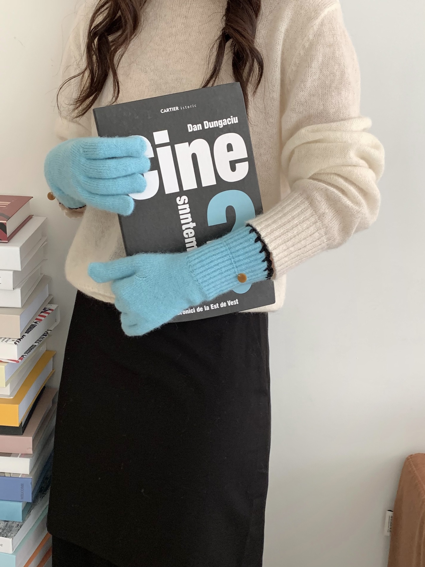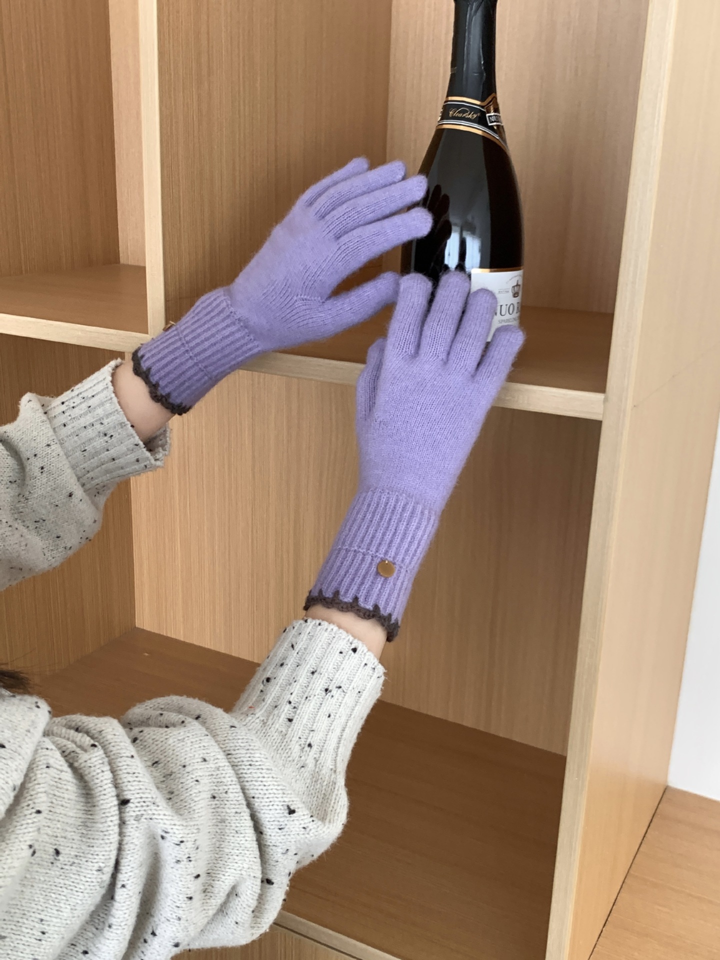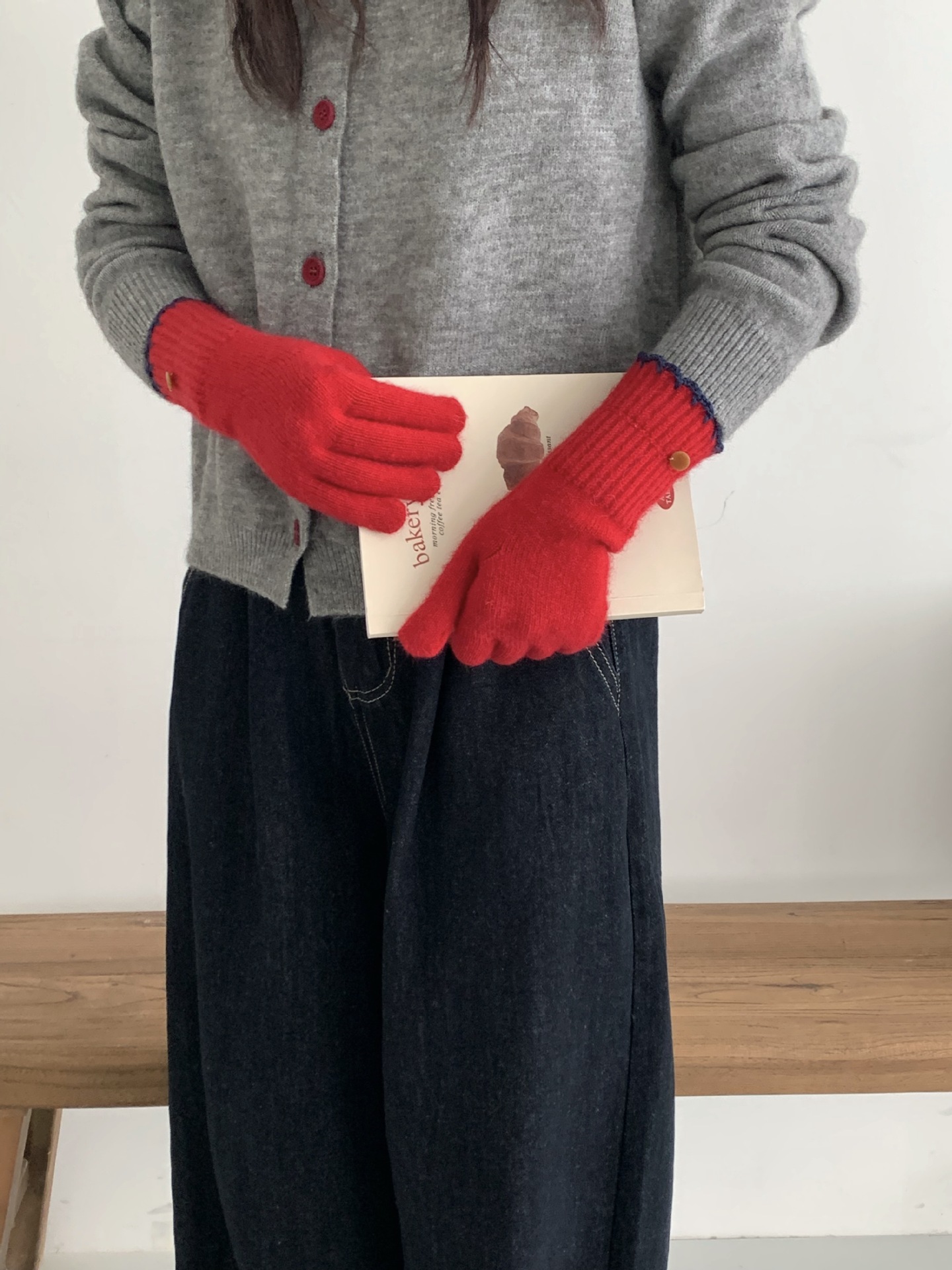 양모 단색 니트 장갑 한국 버전 여성의 2024 년 새로운 가을과 겨울 라이딩 손가락 누출 터치 스크린이 두꺼워졌습니다.