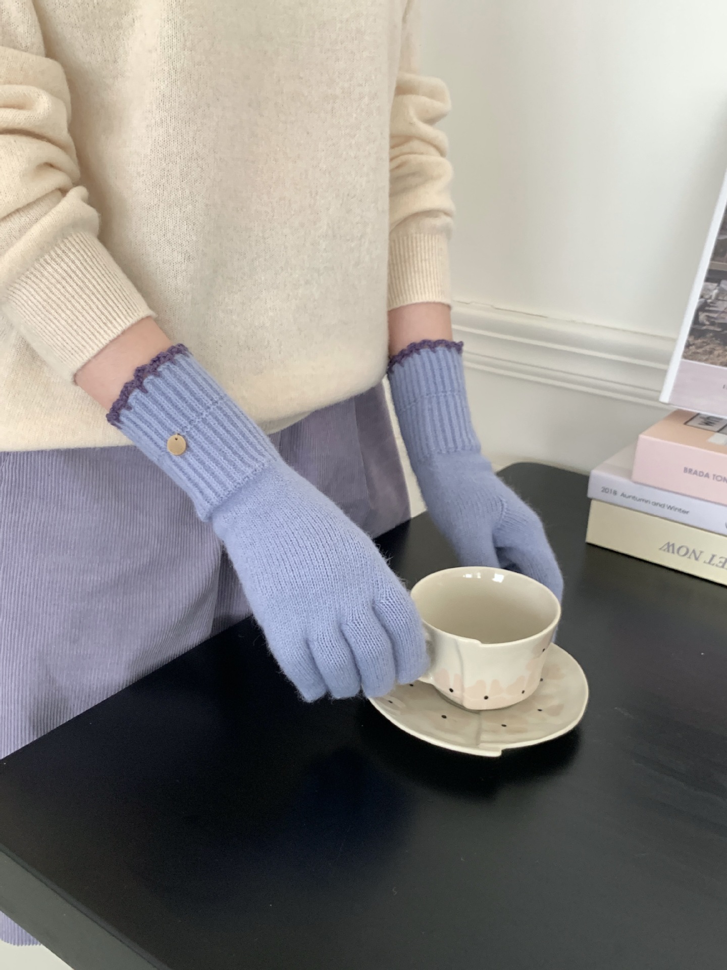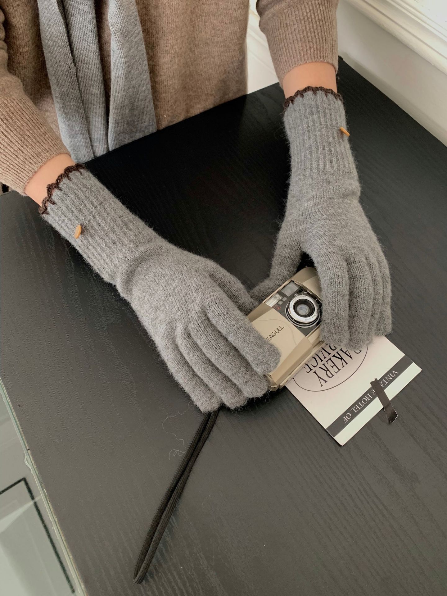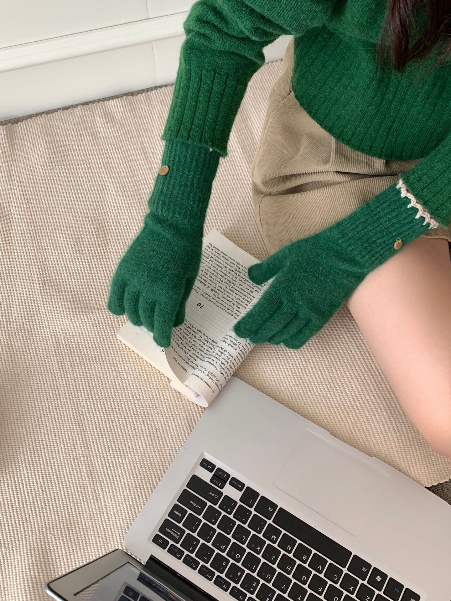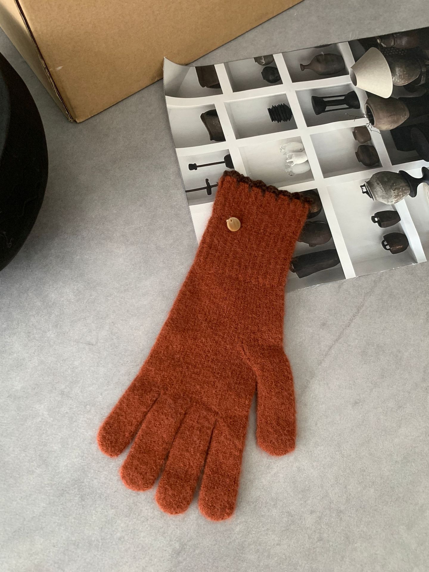 양모 단색 니트 장갑 한국 버전 여성의 2024 년 새로운 가을과 겨울 라이딩 손가락 누출 터치 스크린이 두꺼워졌습니다.