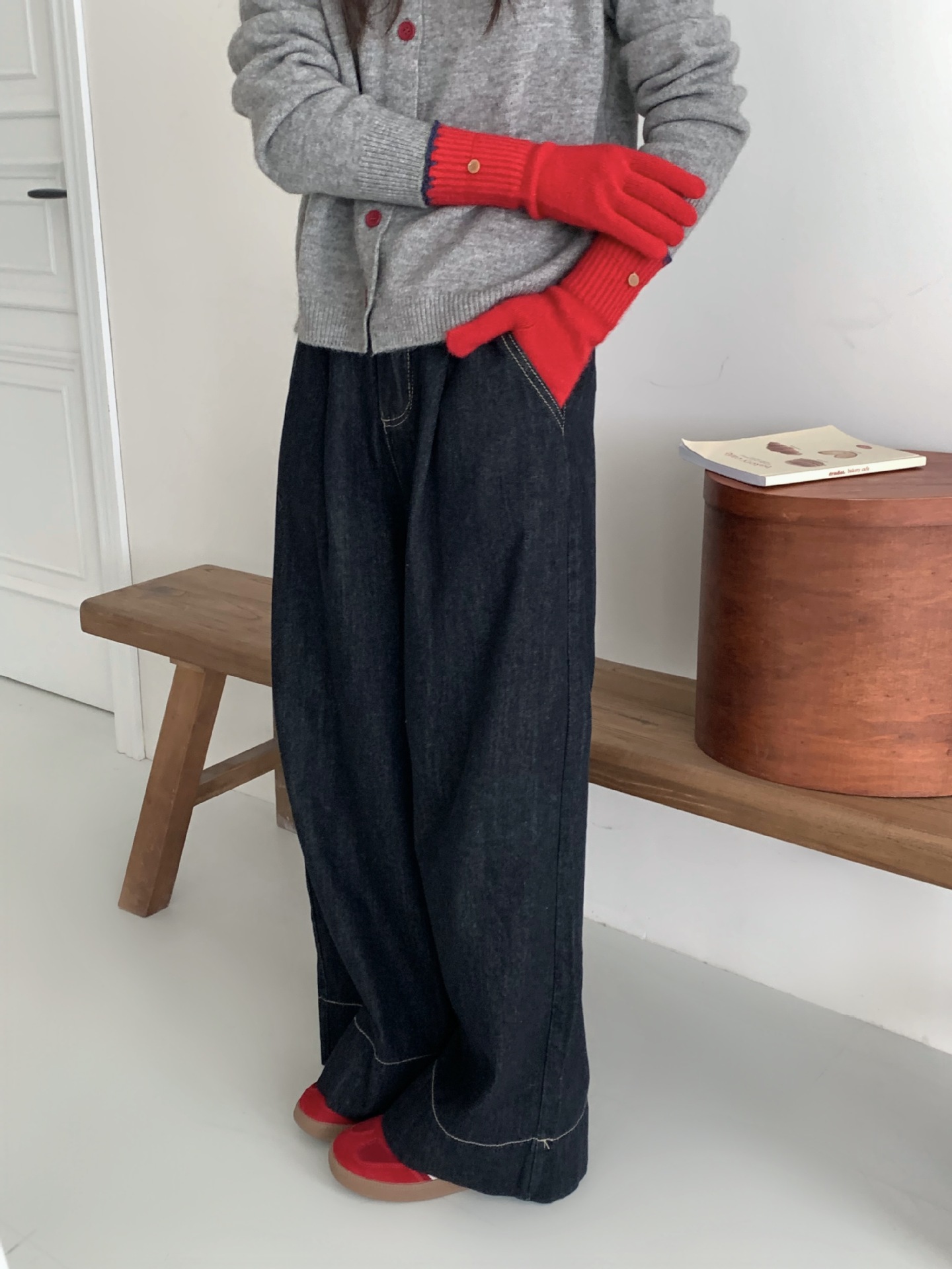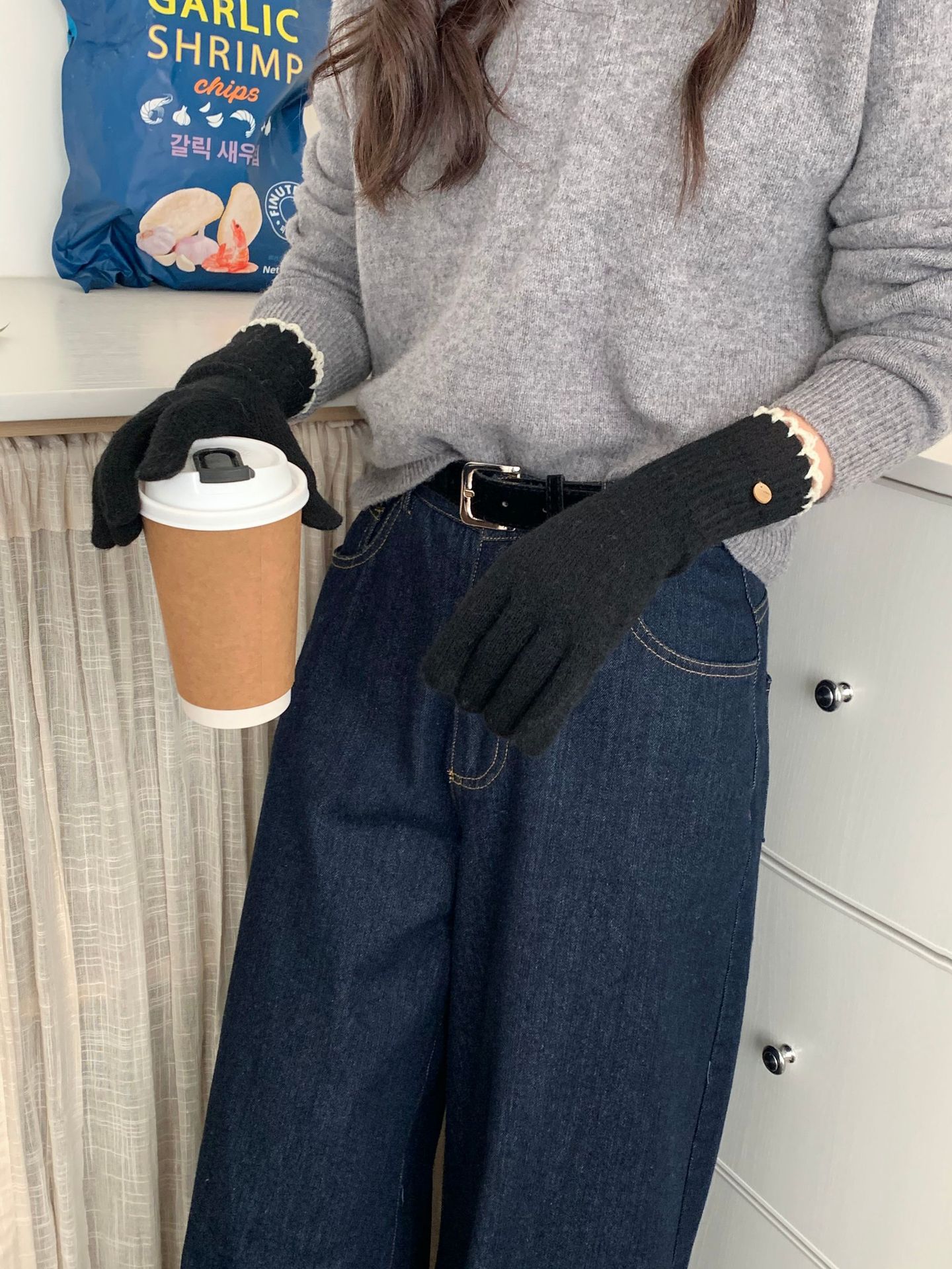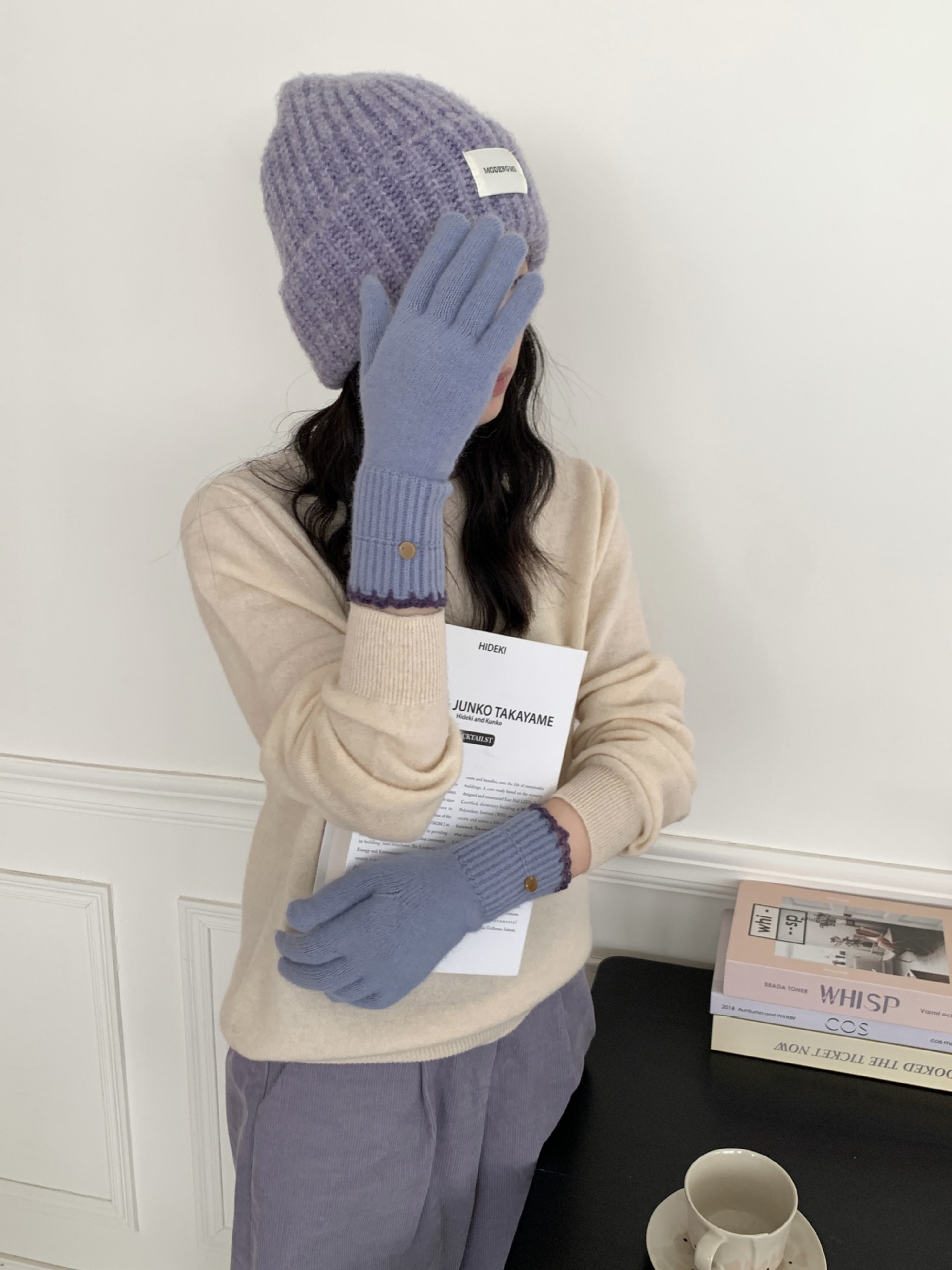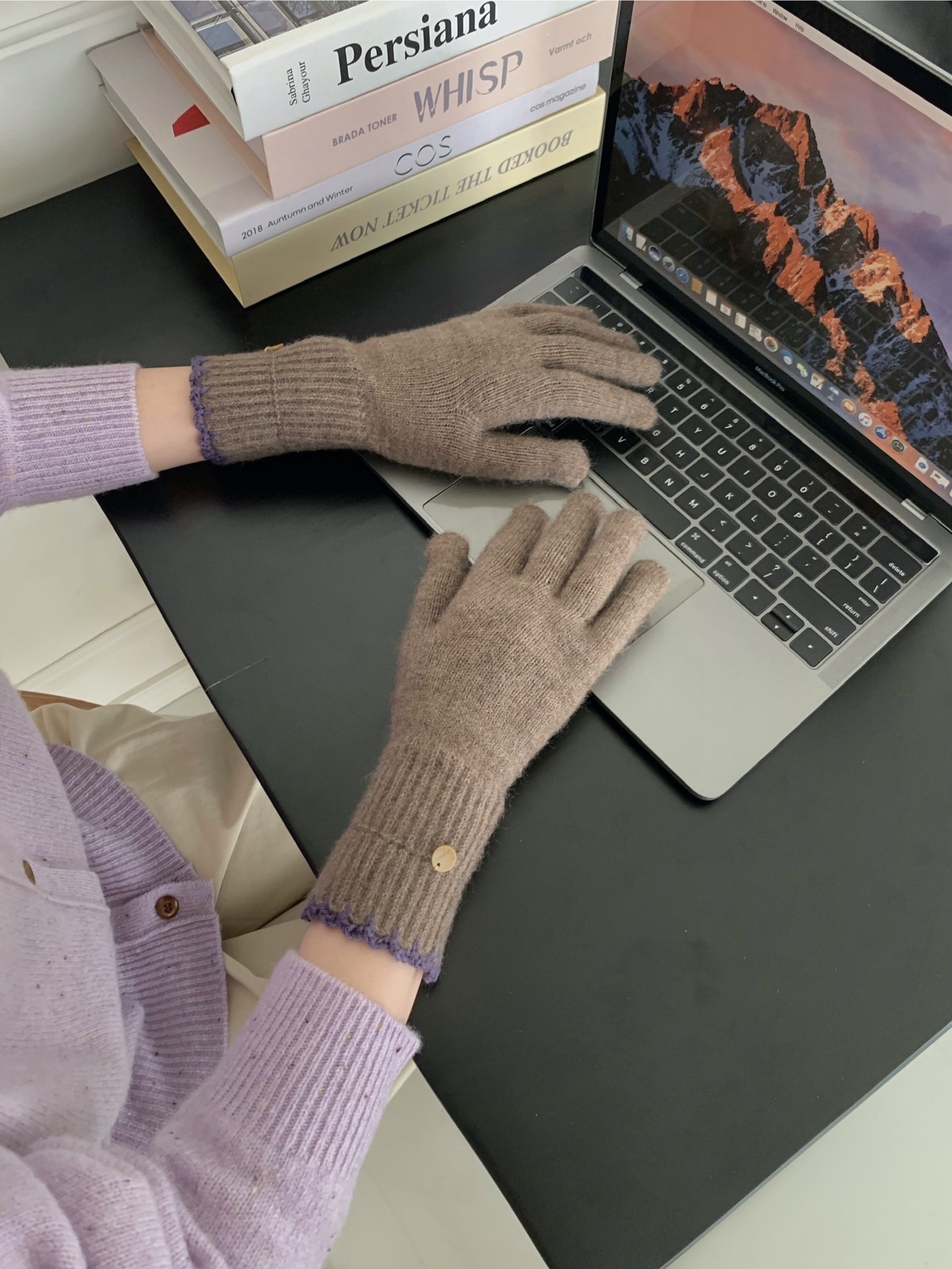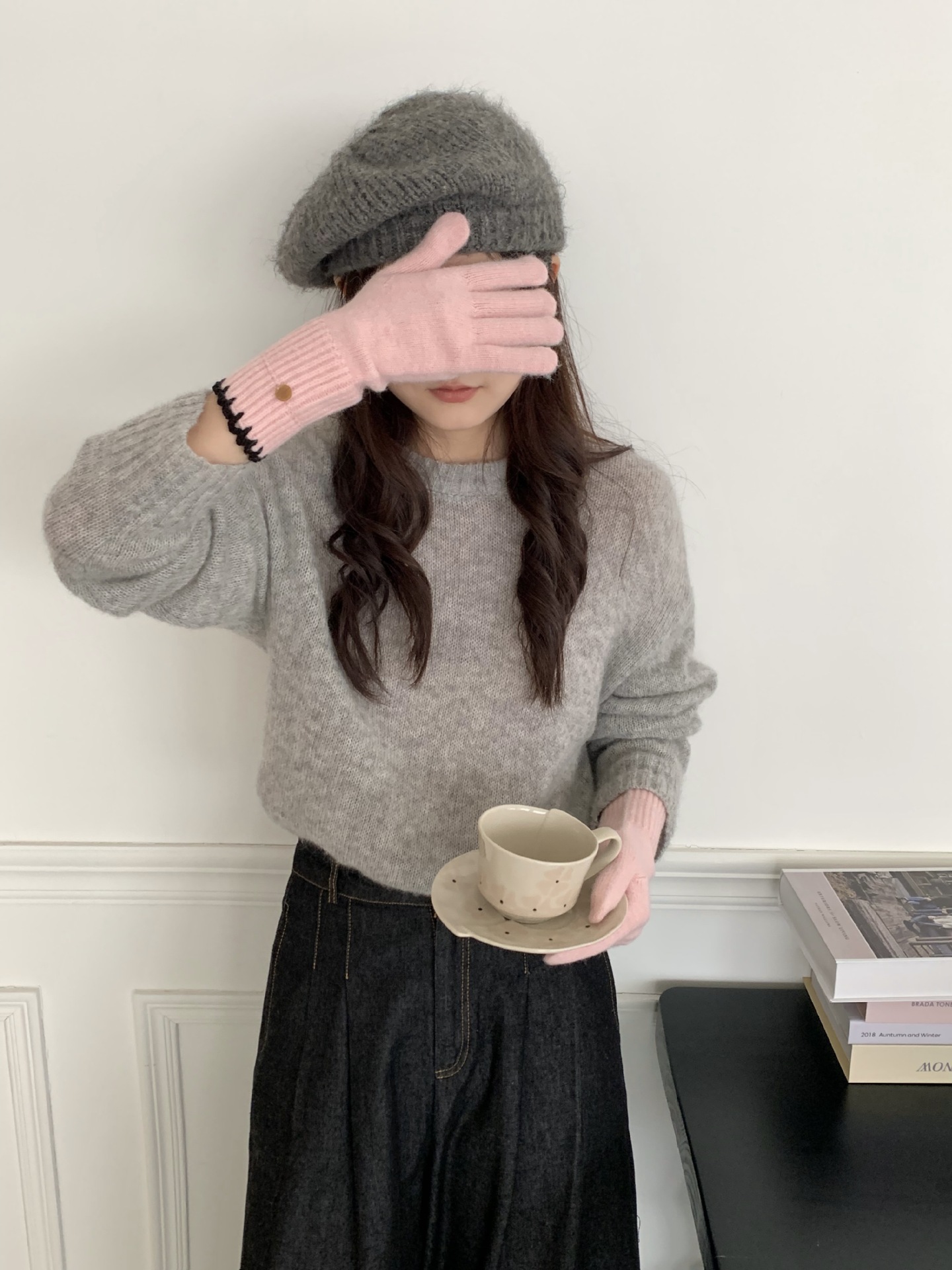 양모 단색 니트 장갑 한국 버전 여성의 2024 년 새로운 가을과 겨울 라이딩 손가락 누출 터치 스크린이 두꺼워졌습니다.