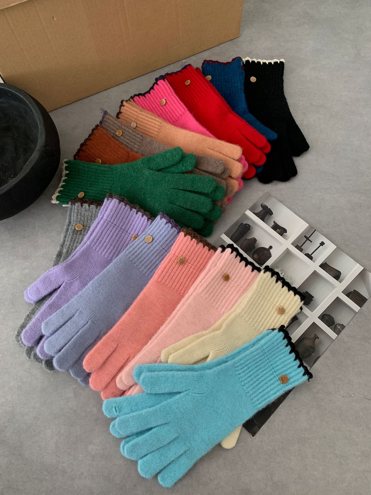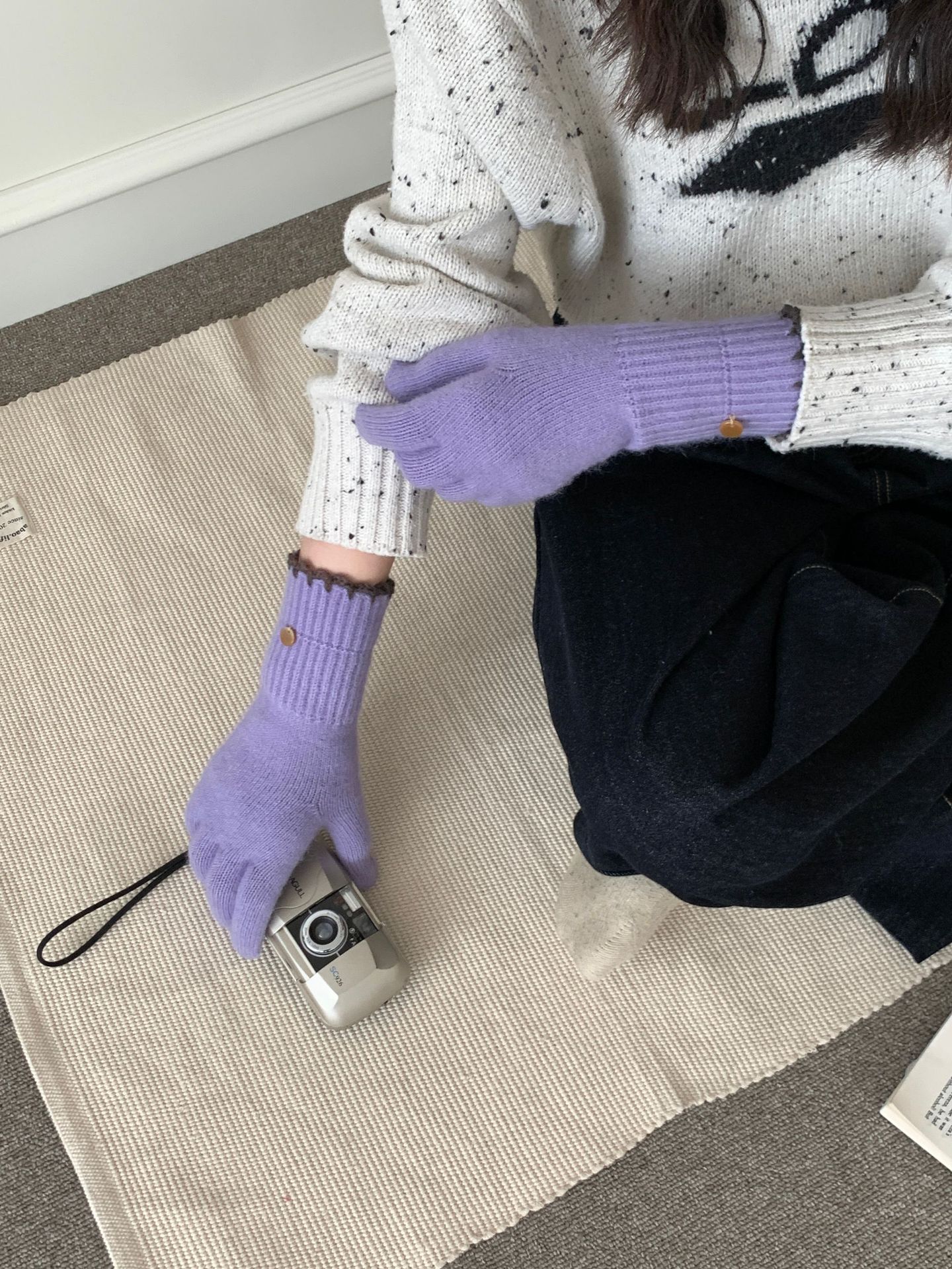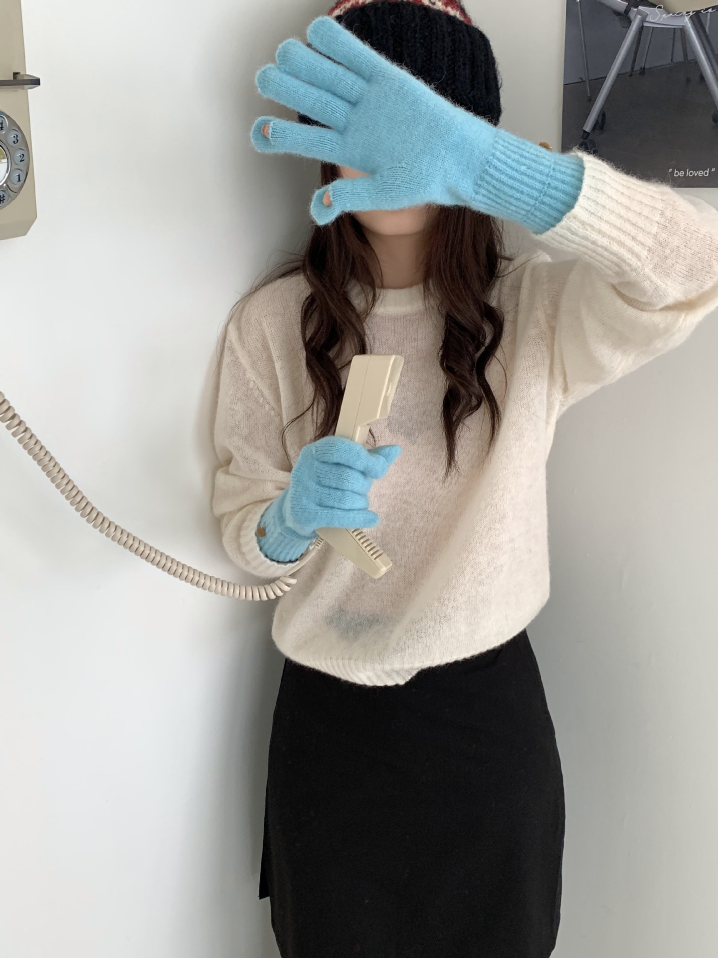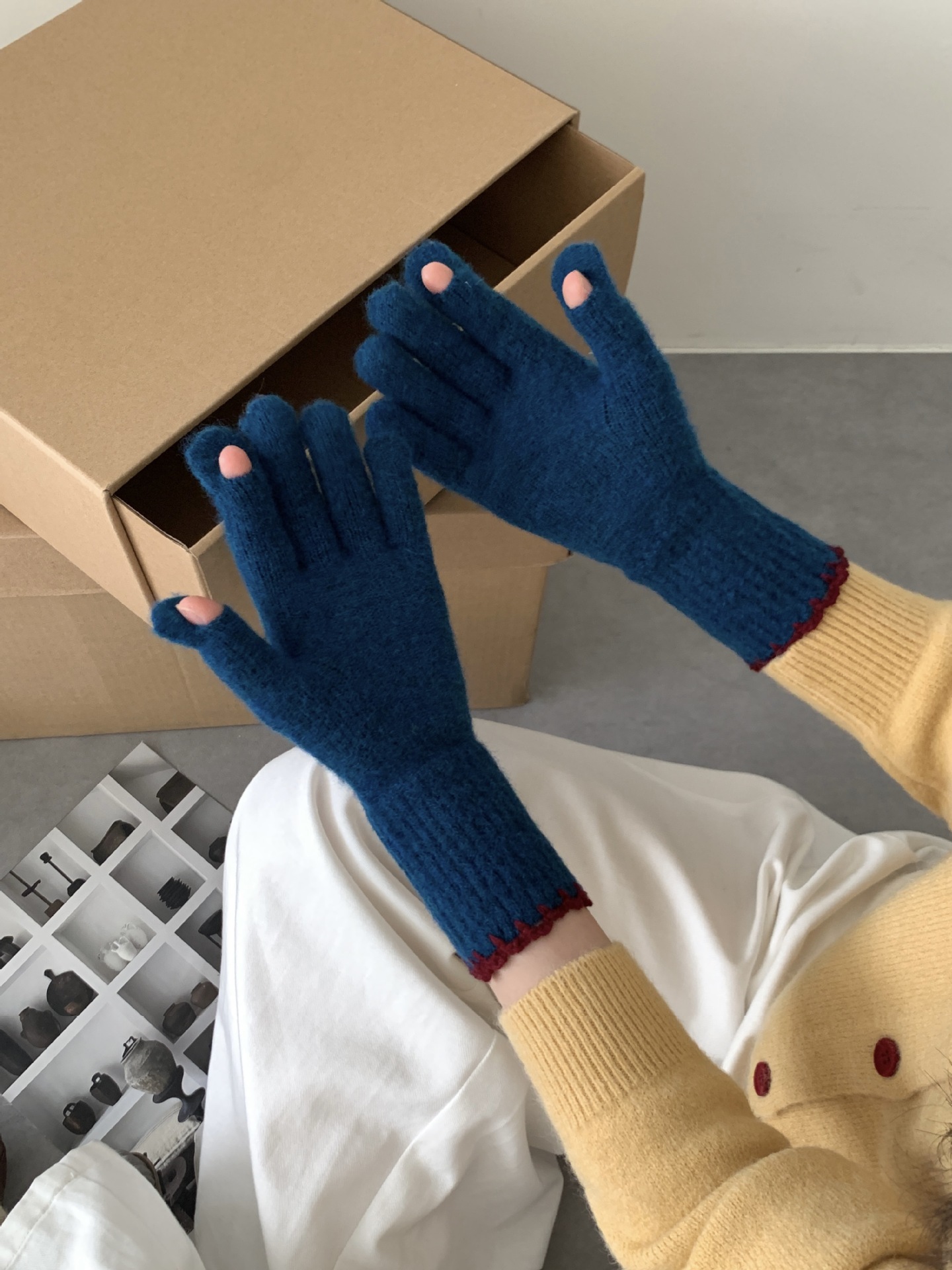 양모 단색 니트 장갑 한국 버전 여성의 2024 년 새로운 가을과 겨울 라이딩 손가락 누출 터치 스크린이 두꺼워졌습니다.스토어 가기