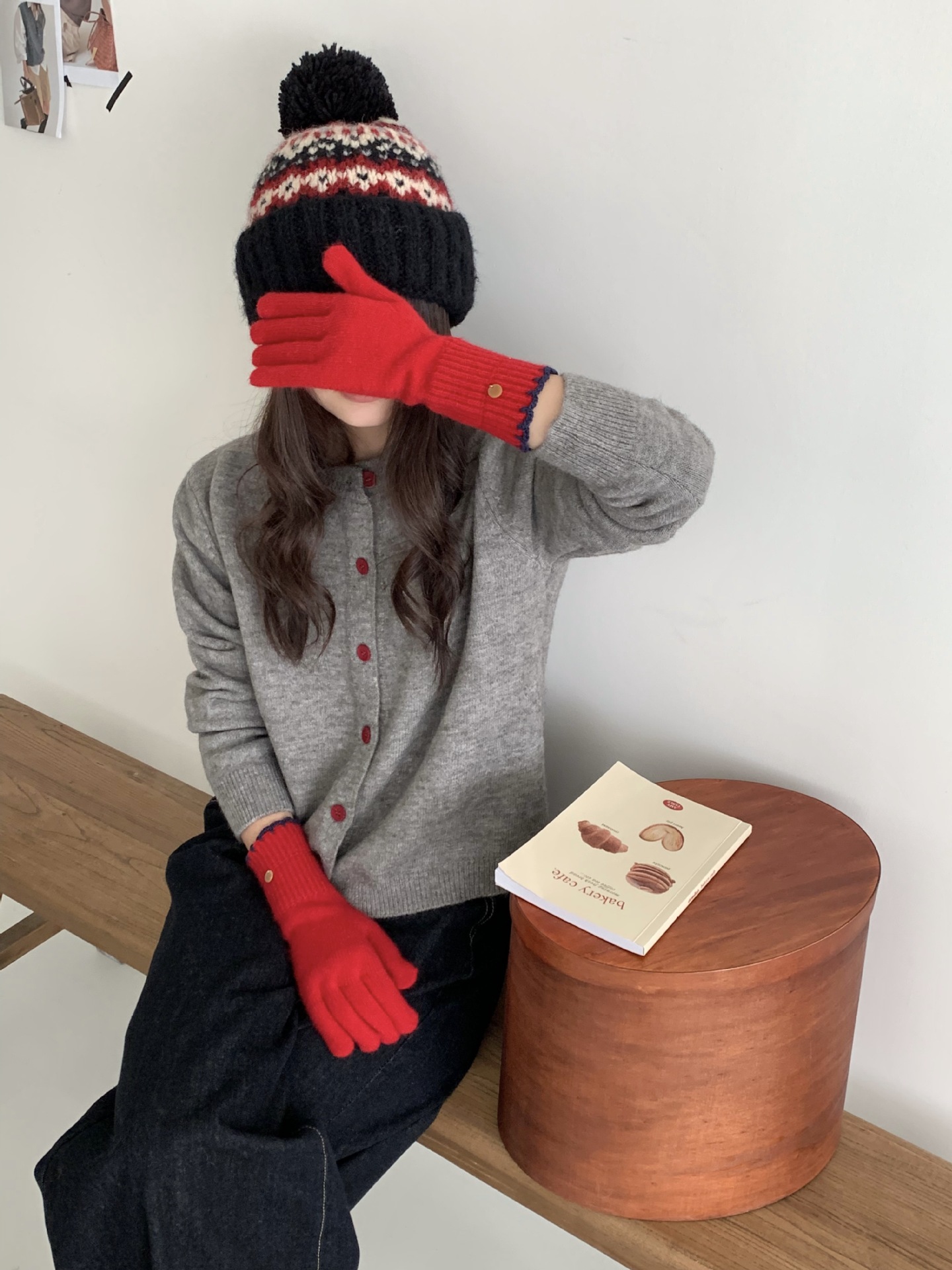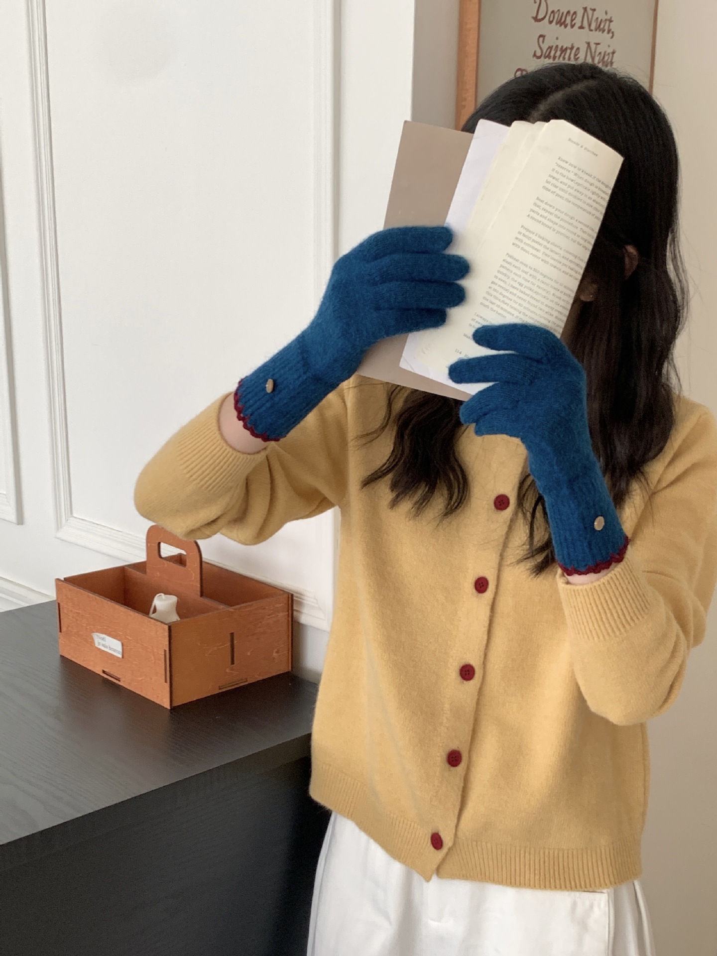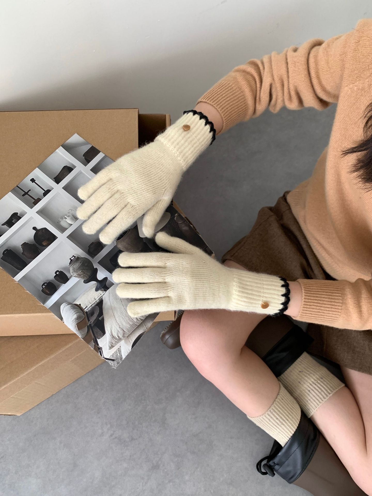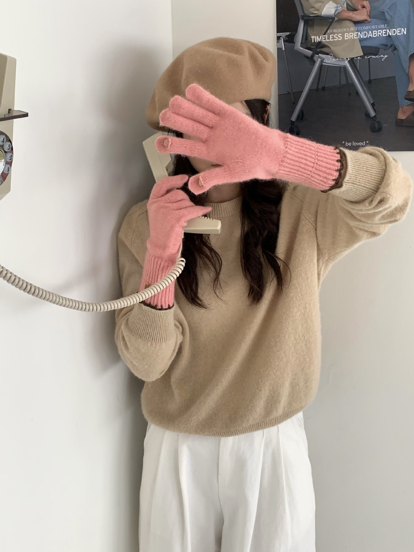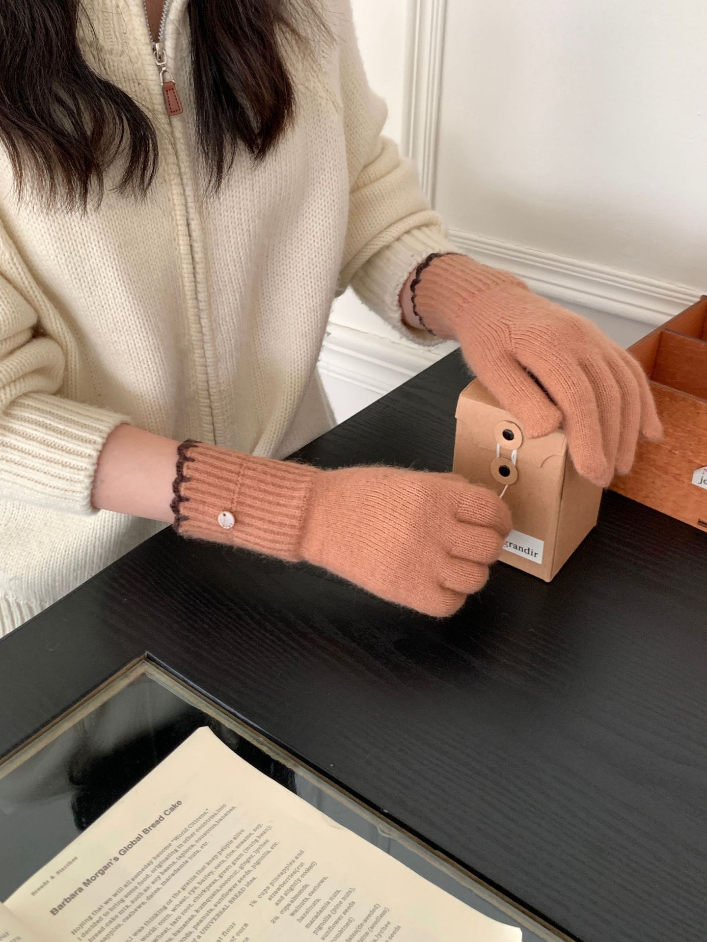 양모 단색 니트 장갑 한국 버전 여성의 2024 년 새로운 가을과 겨울 라이딩 손가락 누출 터치 스크린이 두꺼워졌습니다.스토어 가기