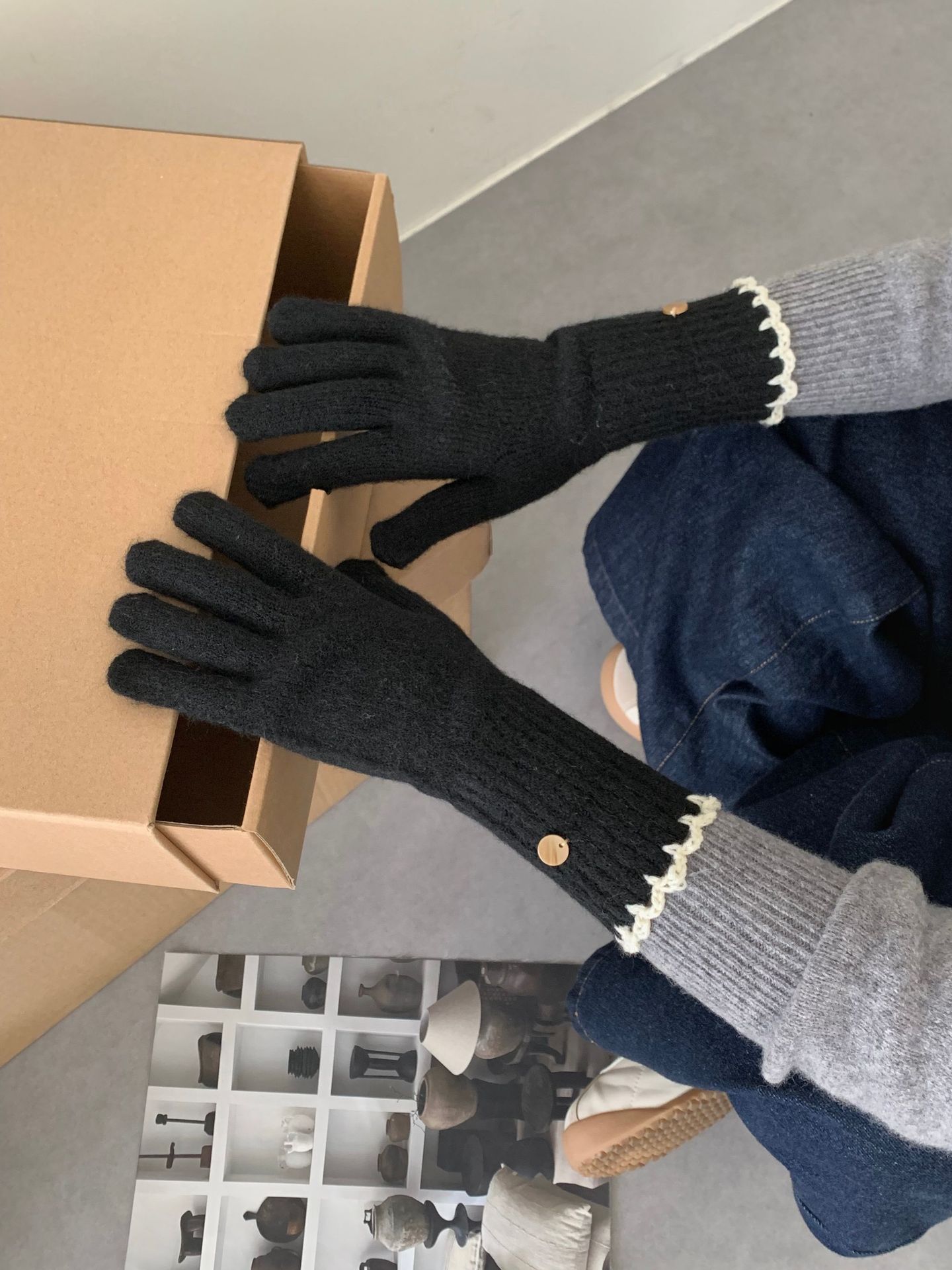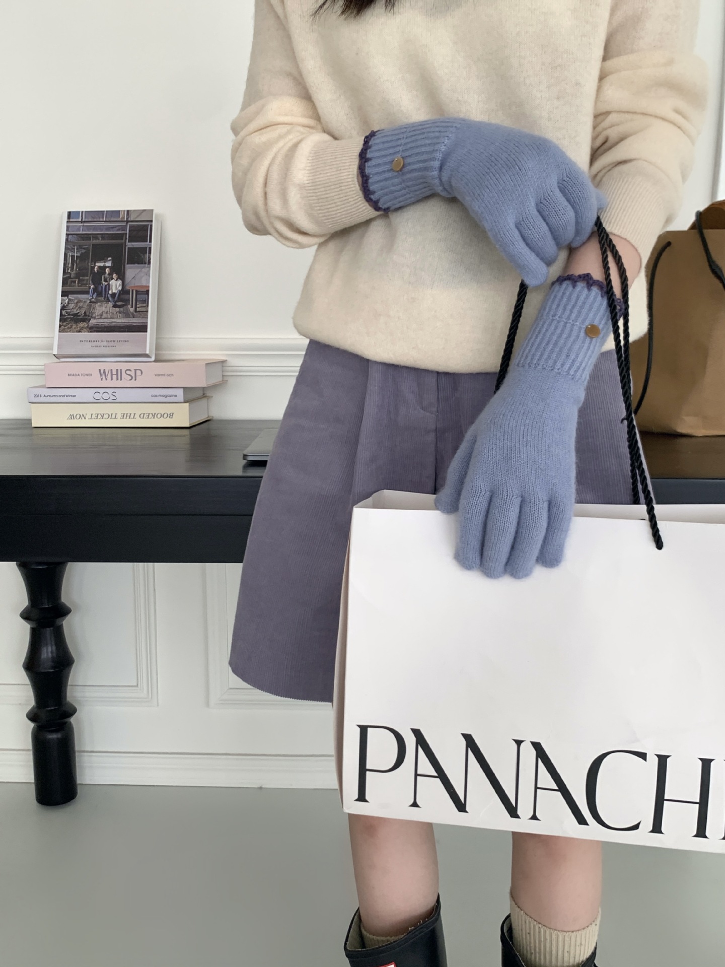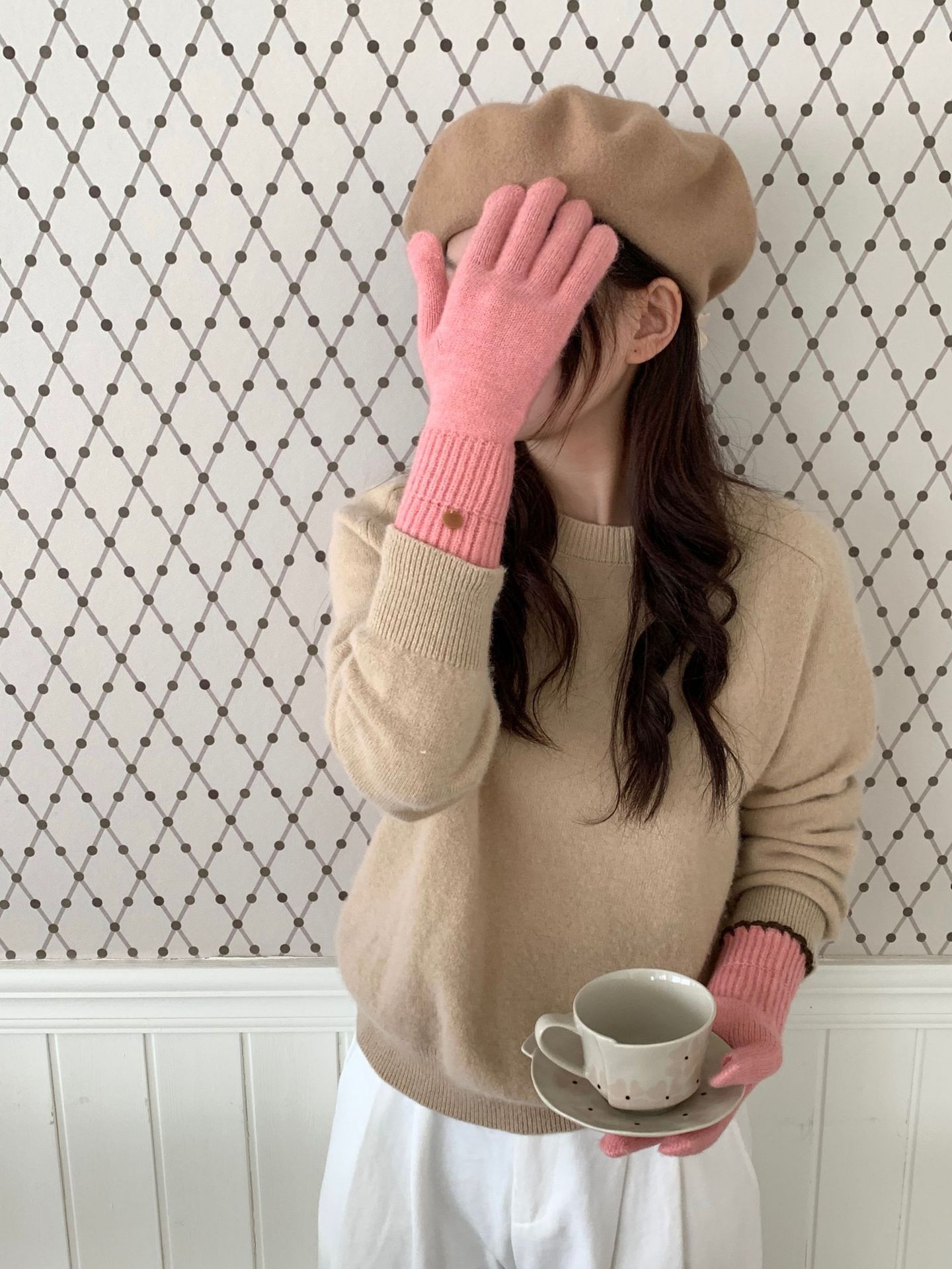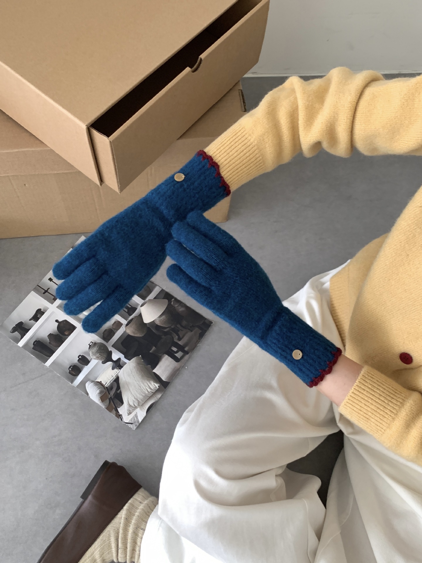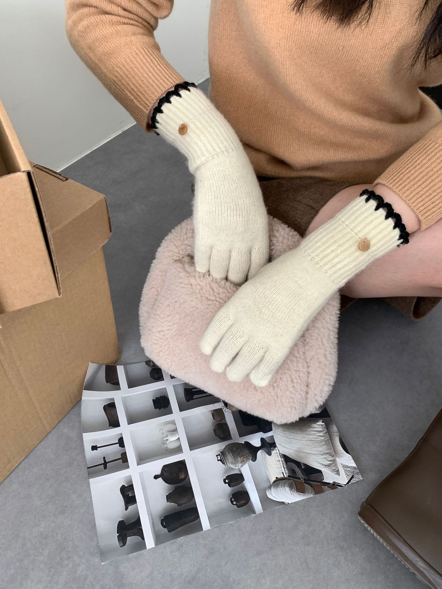 양모 단색 니트 장갑 한국 버전 여성의 2024 년 새로운 가을과 겨울 라이딩 손가락 누출 터치 스크린이 두꺼워졌습니다.스토어 가기