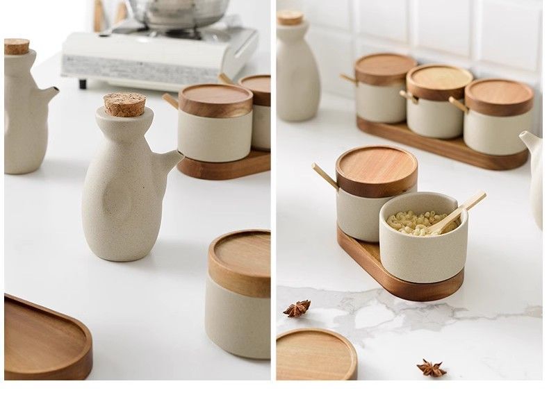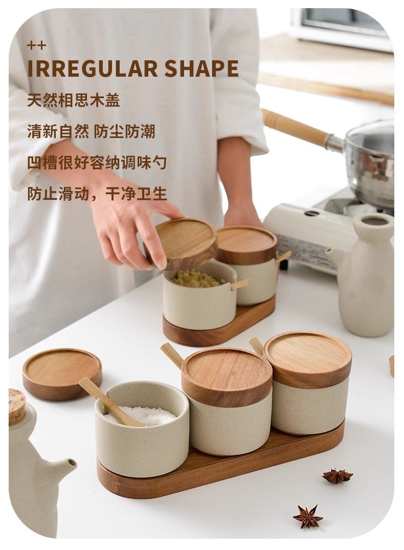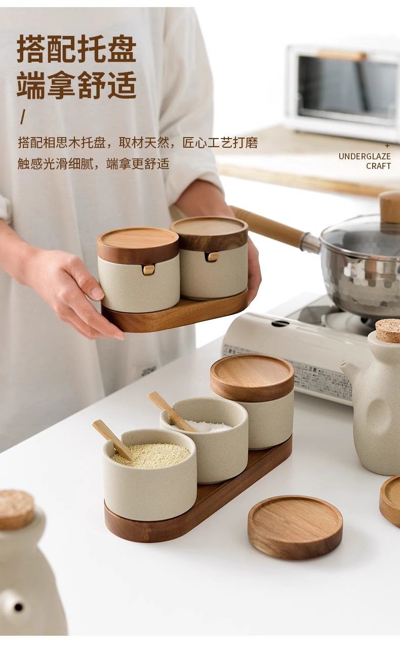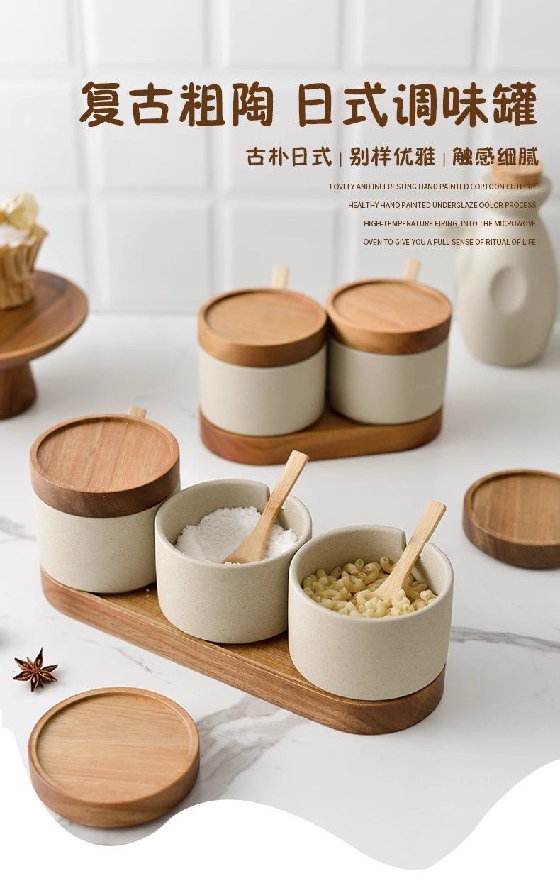 일본식 조미료 항아리 세라믹 조미료 항아리 가정용 주방 조합 세트 소금 MSG 후추 조미료 Lanzhi스토어 가기