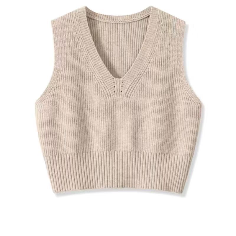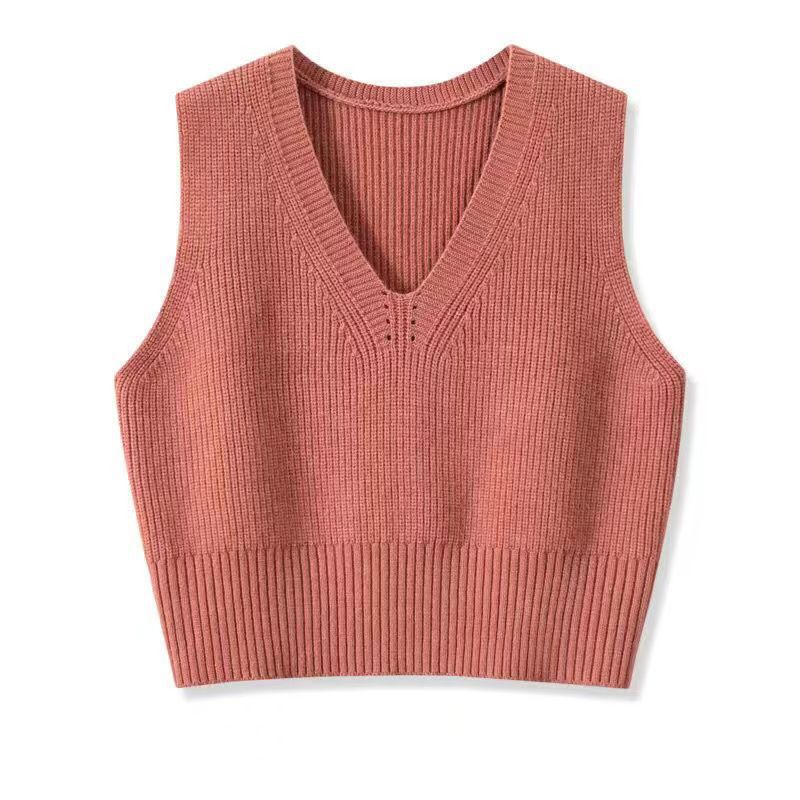 짧은 조끼 스웨터 여성의 가을과 겨울 새로운 모든 경기 간단한 V-목 느슨한 유행 단색베이스 스웨터스토어 가기