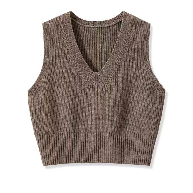 짧은 조끼 스웨터 여성의 가을과 겨울 새로운 모든 경기 간단한 V-목 느슨한 유행 단색베이스 스웨터