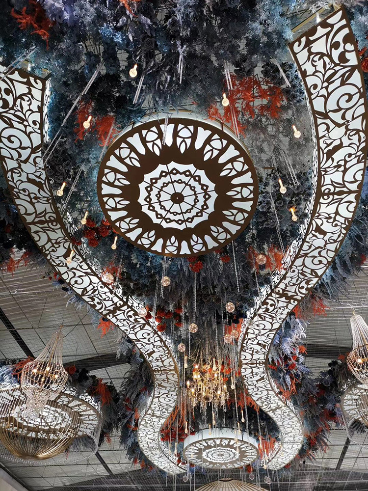 새로운 결혼식 소품 철 천장 라이트 박스 결혼식 강당 무대 장면 장식 라운드 펜던트가 될 수 있습니다스토어 가기