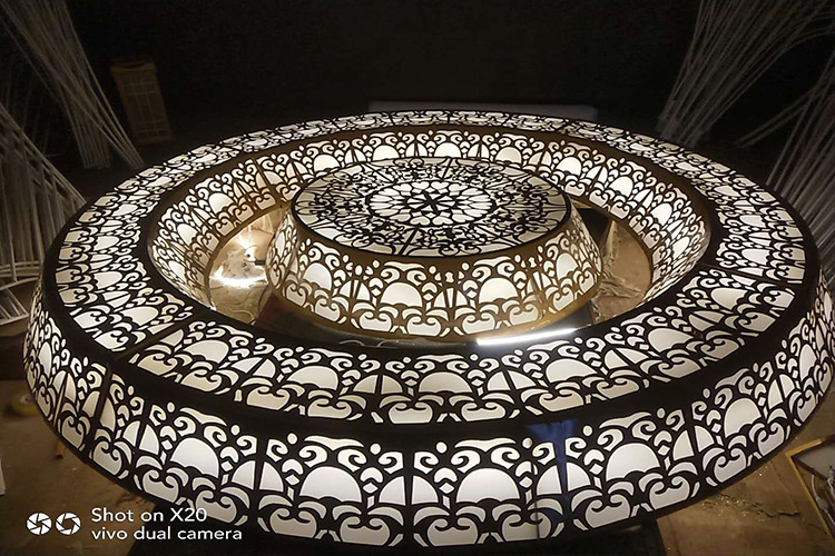 새로운 결혼식 소품 철 천장 라이트 박스 결혼식 강당 무대 장면 장식 라운드 펜던트가 될 수 있습니다