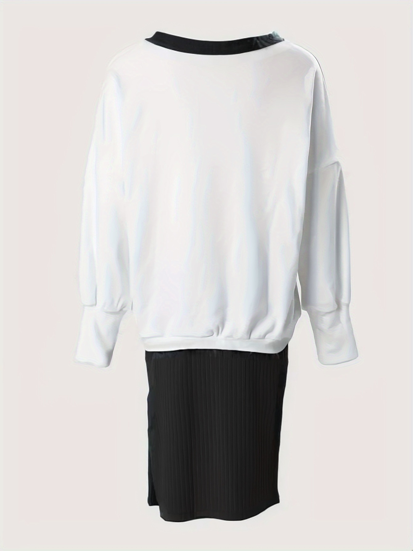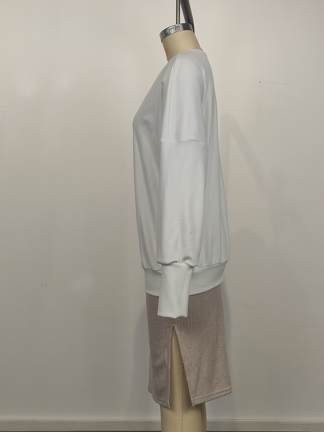 국경 간 패션 여성의 외출 캐주얼 루즈 V 넥 스웨트 세트 타이트 오버 스커트 롱 슬리브 탑 투피스 세트스토어 가기