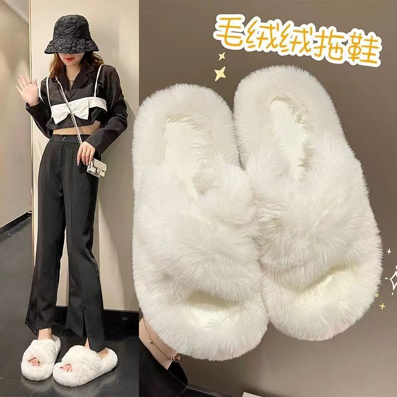 홈 마오 마오 슬리퍼 연인을위한 새로운 가을과 겨울 국경 따뜻한 미끄럼 방지 두꺼운 바닥이 여성을위한 플러시 면화 슬리퍼스토어 가기