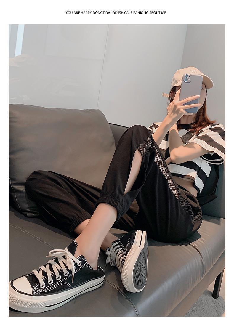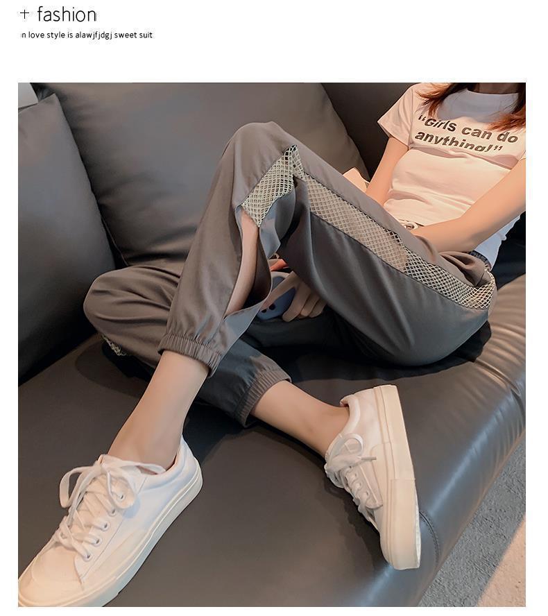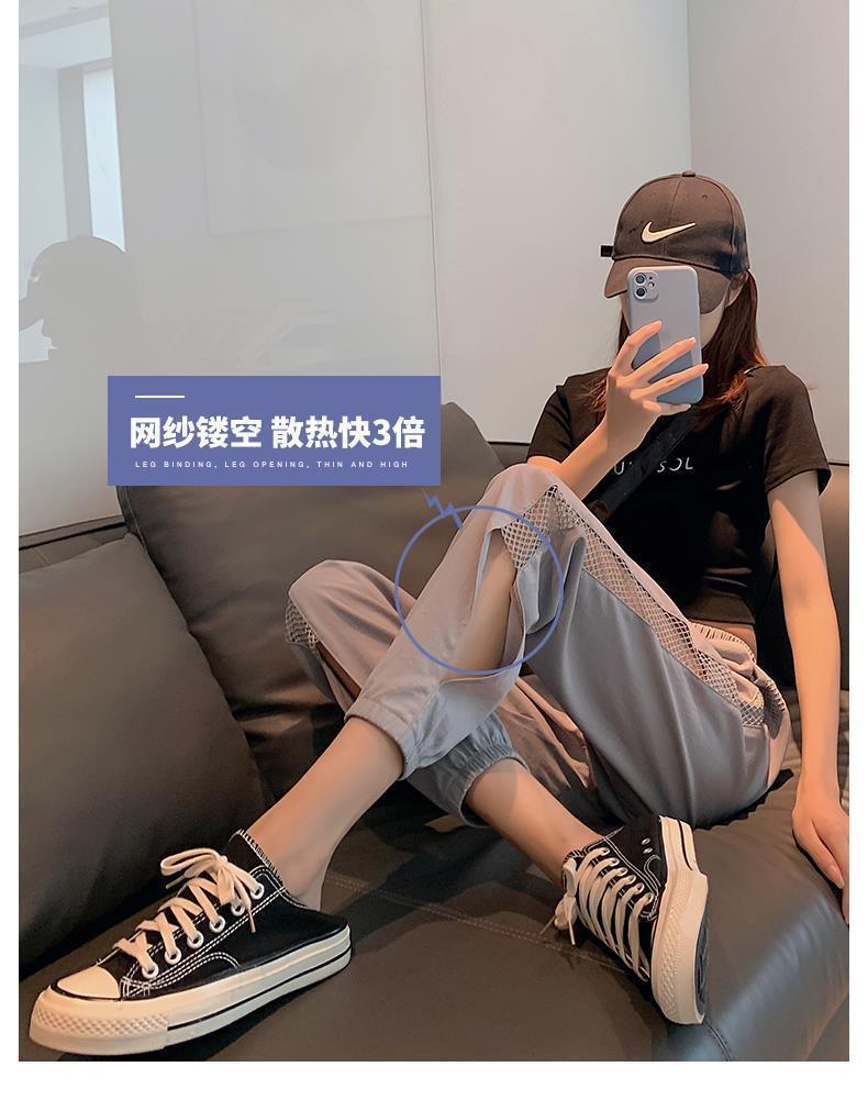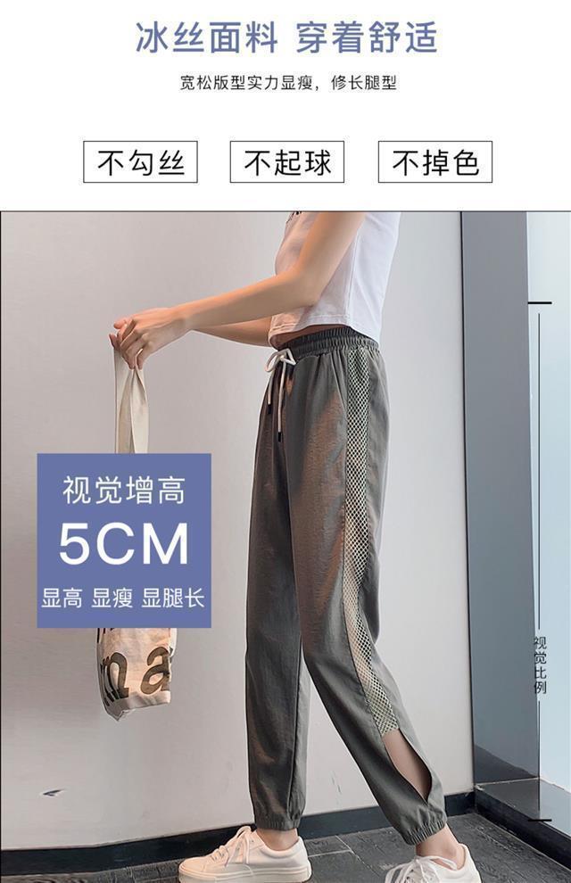 아이스 실크 스포츠 바지 여자 바지 여름 얇은 느슨한 넓은 다리 플러스 사이즈 9 포인트 캐주얼 2021 새로운 슬리밍 란지스토어 가기