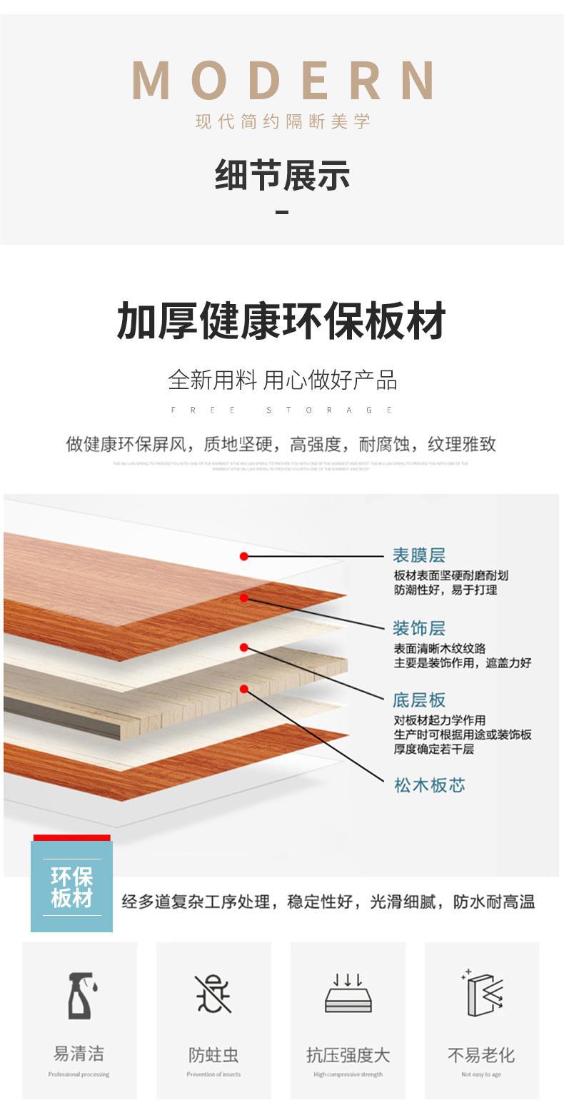 • 수직 패턴 수납 선반, 이중 도어 서랍, 높이 220*80cm, 상단 및 하단 평면 도어가 있는 색상 일치