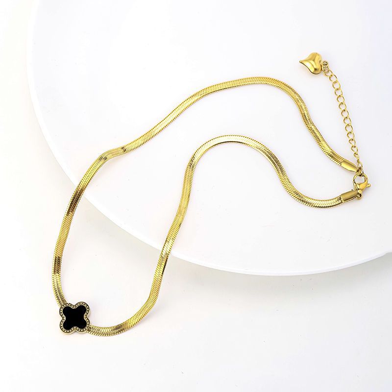 • 플랫 스네이크 체인 네잎 클로버 [골드]✦