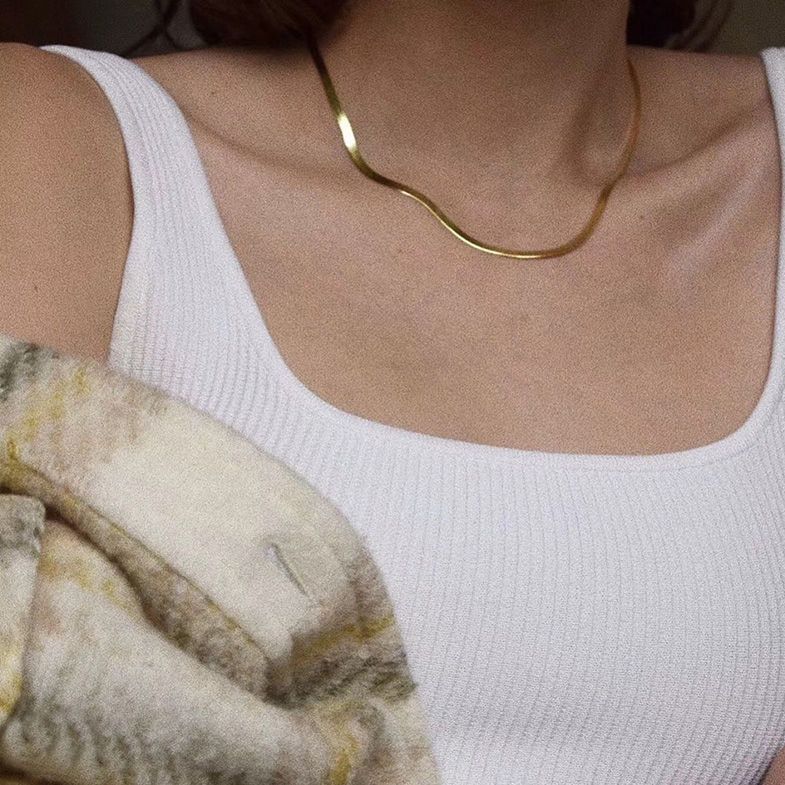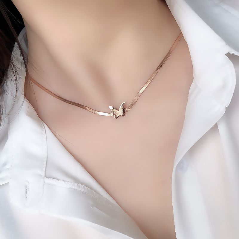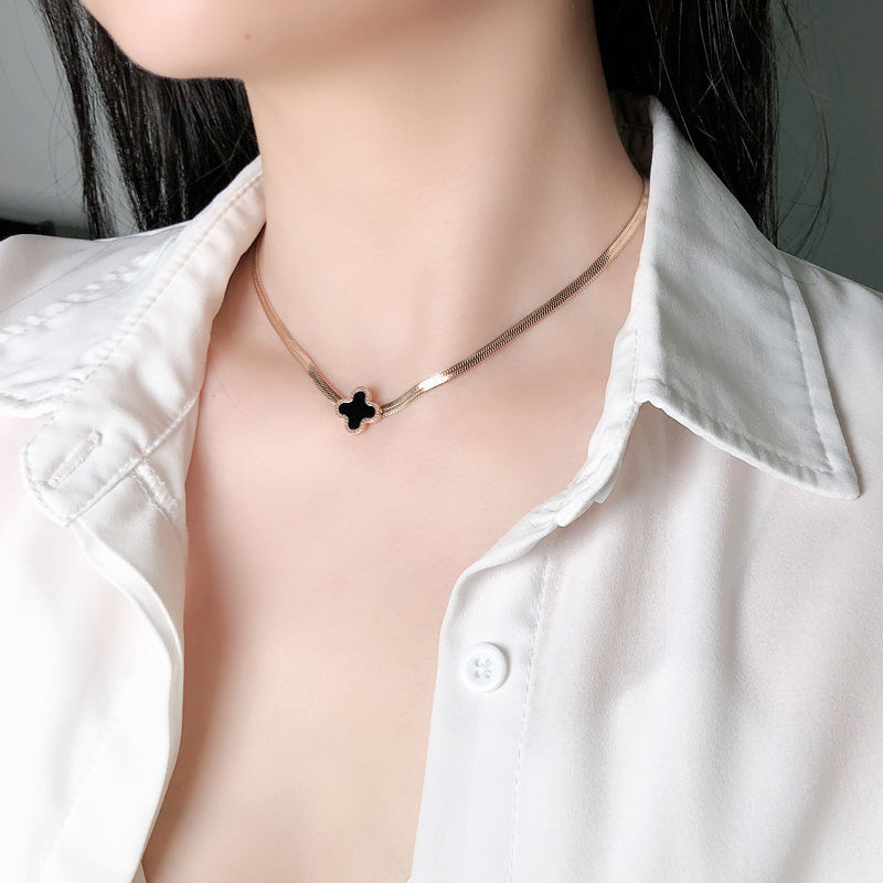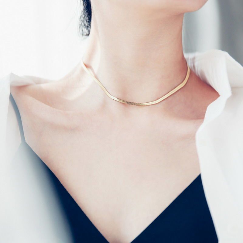 일본과 한국 스타일 올매치 성격 기질 목걸이 여성용 쇄골 체인 목걸이 티타늄 스틸 떨어지지 않는 알레르기 플랫 뱀 체인 브레이크스토어 가기