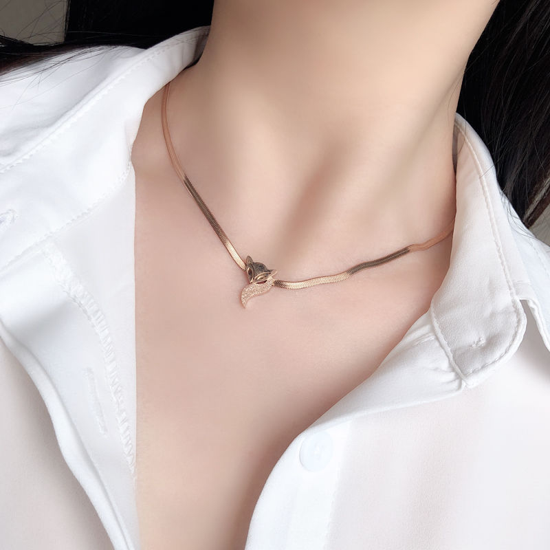 일본과 한국 스타일 올매치 성격 기질 목걸이 여성용 쇄골 체인 목걸이 티타늄 스틸 떨어지지 않는 알레르기 플랫 뱀 체인 브레이크