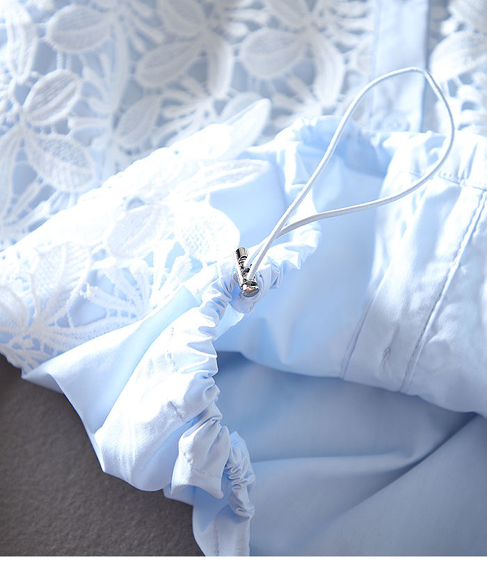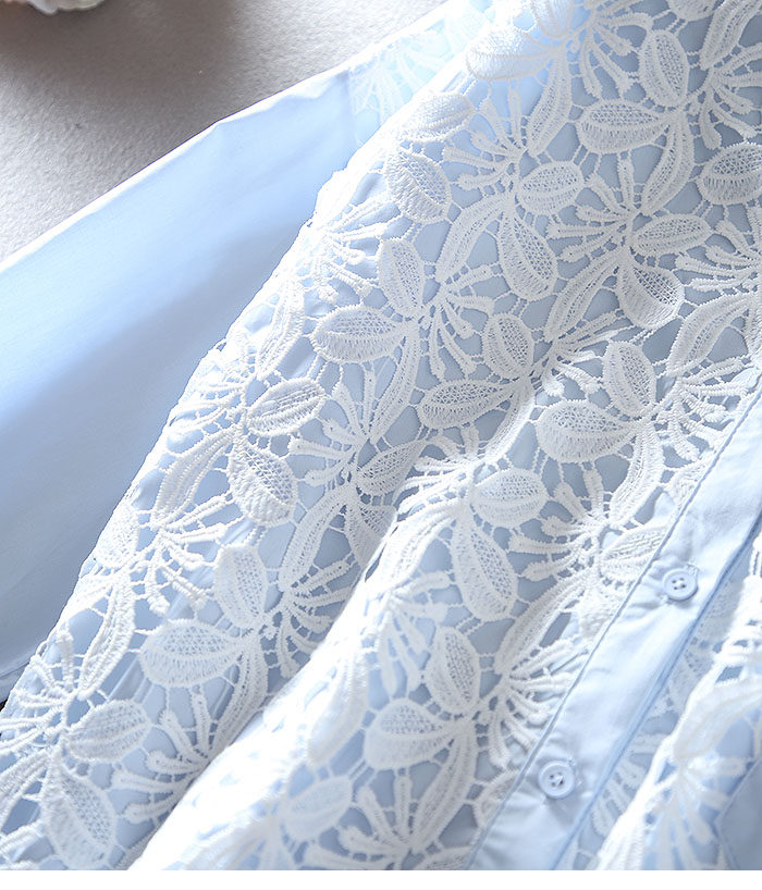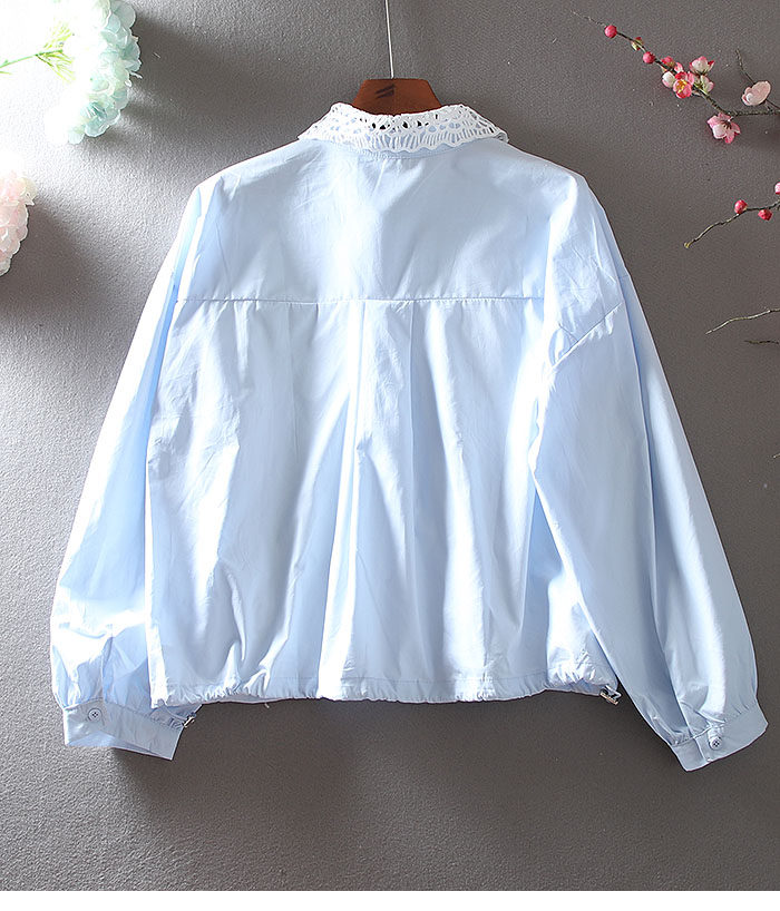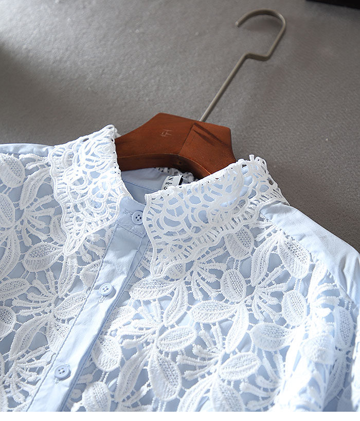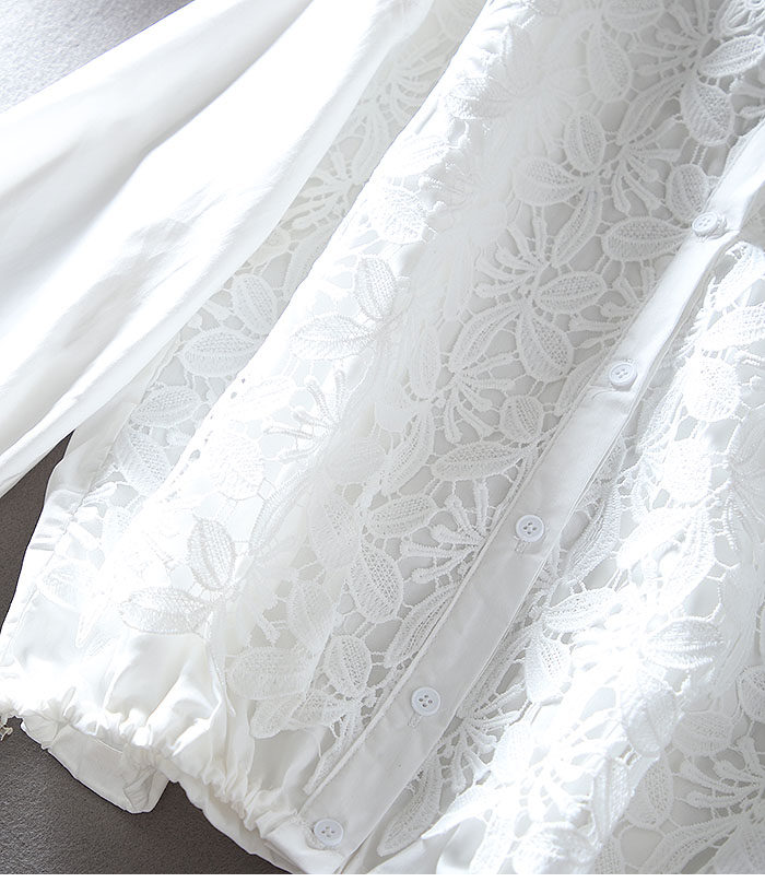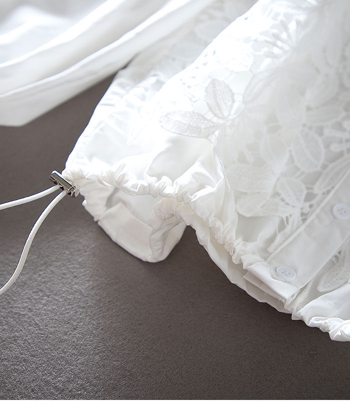 우아한 높은 허리 짧은 긴 소매 느슨한 레이스 바느질 프랑스 캐주얼 순면 가을 셔츠 올 매치 패션 탑스토어 가기