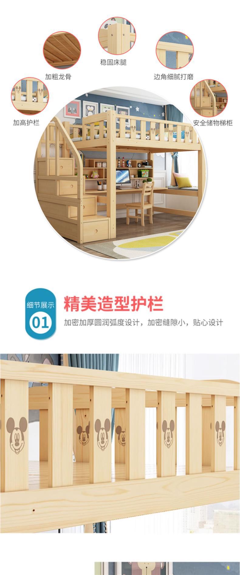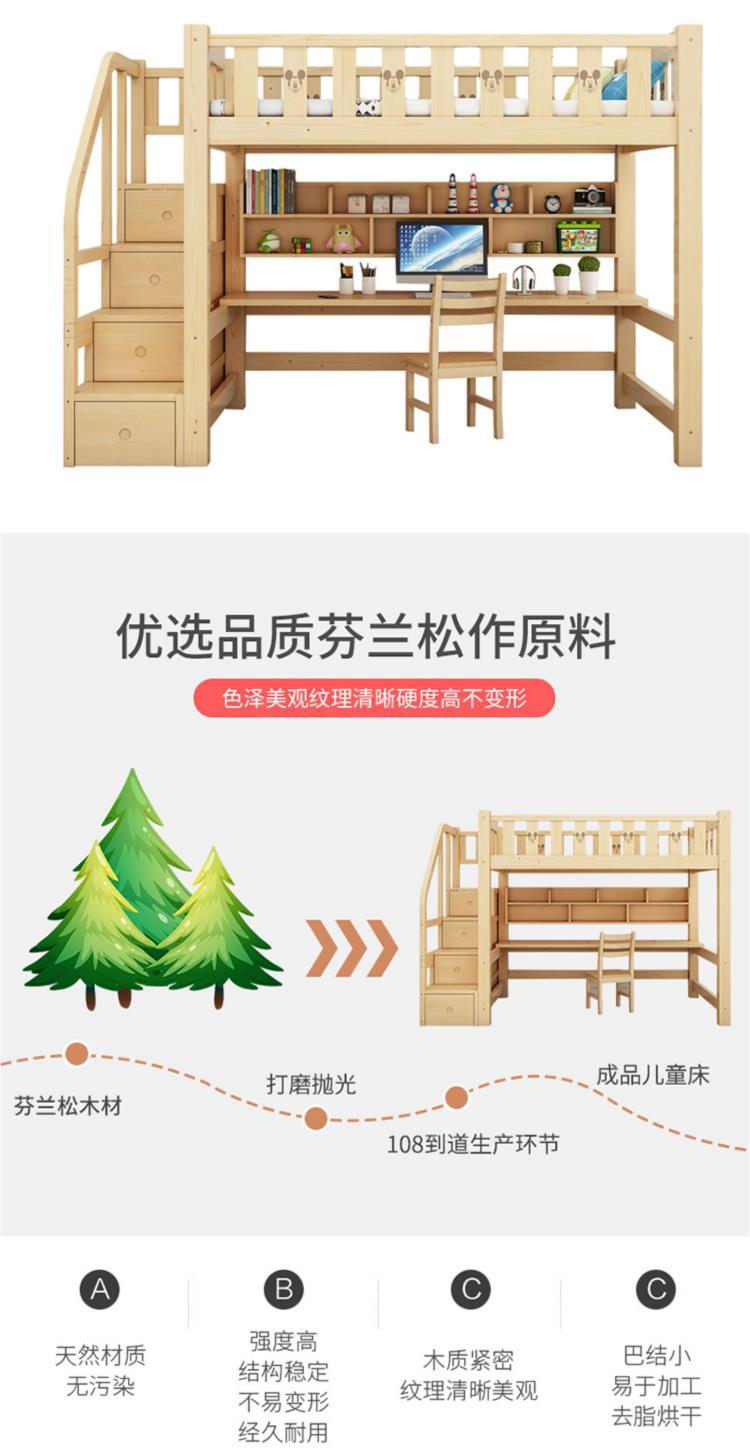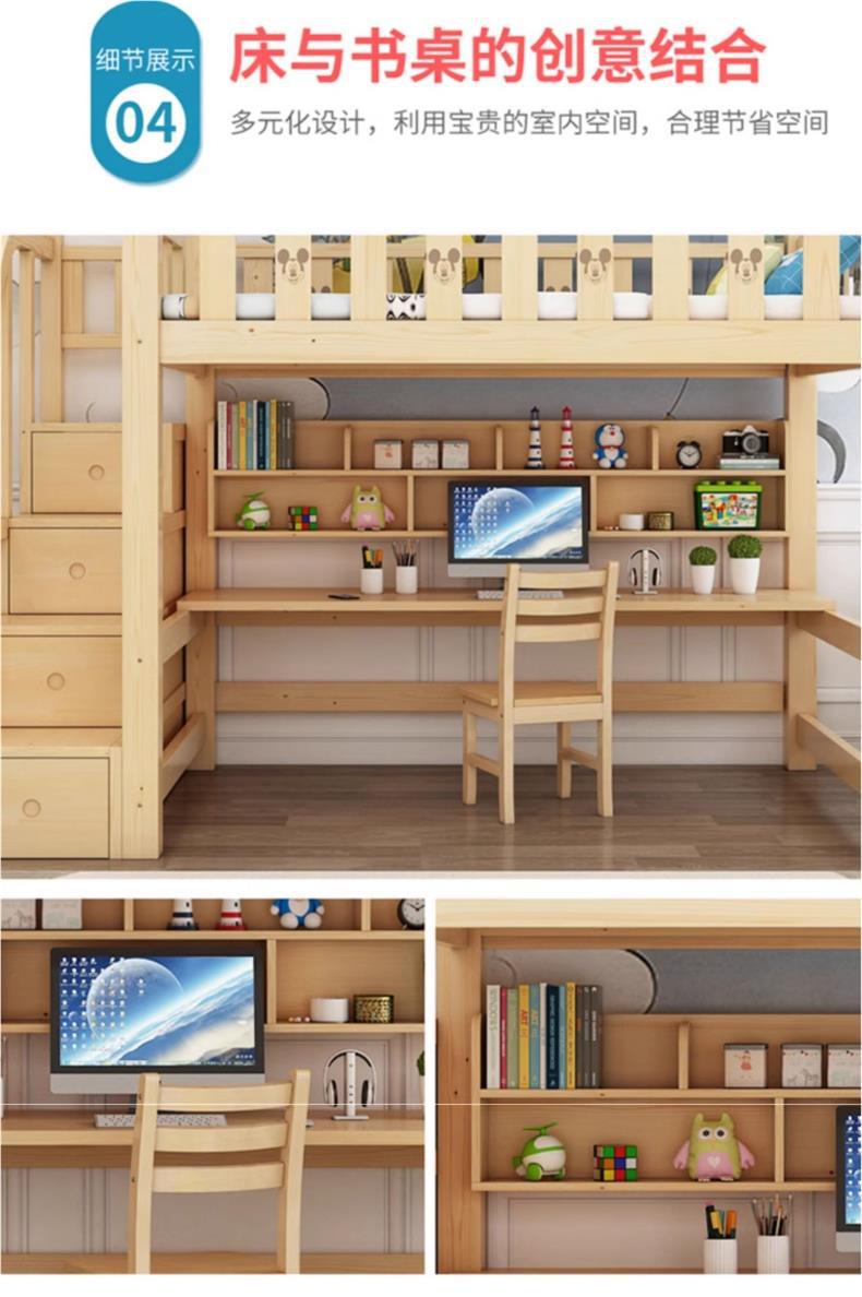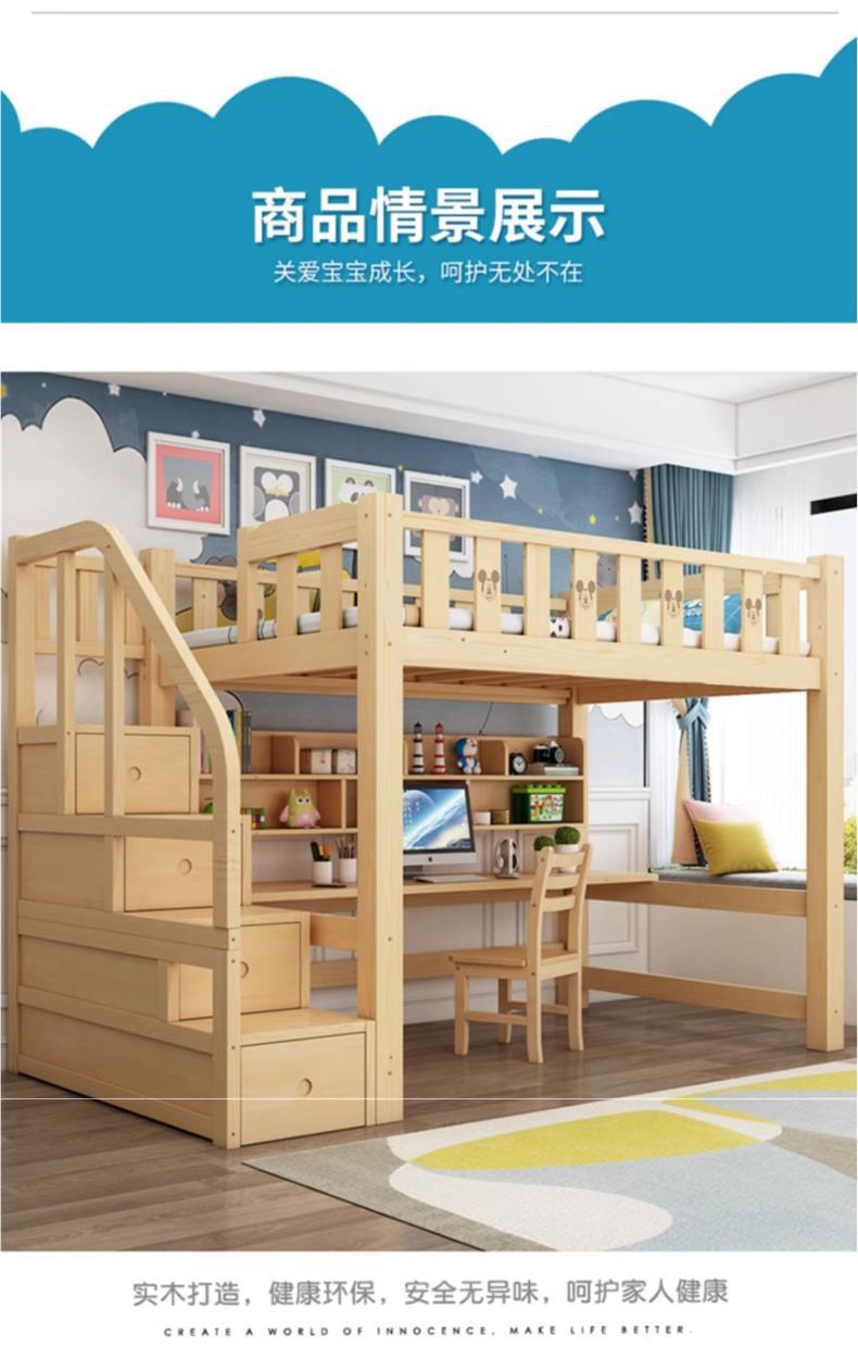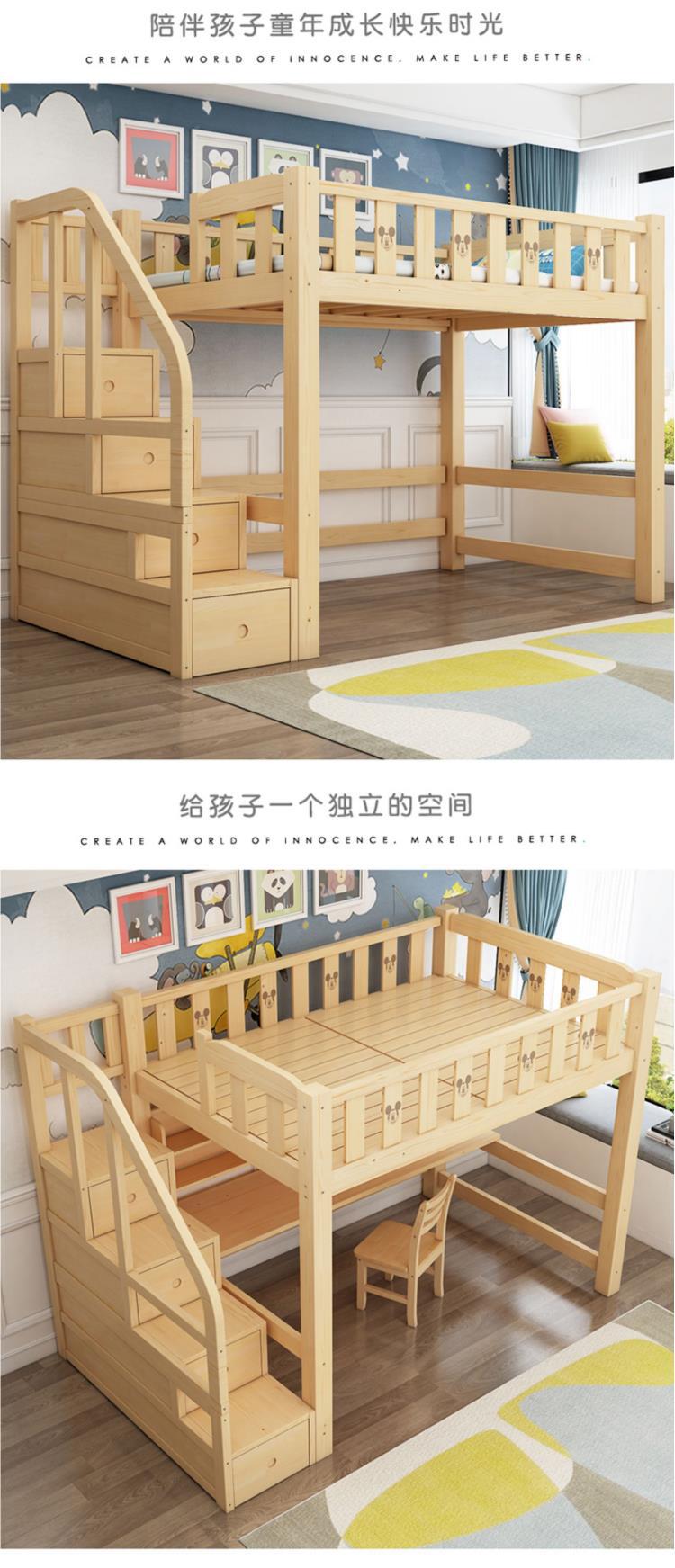 높은 침대 책상 단단한 나무 다기능 조합 침대 어린이 더블 레이어 높은 낮은 침대 침대 사다리 침대 침대 침대 침대 침대 테이블스토어 가기