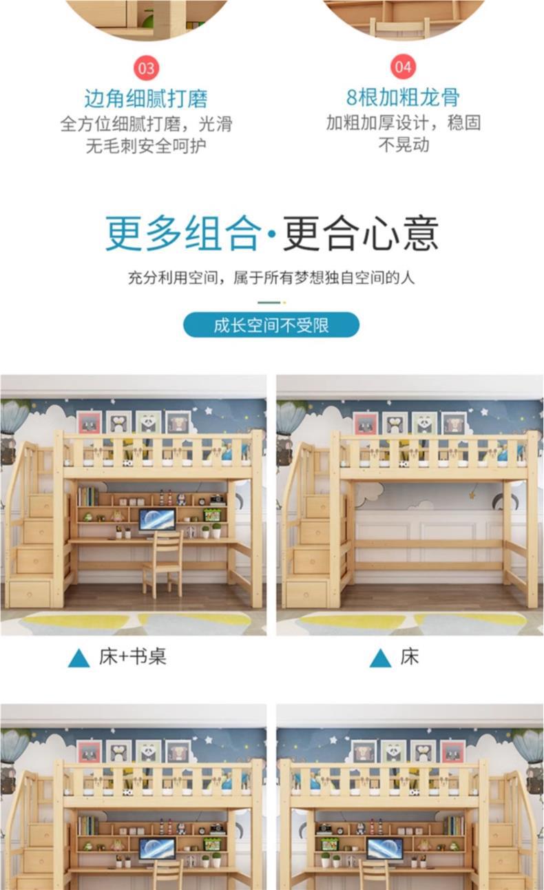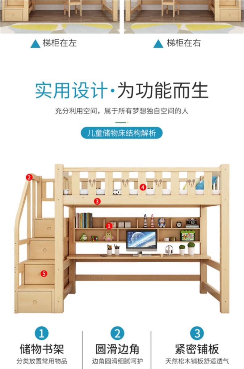 높은 침대 책상 단단한 나무 다기능 조합 침대 어린이 더블 레이어 높은 낮은 침대 침대 사다리 침대 침대 침대 침대 침대 테이블
