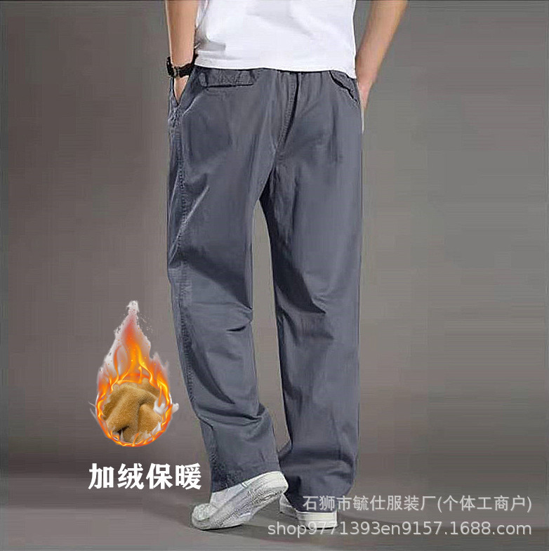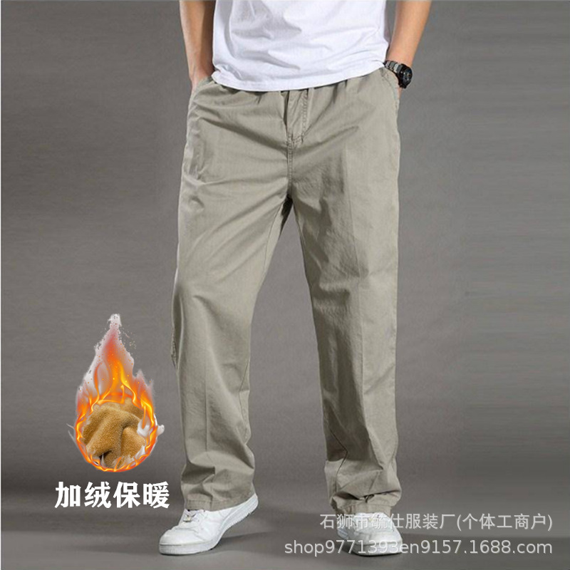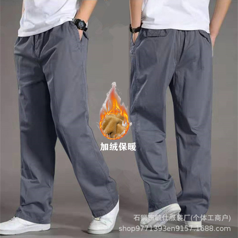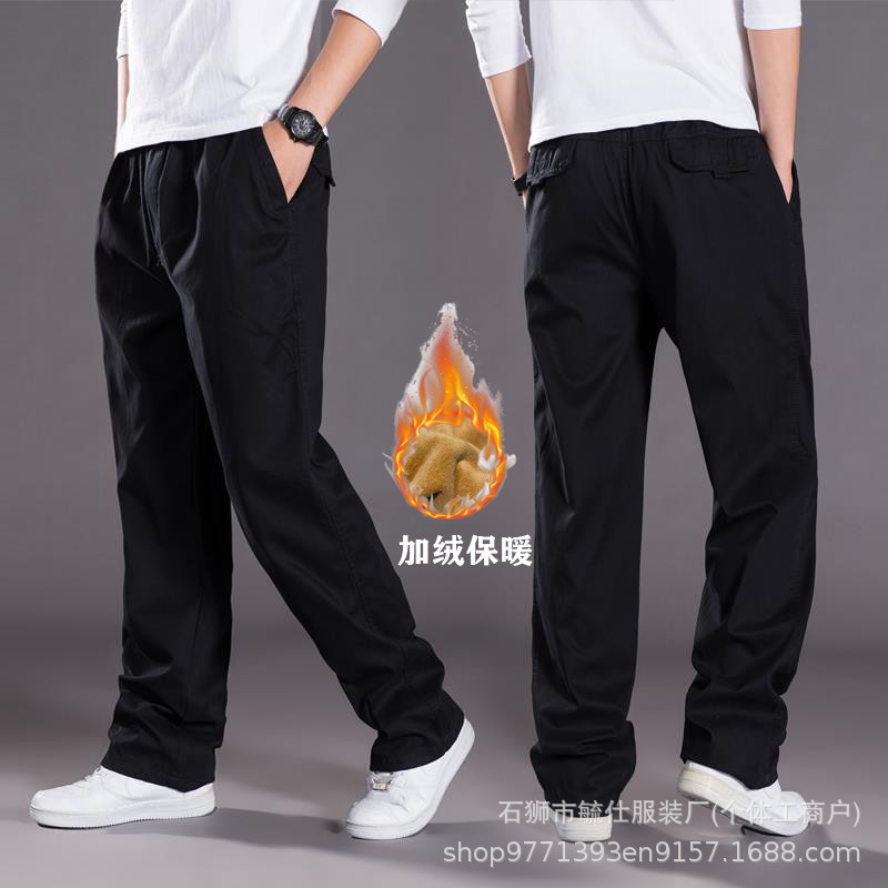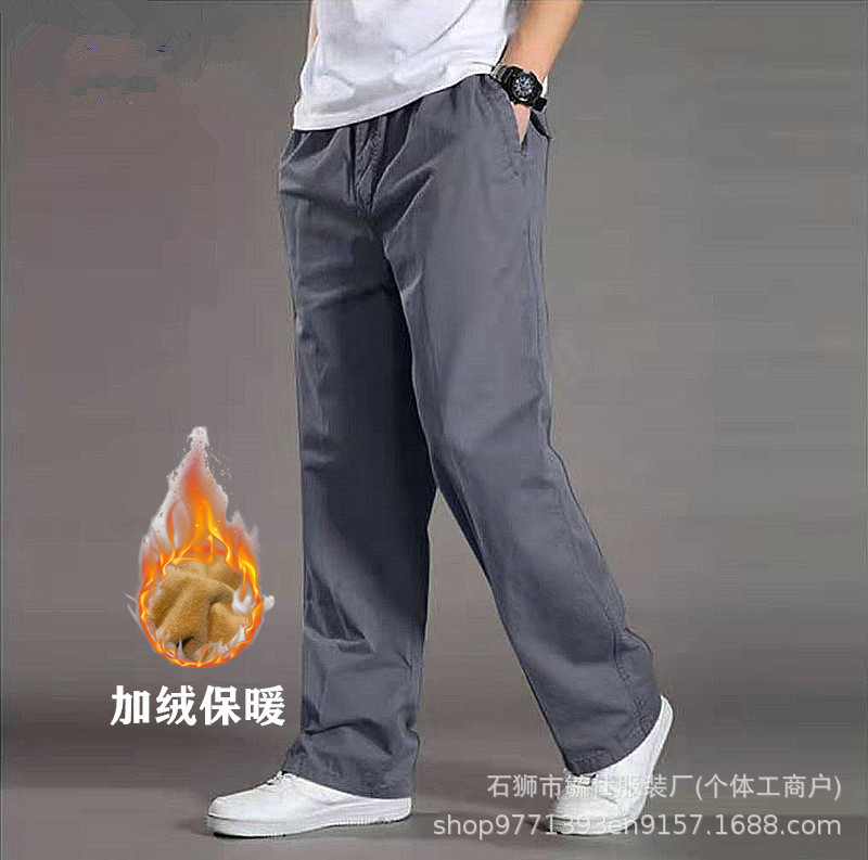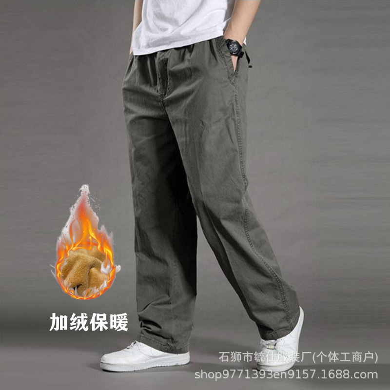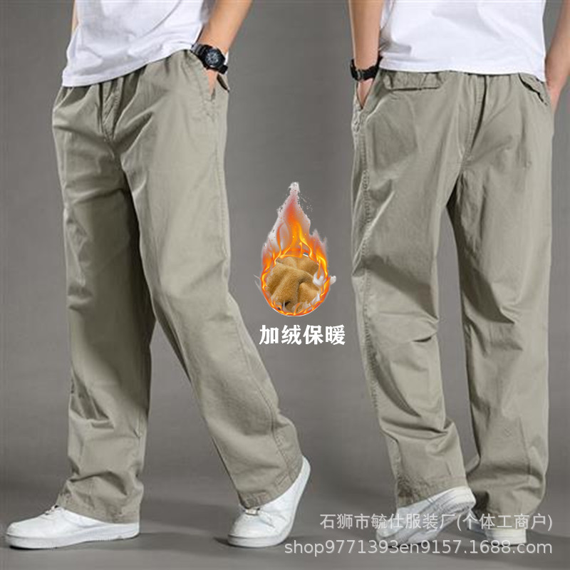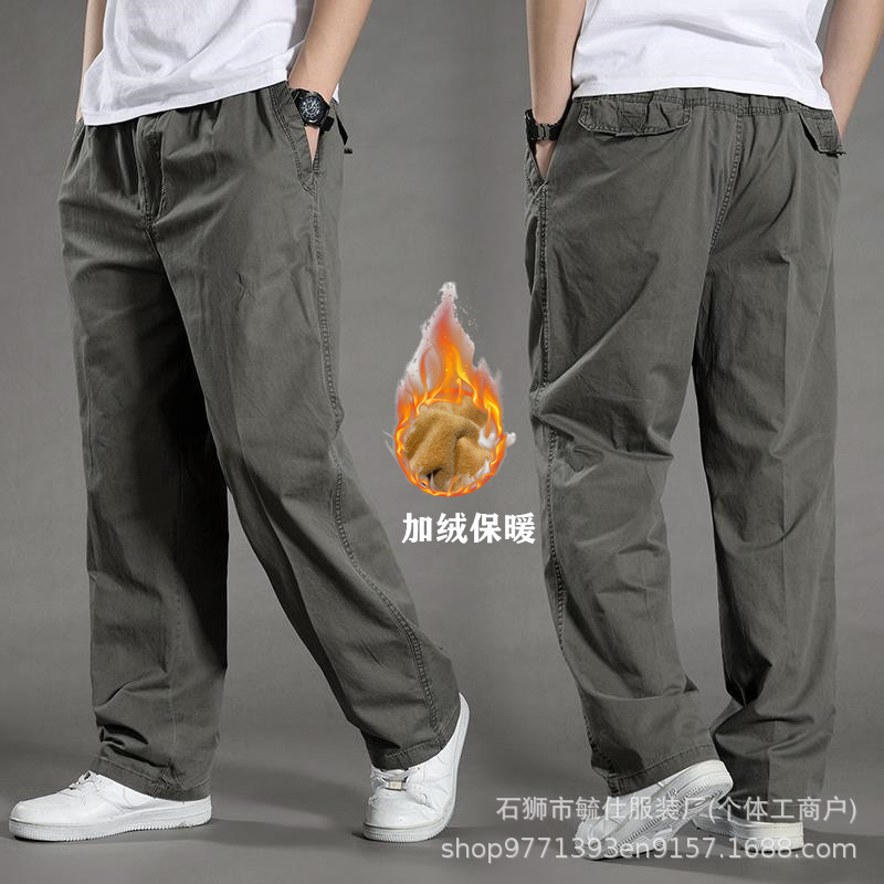 남성용 면 안감 캐주얼 바지 가을 겨울 기모 작업복 바지 스트레이트 팬츠 루즈핏 대형 사이즈 스포츠 바지 긴바지 스트레이트 팬츠