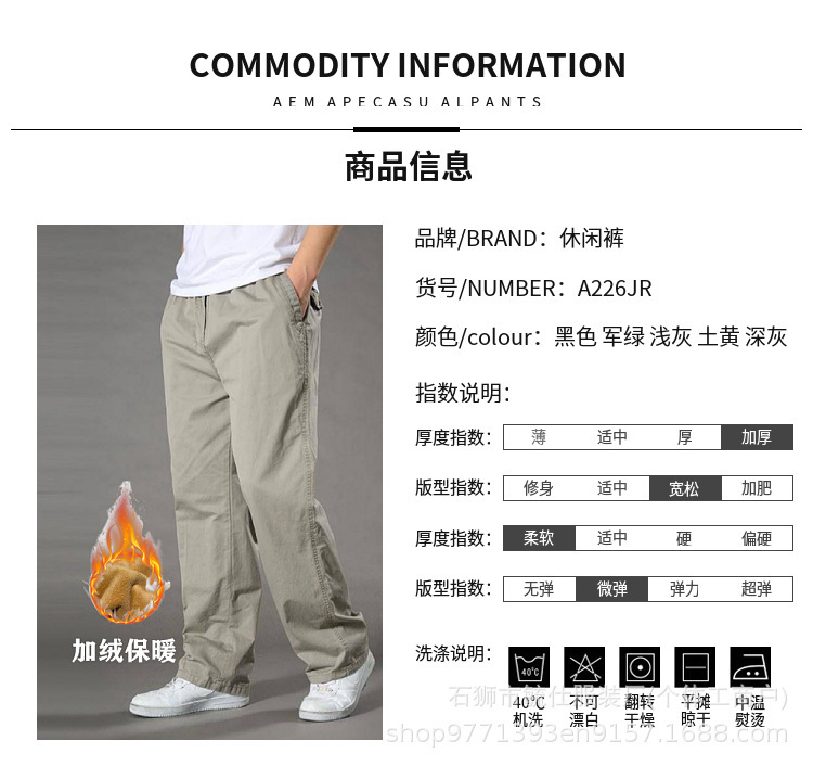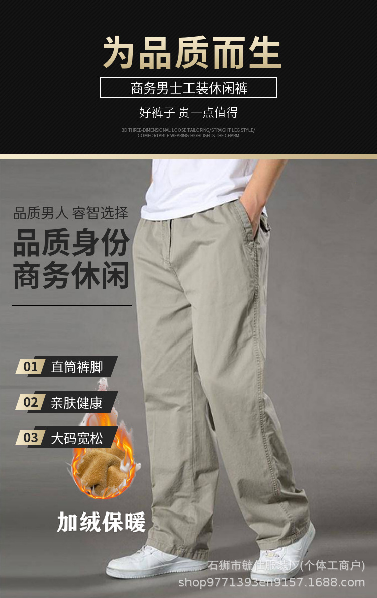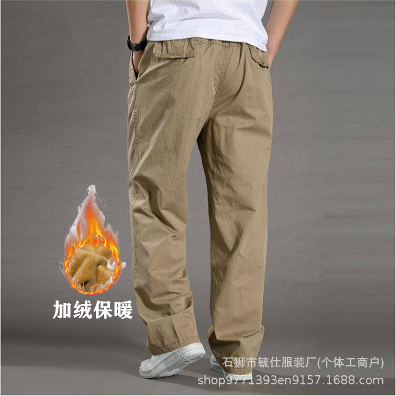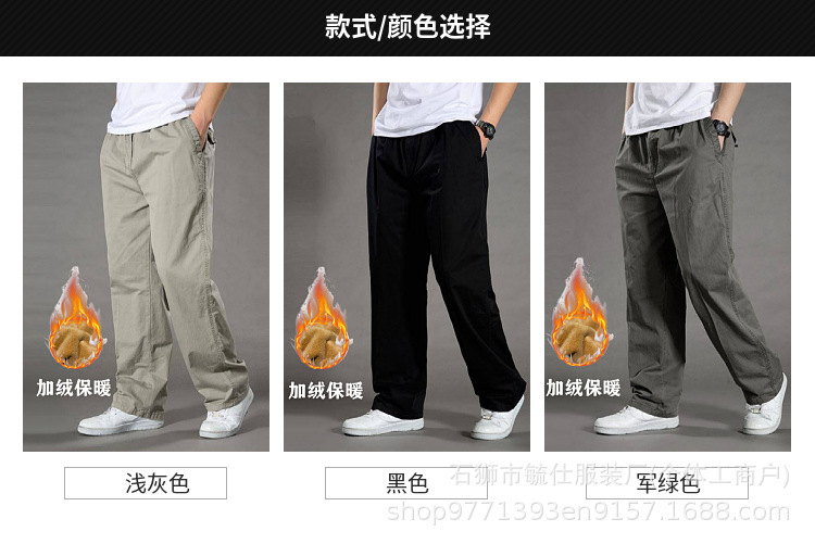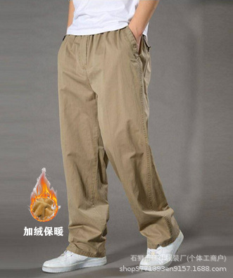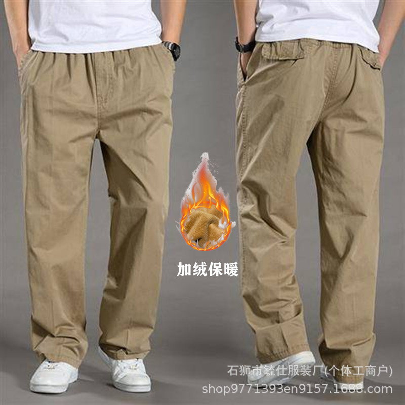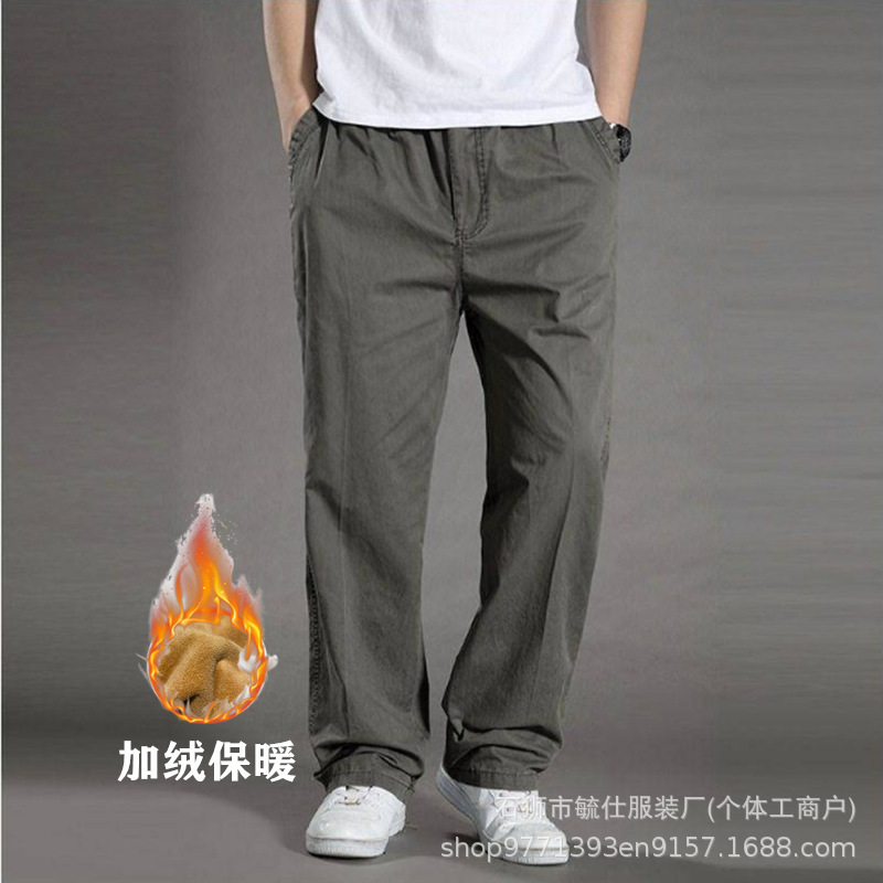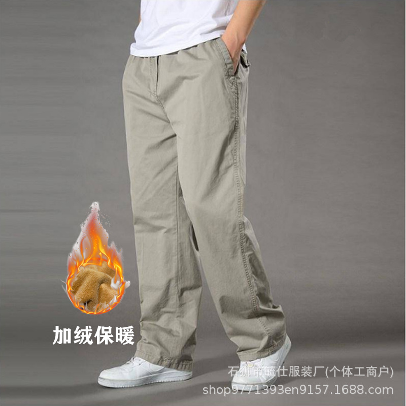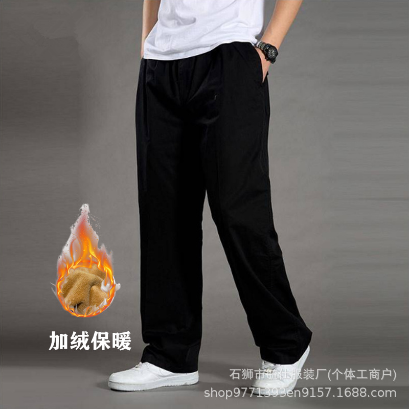남성용 면 안감 캐주얼 바지 가을 겨울 기모 작업복 바지 스트레이트 팬츠 루즈핏 대형 사이즈 스포츠 바지 긴바지 스트레이트 팬츠