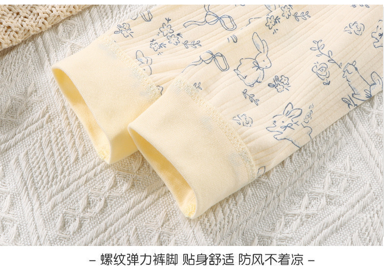 • 뼈없는 세로 줄무늬 면모 가을 옷 세트 핑크 튤립 토끼