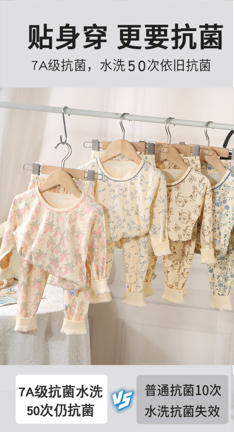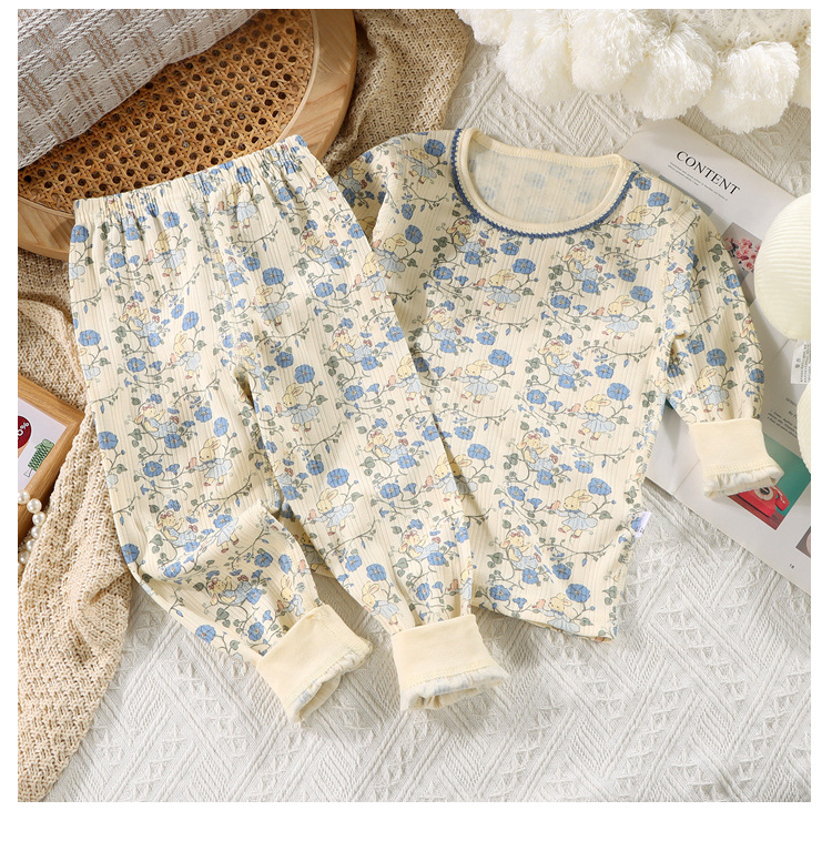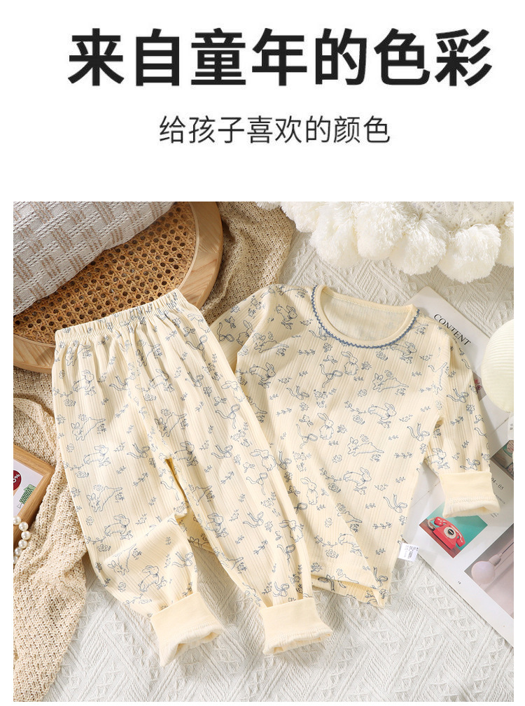 어린이 순면 가을 옷과 바지 아기의 뼈없는 수직 스트립 코튼 양모 잠옷 큰 어린이 홈 옷 소녀의 만화 세트스토어 가기