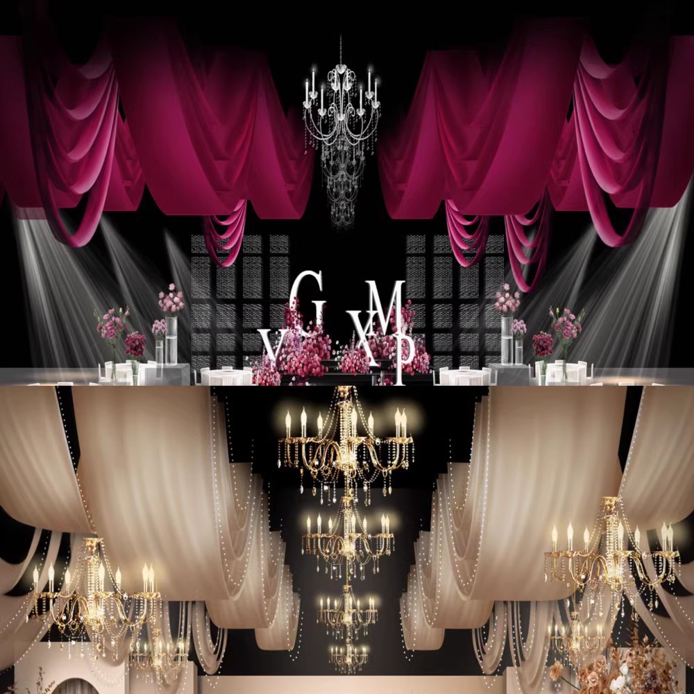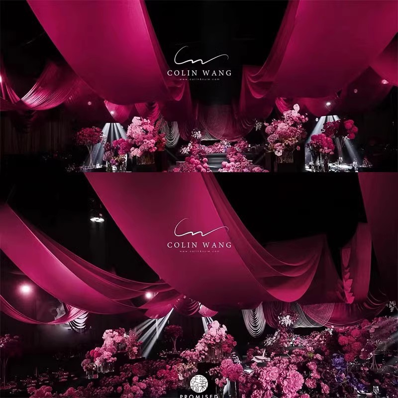 婚庆布幔弹力布吊顶纱幔布幔婚礼牛奶丝韩式吊顶布多层吊顶装饰布