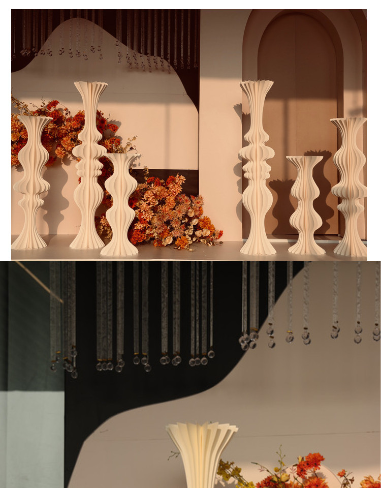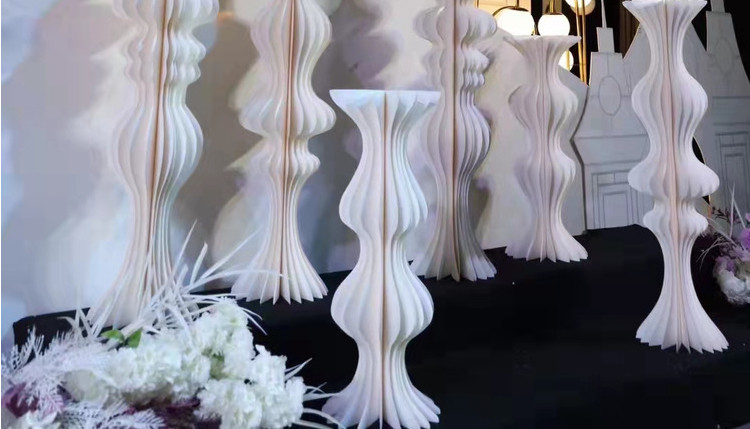 创意纸艺折叠美人鱼路引侘寂风商场橱窗舞台摆件曲线折柱婚庆道具