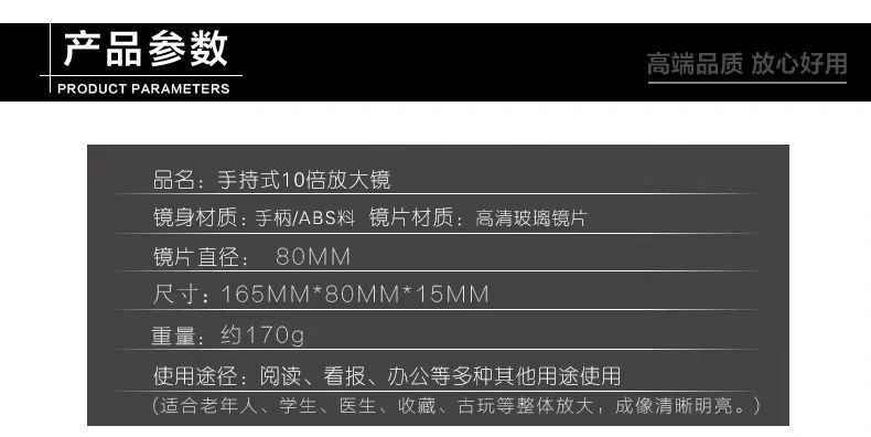 노인 읽기 난초 난초 난초를위한 돋보기 95 배 눈 보호 슈퍼 명확한 다기능 용 손잡이 보석 식별스토어 가기