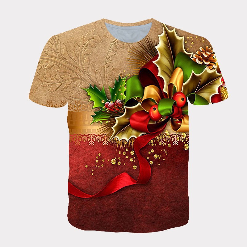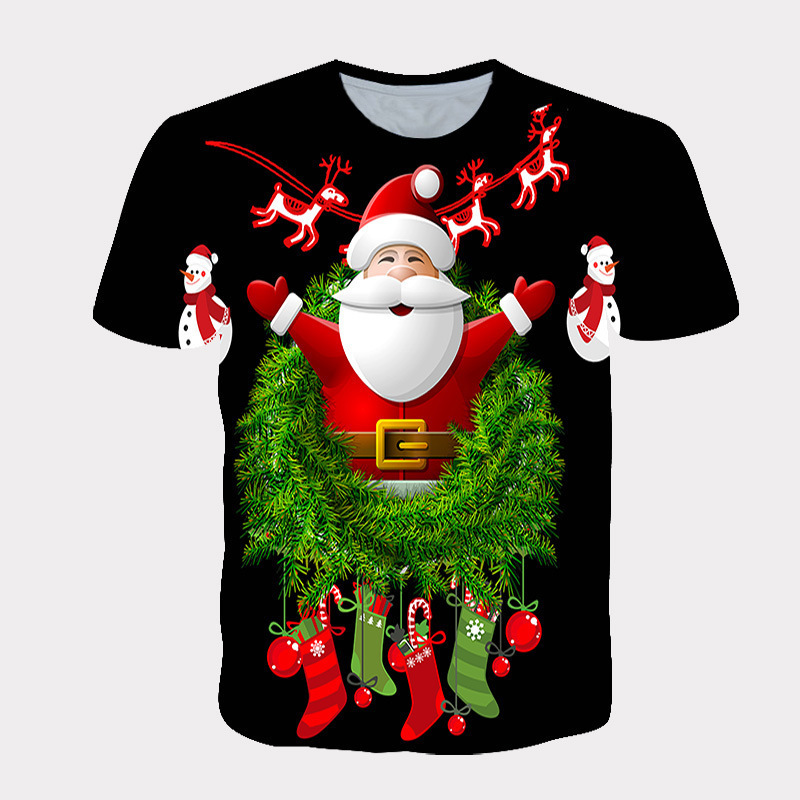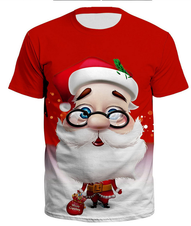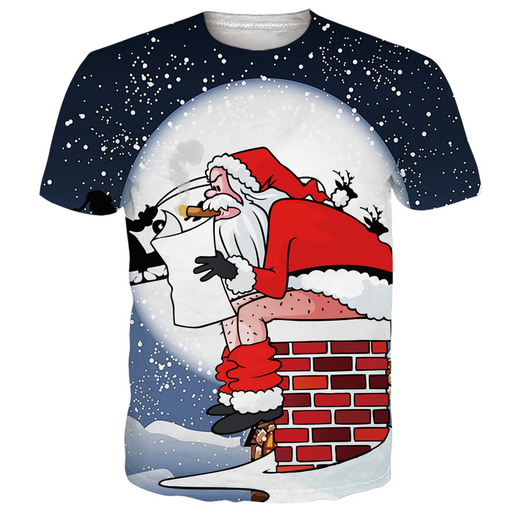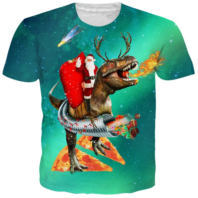 국경 핫 남성용 티셔츠 3d 인쇄 크리스마스 패턴 패션 트렌드 인쇄 짧은 소매 여름 공장 직접 공급스토어 가기