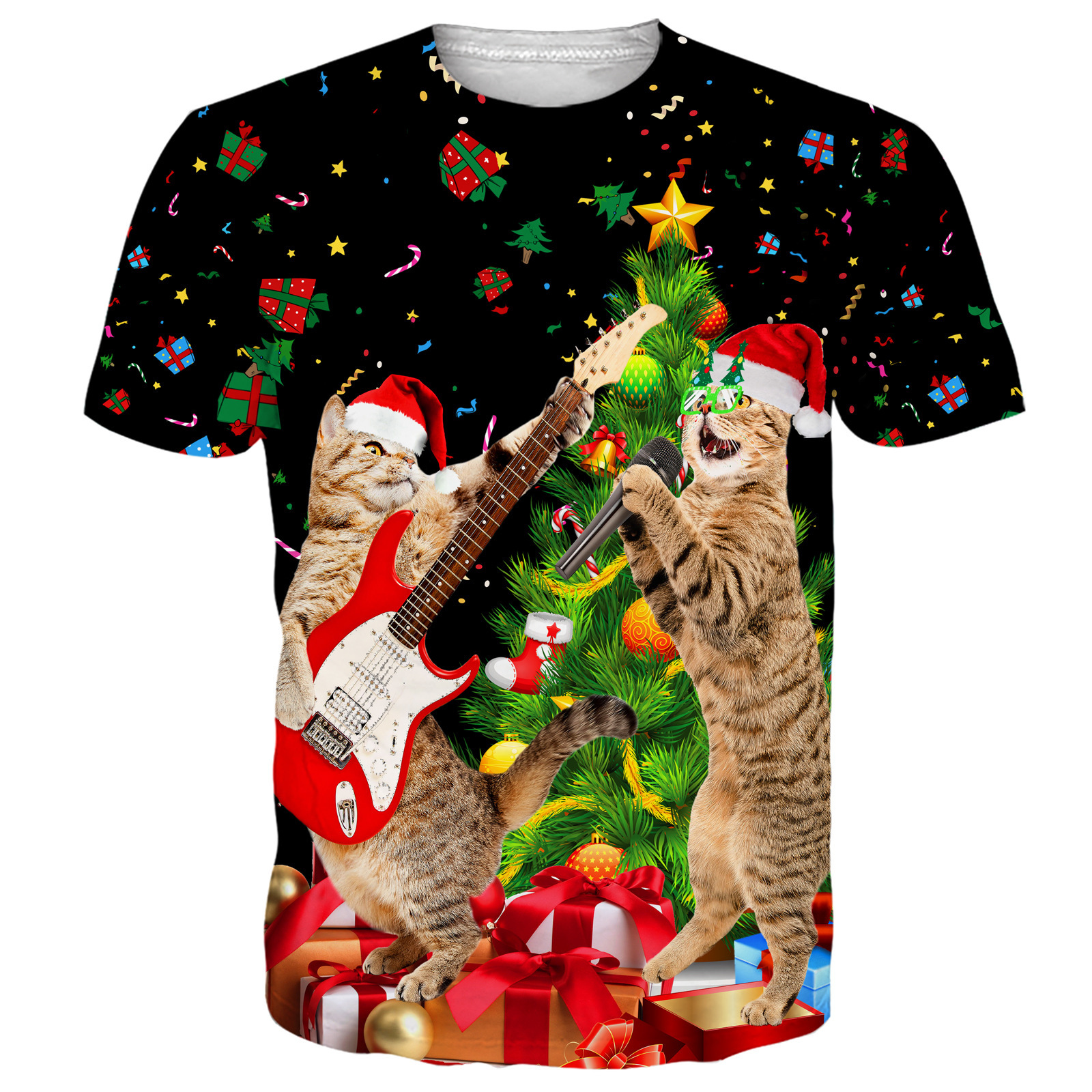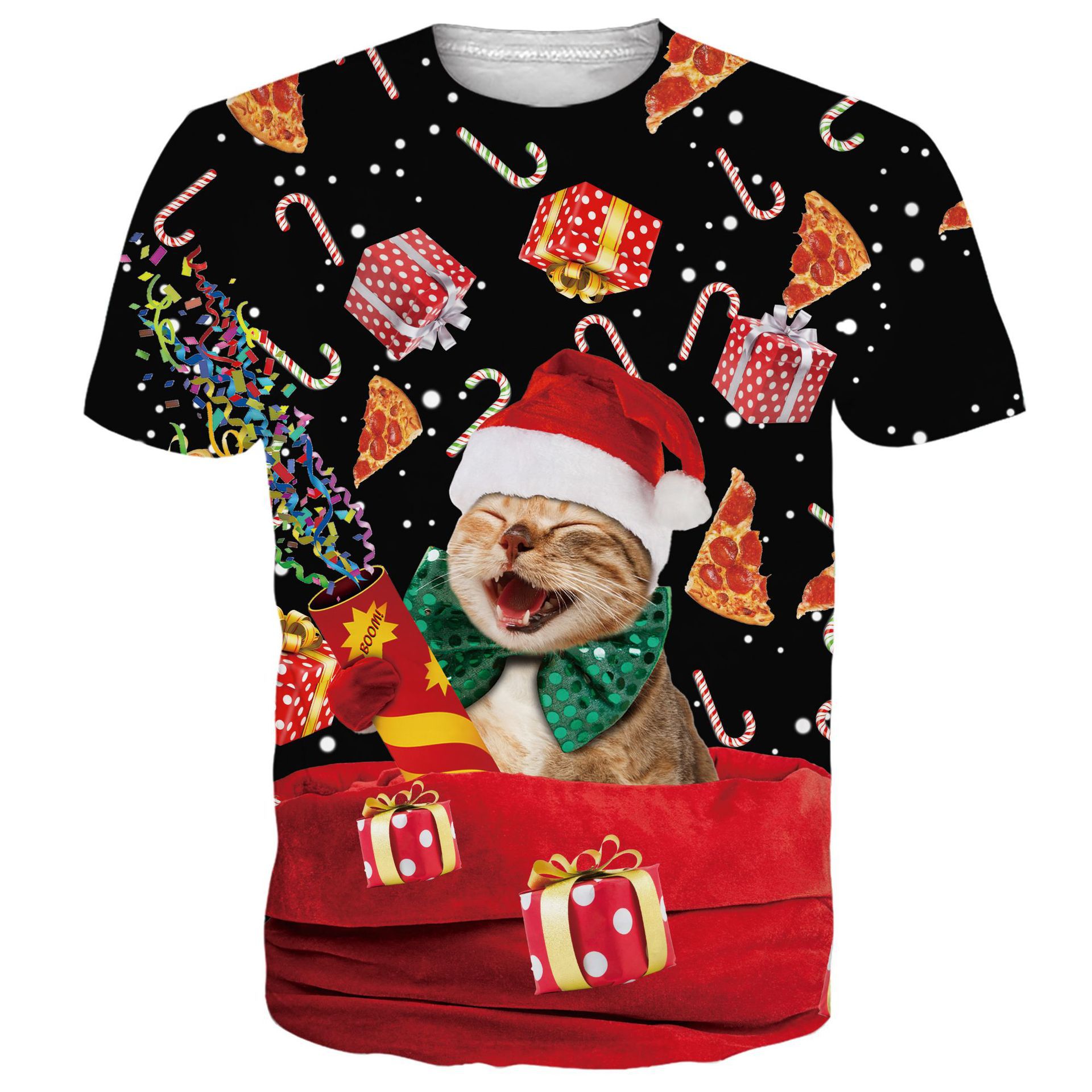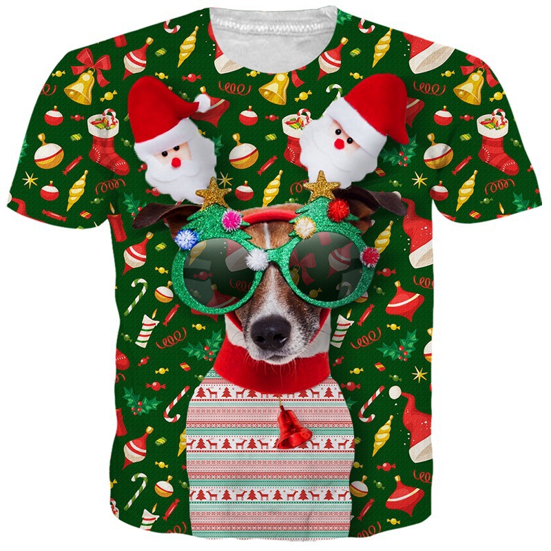 국경 핫 남성용 티셔츠 3d 인쇄 크리스마스 패턴 패션 트렌드 인쇄 짧은 소매 여름 공장 직접 공급스토어 가기