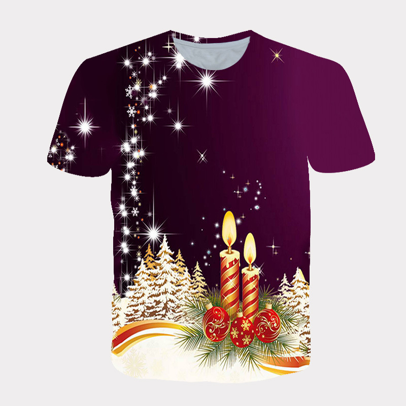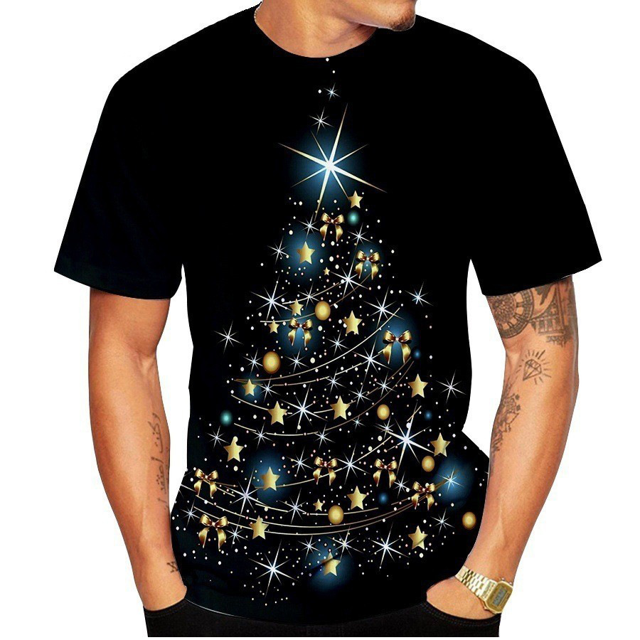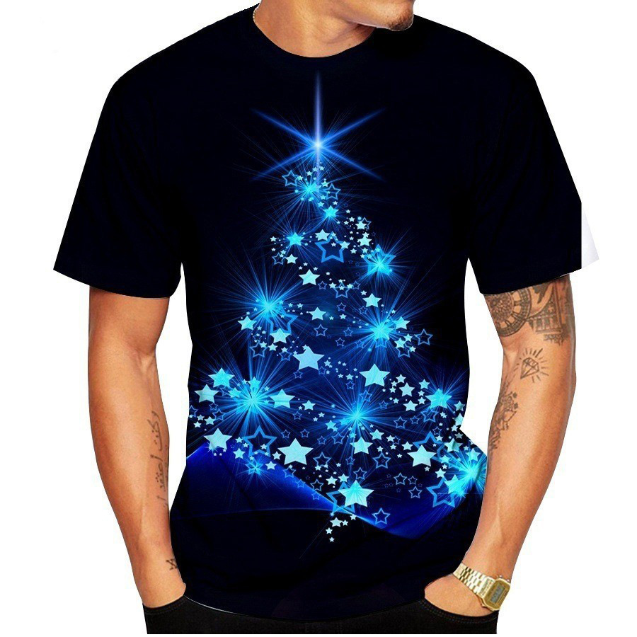 국경 핫 남성용 티셔츠 3d 인쇄 크리스마스 패턴 패션 트렌드 인쇄 짧은 소매 여름 공장 직접 공급