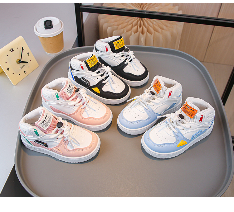 새로운 소년 캐주얼 신발 하이 탑 어린이 스포츠 신발 2025 봄, 가을 소녀 운동화 유행 부드러운 바닥 아기 신발스토어 가기
