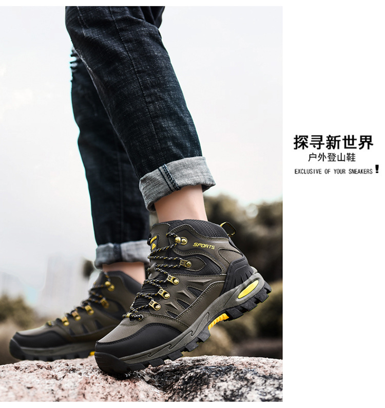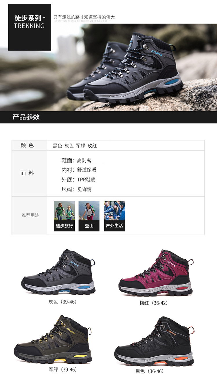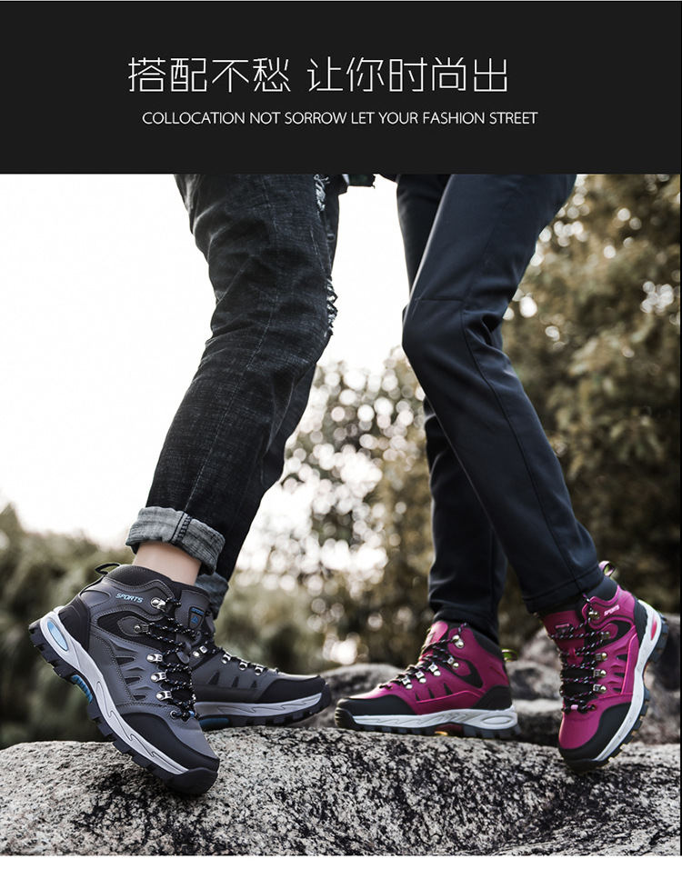 A22 남성과 여성의 야외 하이킹 신발 가을 및 겨울 하이 탑 가죽 플러스 사이즈 크로스 국경 하이킹 크로스 컨트리 신발 커플 운동화