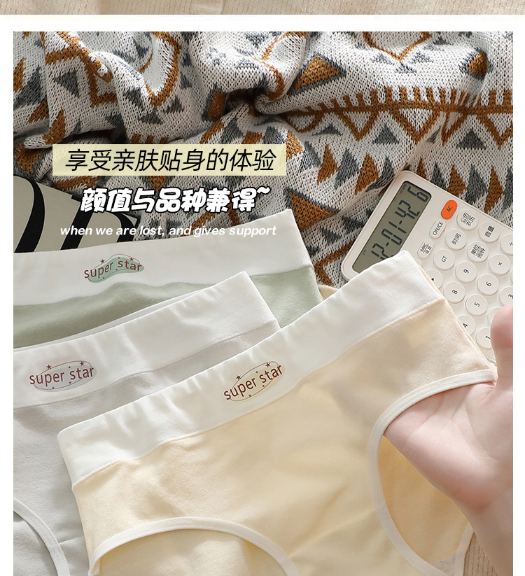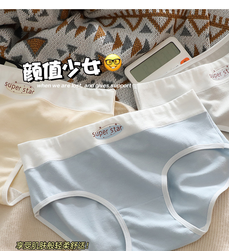간단한 편지 소녀의 면 중간 허리 속옷 7A 항균 크로트 피부 친화적 인 통기성 귀여운 여성 학생 삼각형 반바지 머리스토어 가기