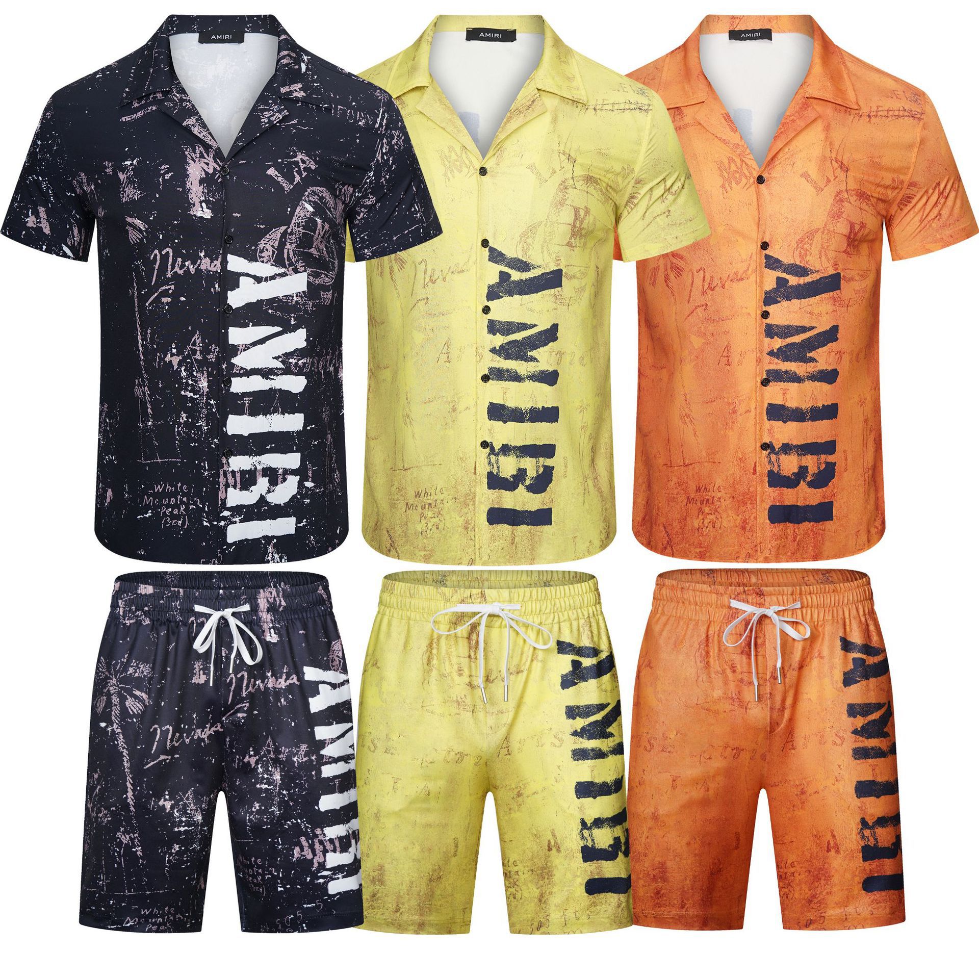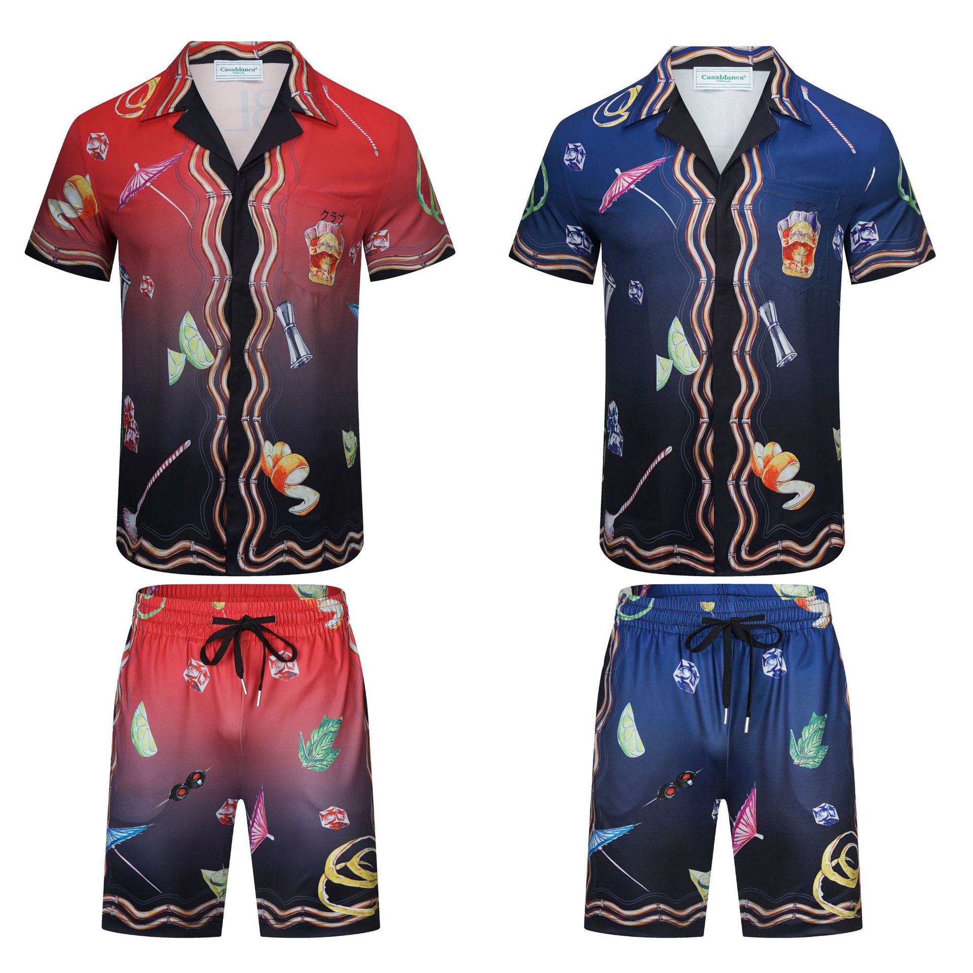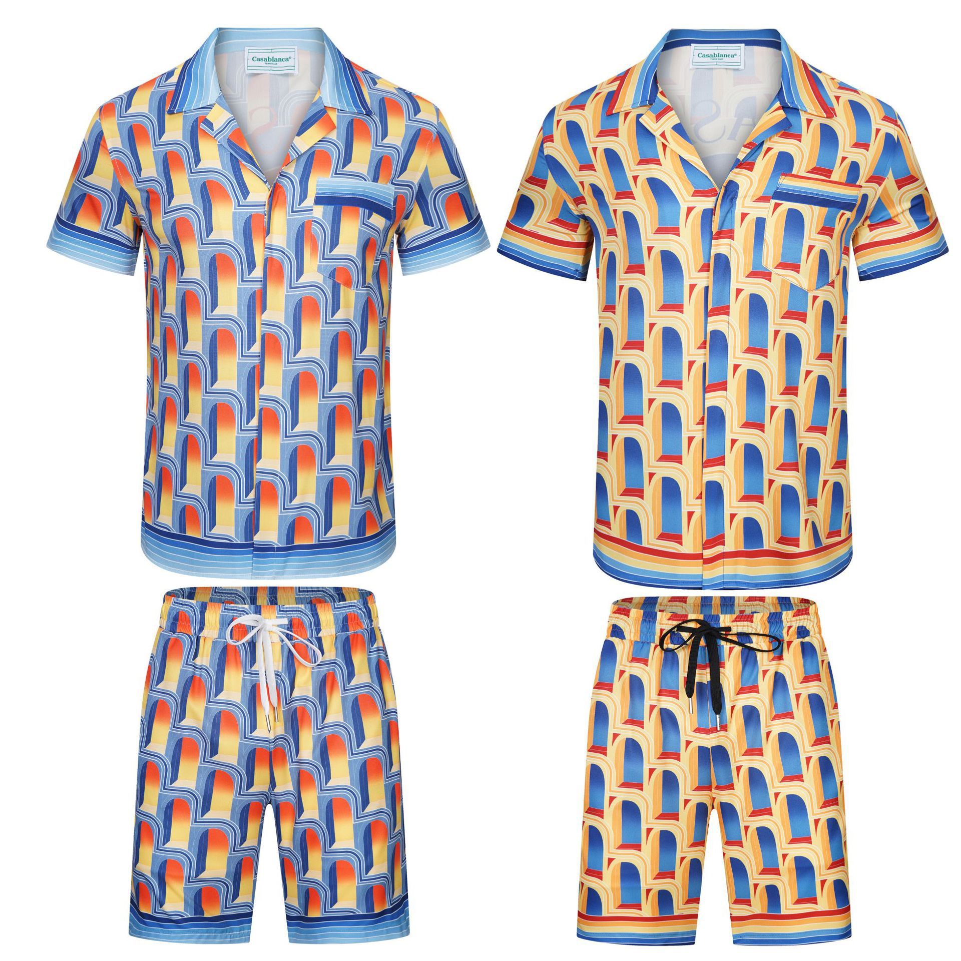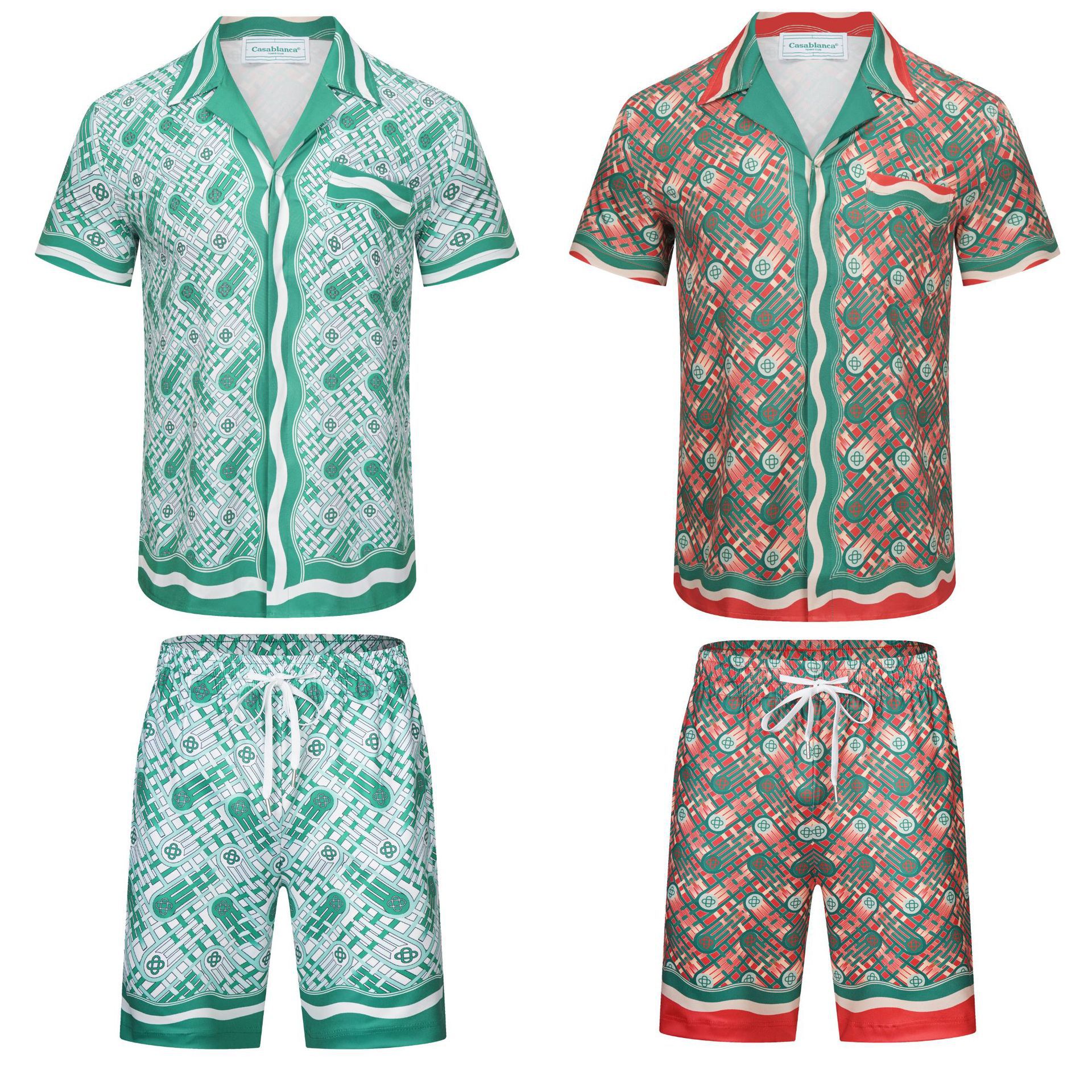 남자 짧은 소매 카사블랑카 여름 얇은 셔츠 세트 2023 판타스크 하이 스트리트 힙합 비치 세트 남성스토어 가기