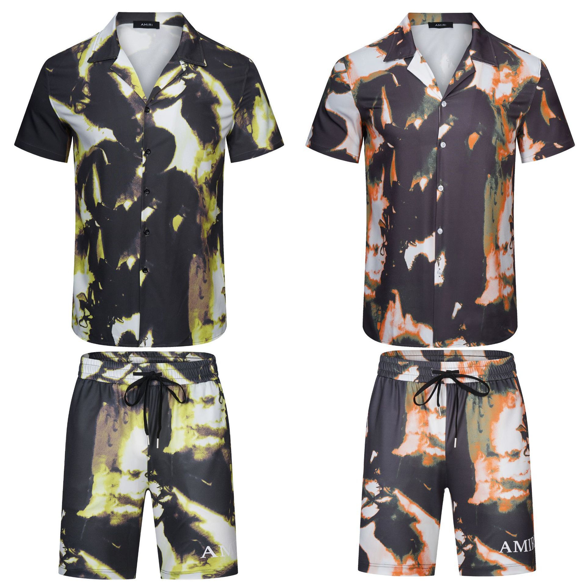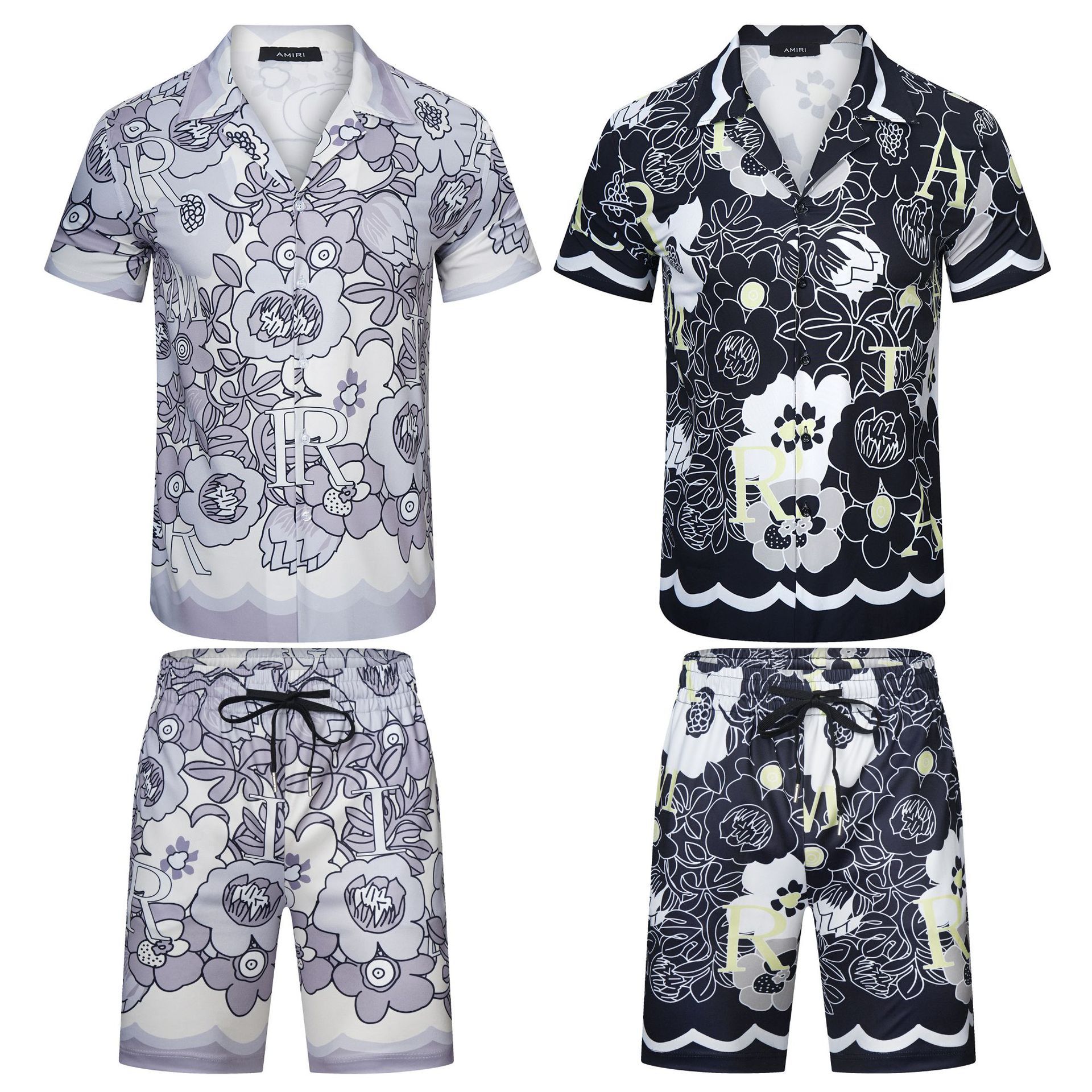 남자 짧은 소매 카사블랑카 여름 얇은 셔츠 세트 2023 판타스크 하이 스트리트 힙합 비치 세트 남성