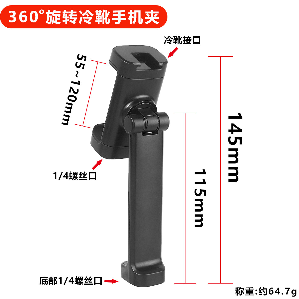 도매 목 브래킷 범용 휴대 전화 클립 수평 및 수직 콜드 부츠 조절 라이브 셀카 사진 삼각대