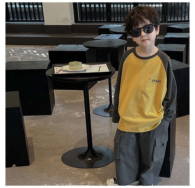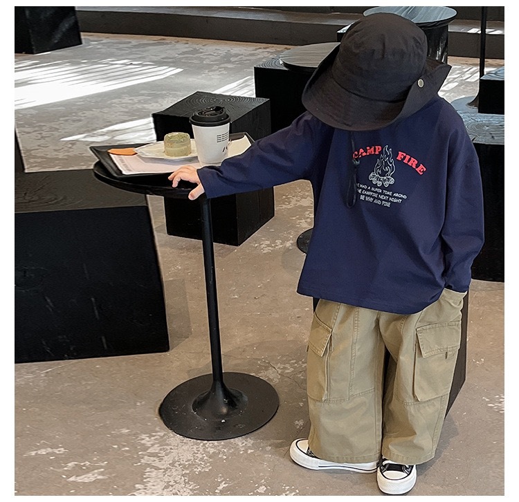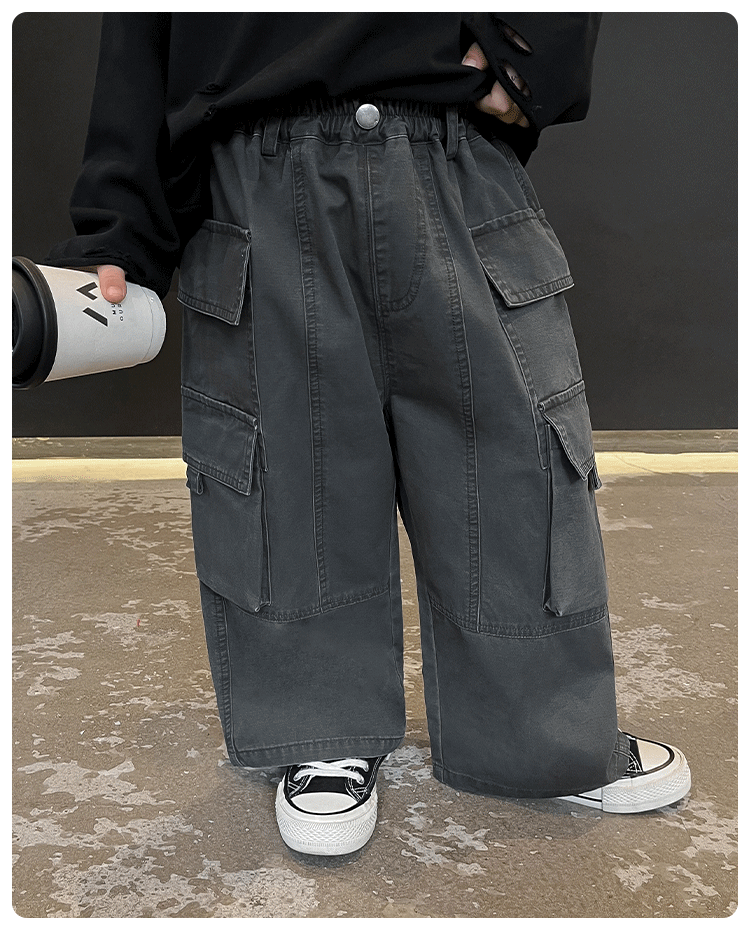 국경을 넘는 일본과 한국 소년 가을 아동복 새로운 잘 생긴 아기 캐주얼 바지 한국 스타일 복고풍 아동 작업복스토어 가기