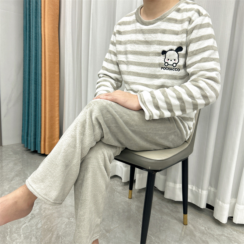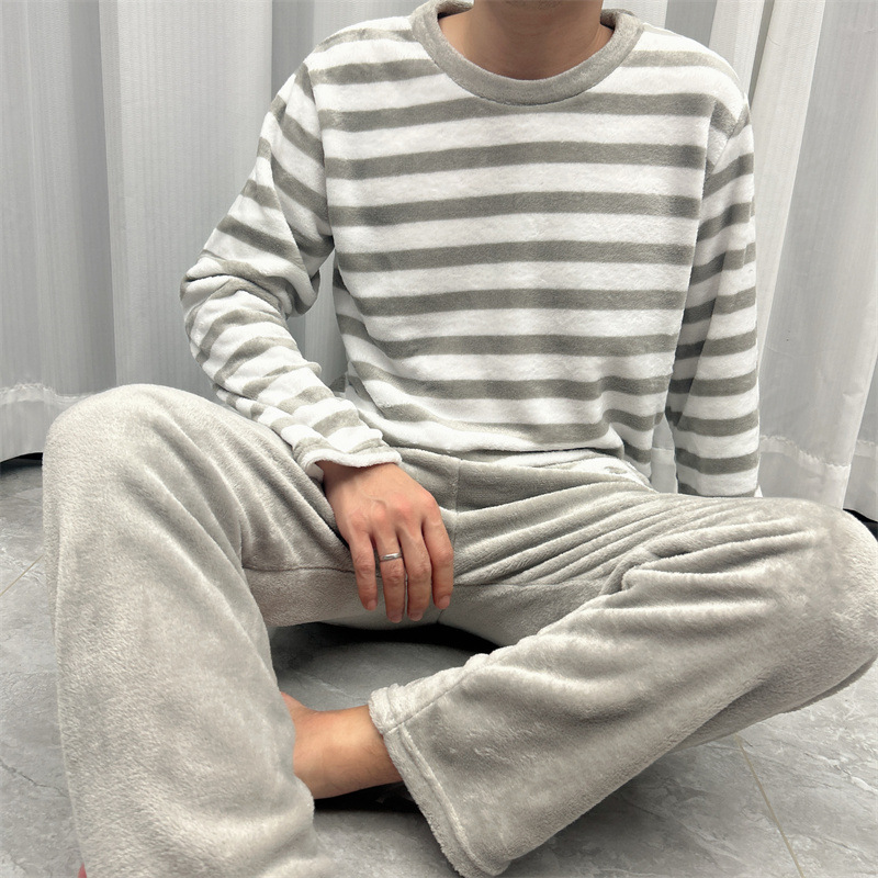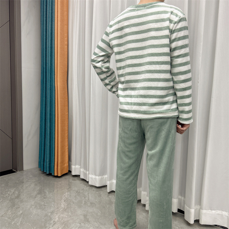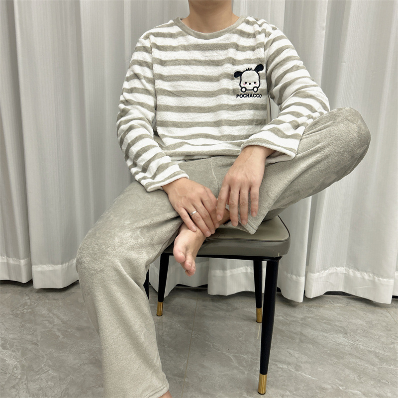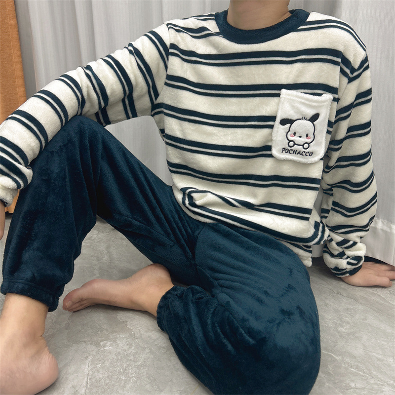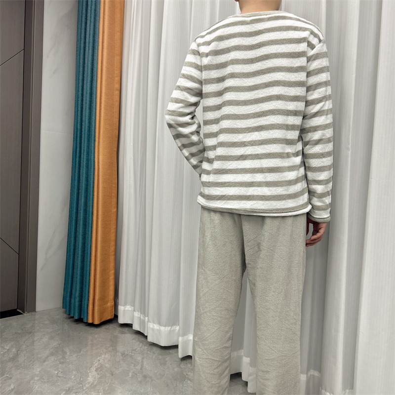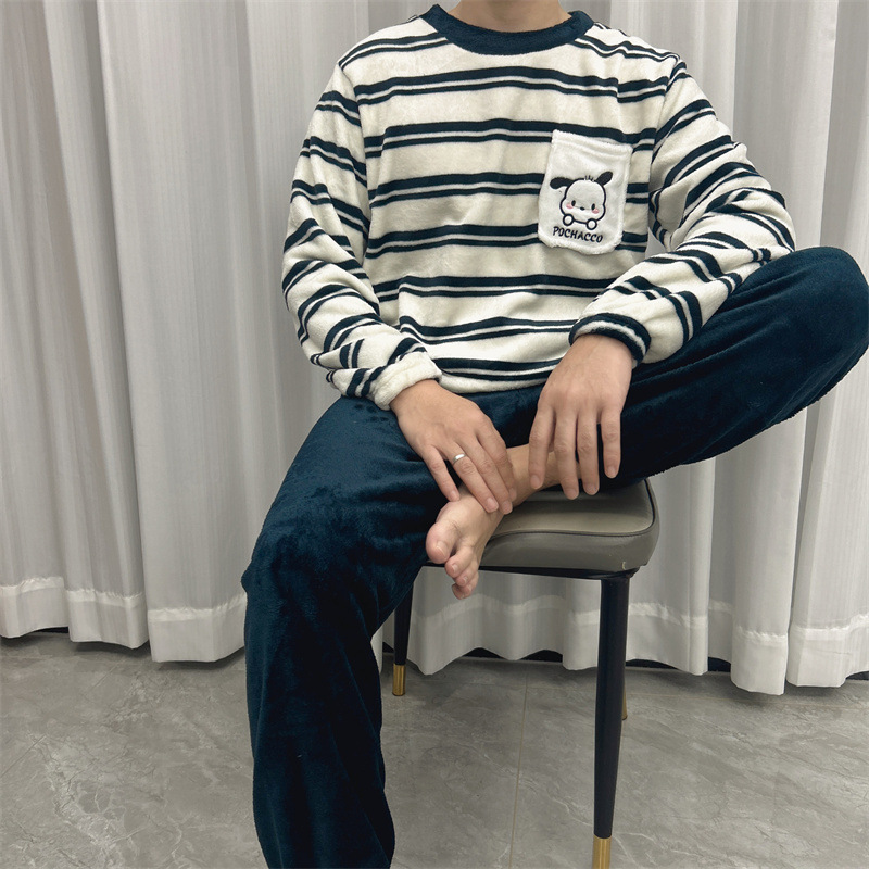 국경 간 잠옷 남자의 가을과 겨울 새로운 플란넬 크루 넥 풀오버 긴 소매 캐주얼 만화 따뜻한 집 옷 세트스토어 가기