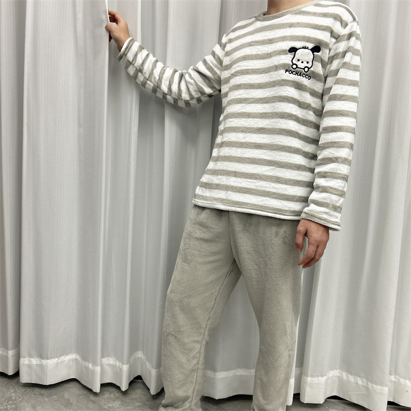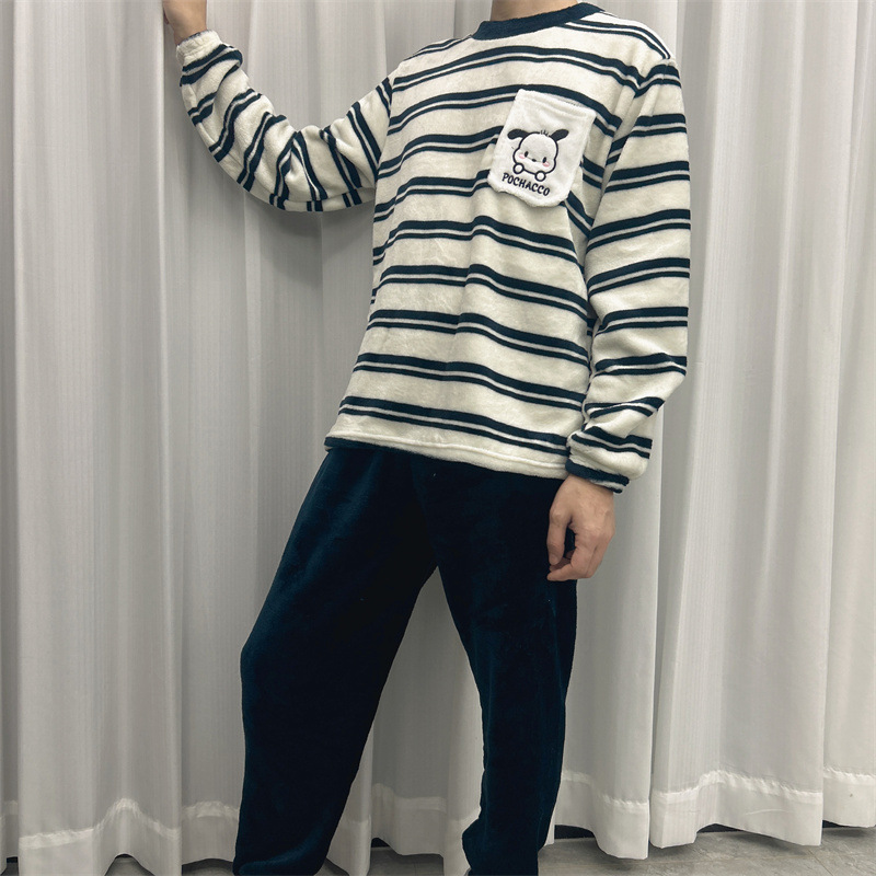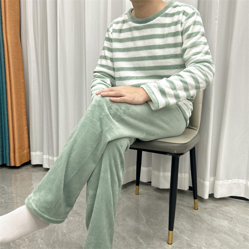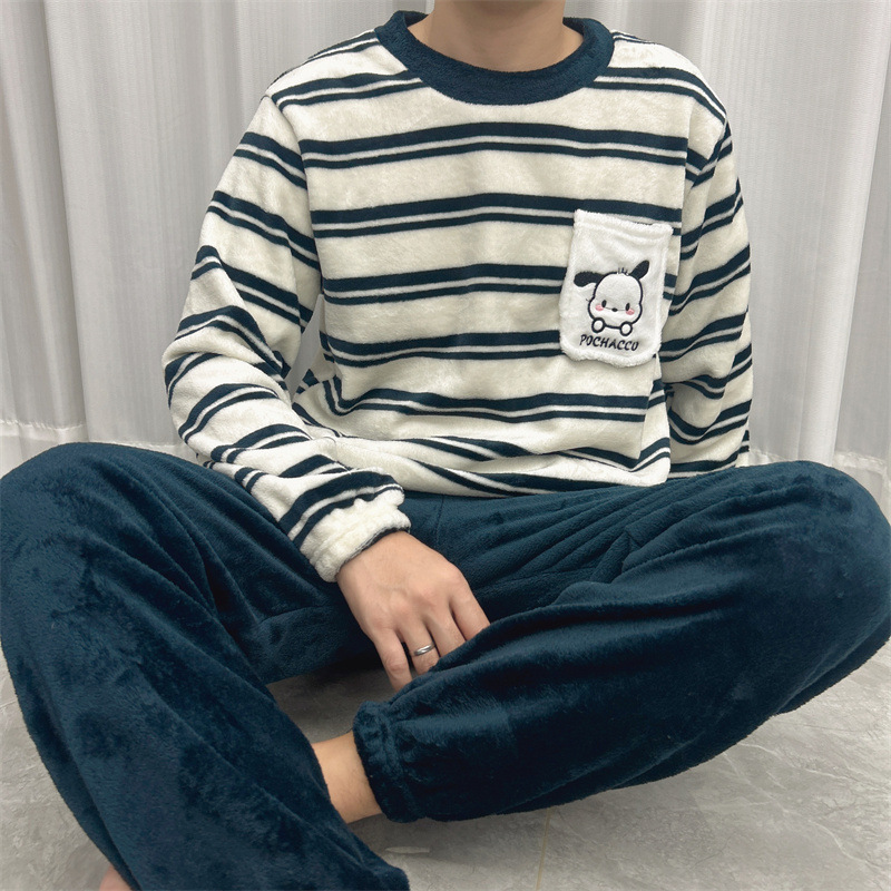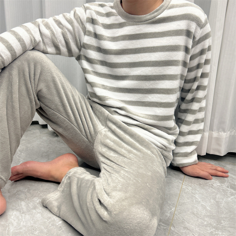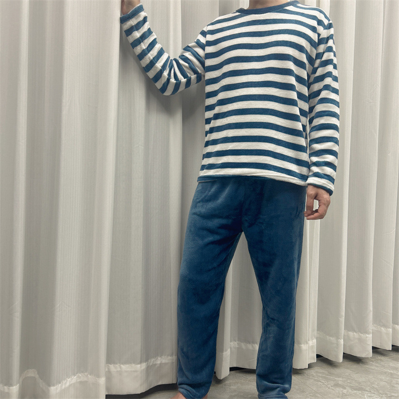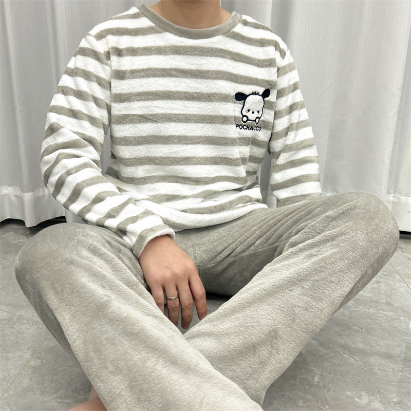 국경 간 잠옷 남자의 가을과 겨울 새로운 플란넬 크루 넥 풀오버 긴 소매 캐주얼 만화 따뜻한 집 옷 세트스토어 가기
