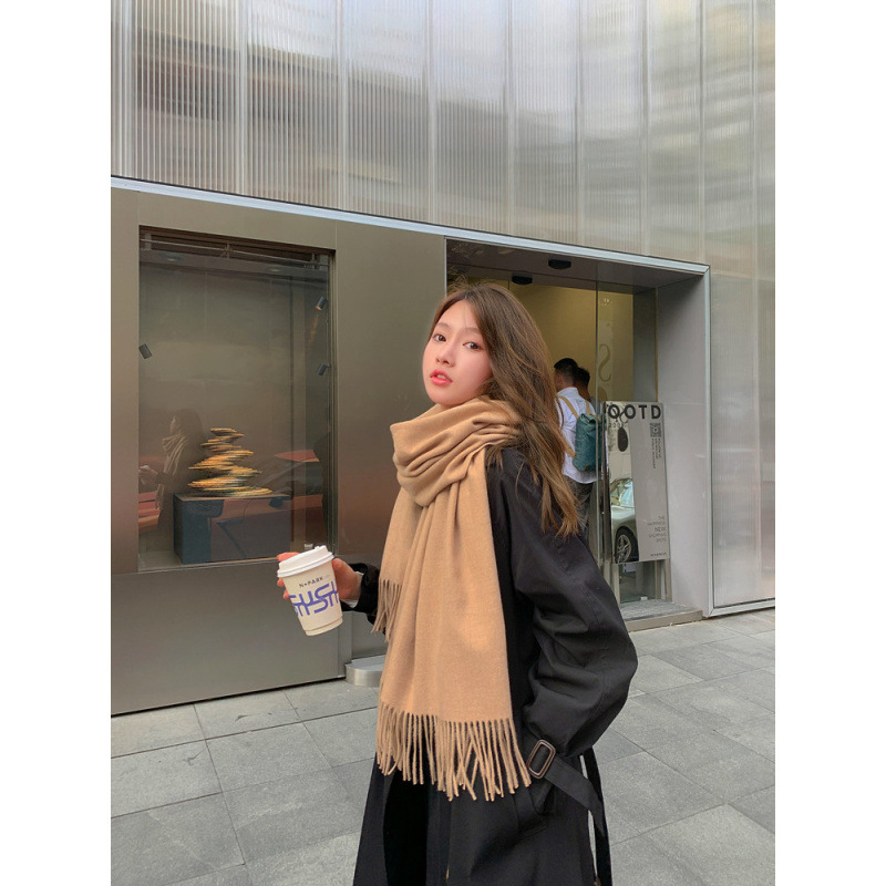 300g 스카프 여자 가을과 겨울 단색 한국 스타일 올매치 목도리 따뜻한 고급 감각 아이보리 스카프 남자 두꺼운 스카프스토어 가기
