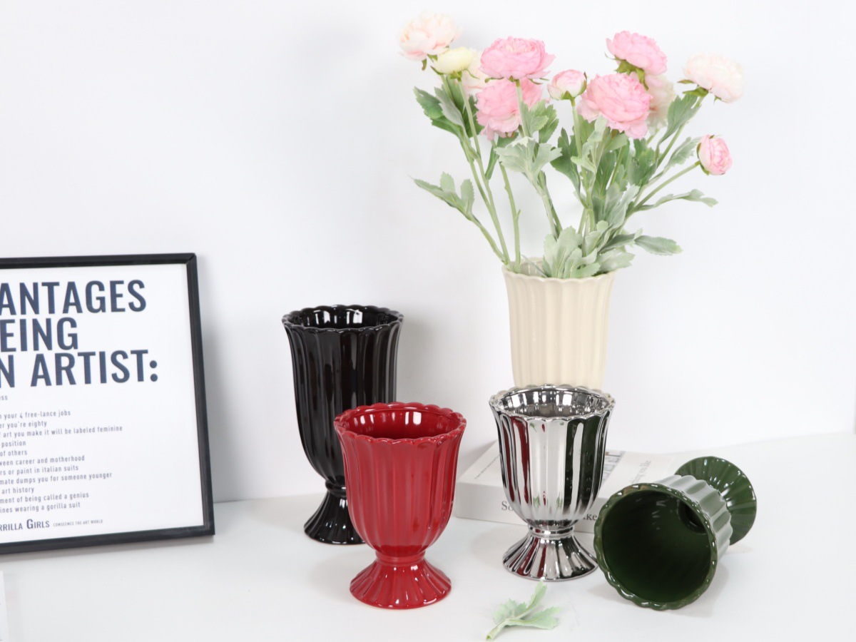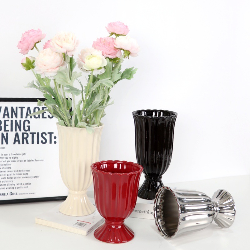 구멍과 플러그가있는 세라믹 꽃병 고급 센스 중세 고대 빈티지 꽃 제비 홈 가구 거실 장식 꽃병 장식품