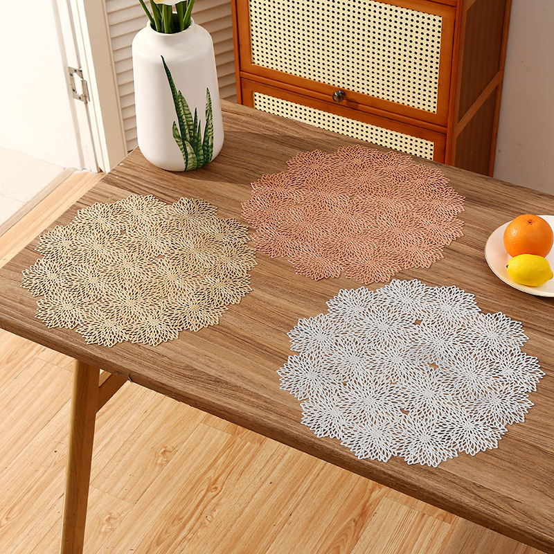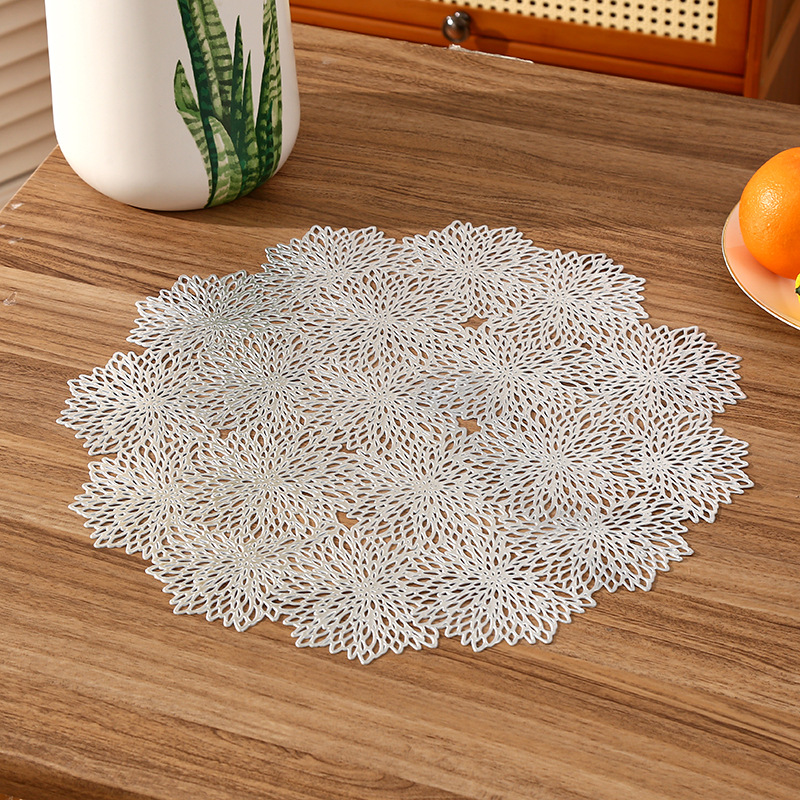 아마존 프랑스 라운드 PVC Placemat 창조적 인 눈송이 빈 하이 엔드 럭셔리 레스토랑 절연 방수 매트