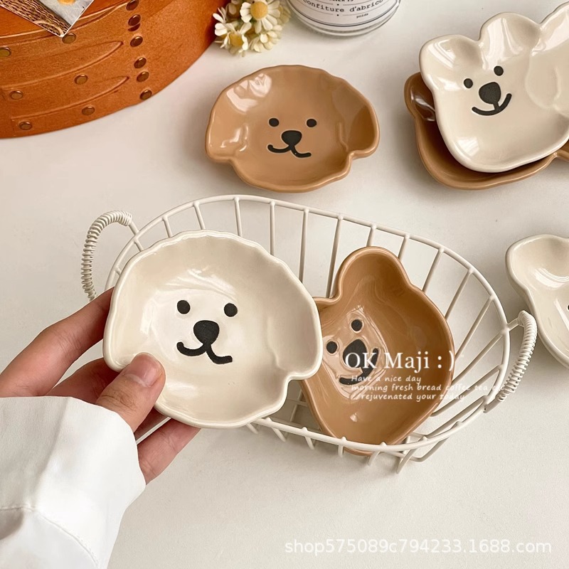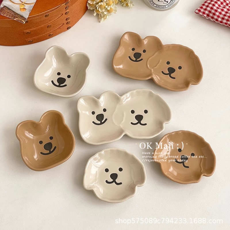 • 곰과 강아지 일체형 디핑 접시-브라운