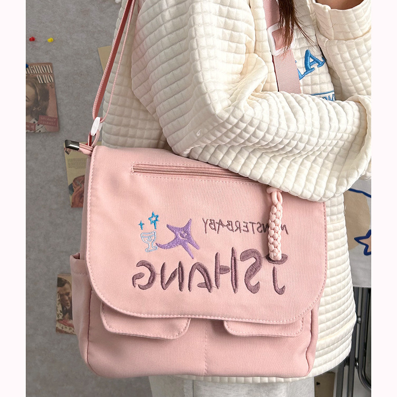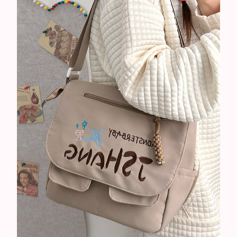 자체 제작 된 미국 복고풍 대학생 학교 가방 소녀 대용량 새로운 통근 가방 중학생 우체국 가방
