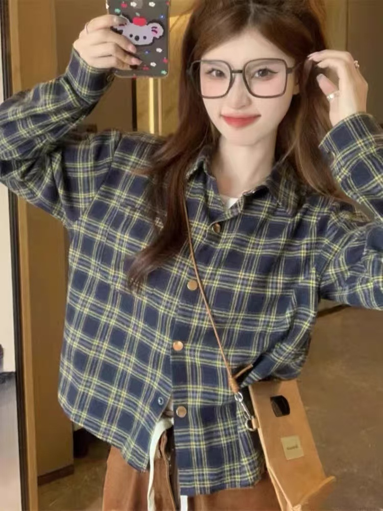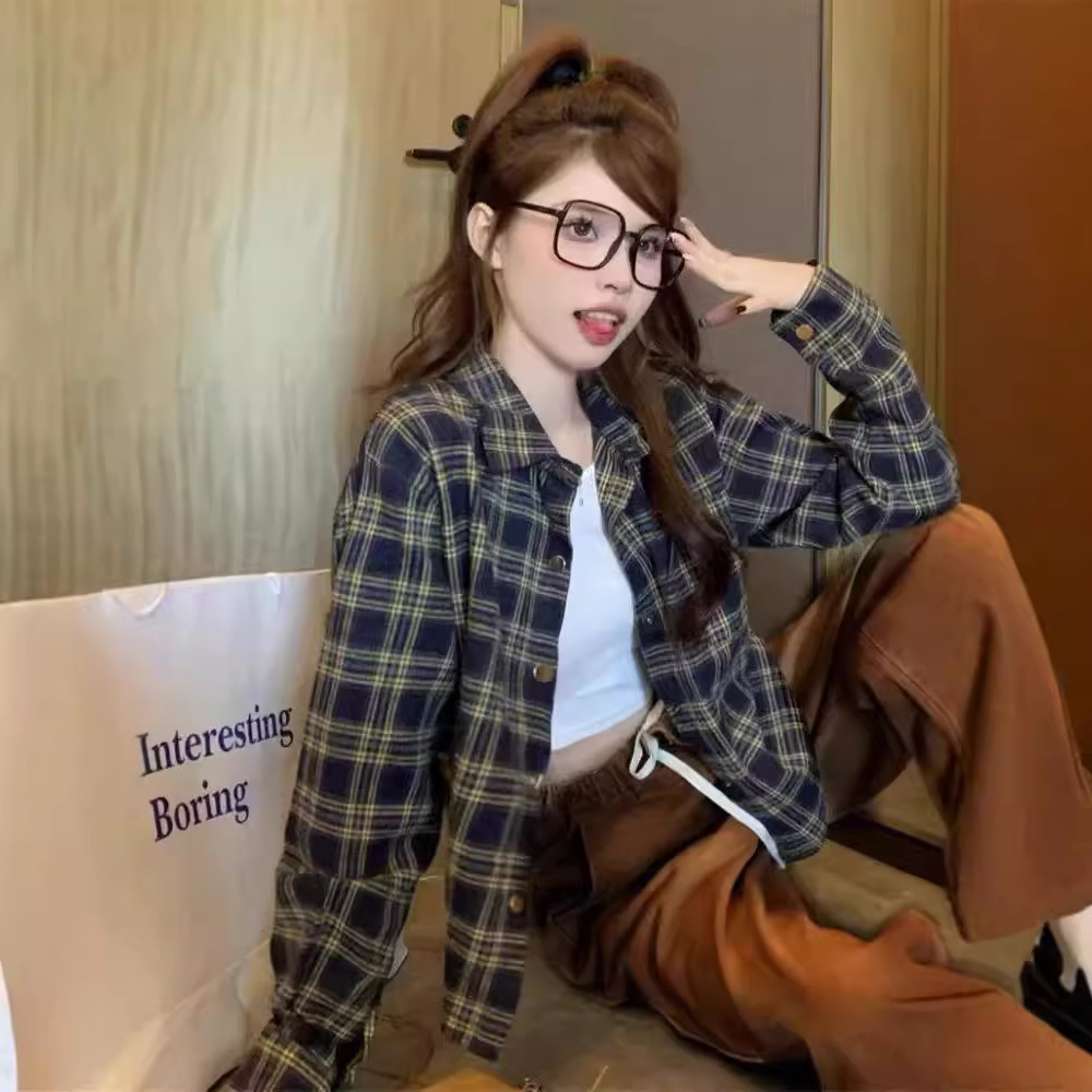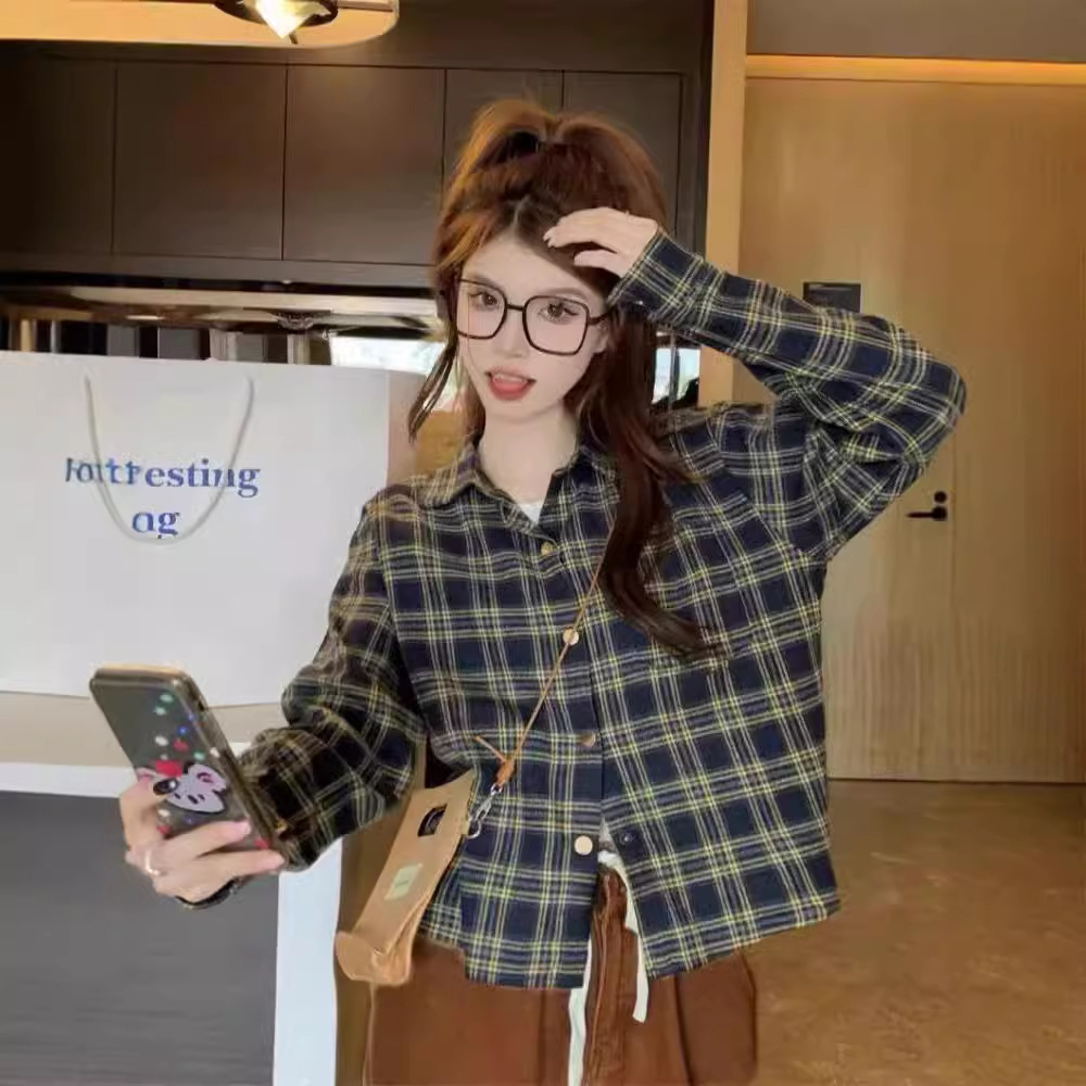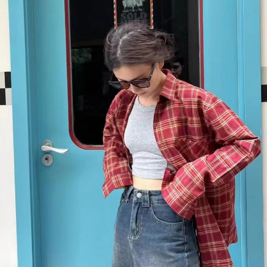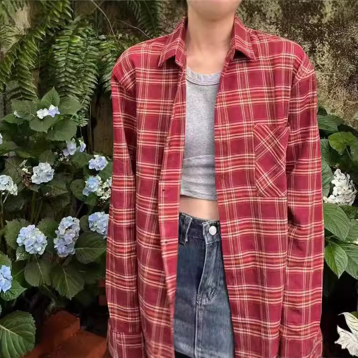 빨간 격자 무늬 셔츠 여성의 봄과 가을 작은 디자인 틈새 탑 샌딩 느슨한 긴팔 셔츠 재킷스토어 가기